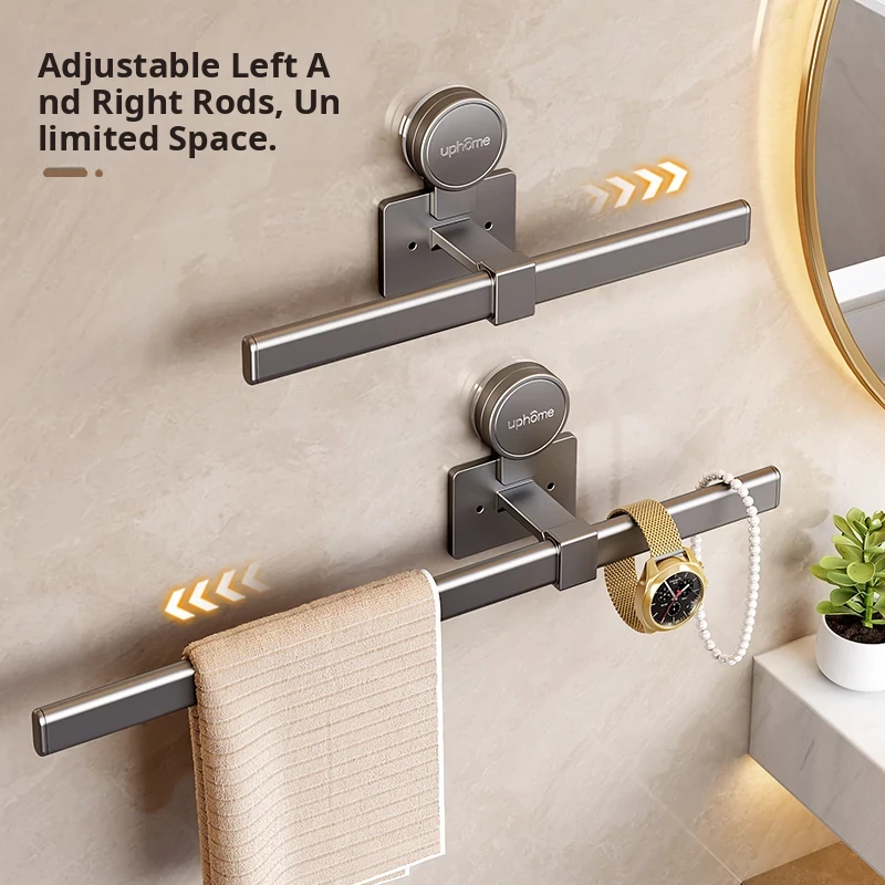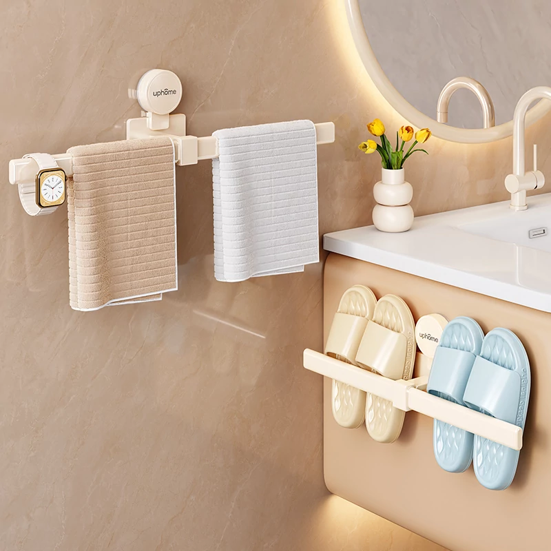 Suction Cup Telescopic Towel Rack - No Drilling Bathroom Storage Shelf for Wall, Perfect for Toiletries, Slippers, Hair Ties & Headbands. Keep Your Bathroom Organized and Stylish!