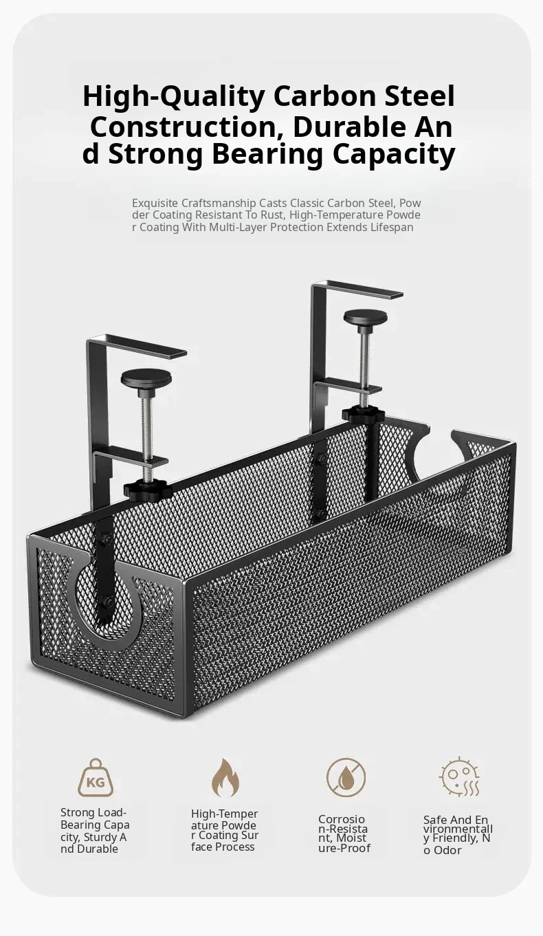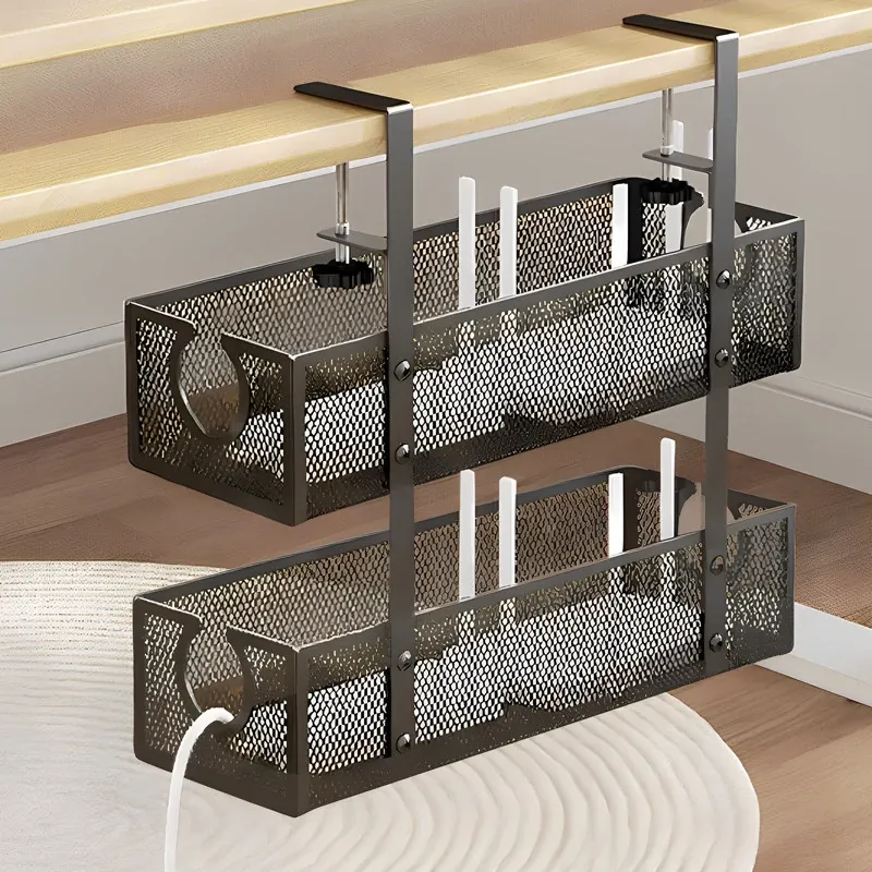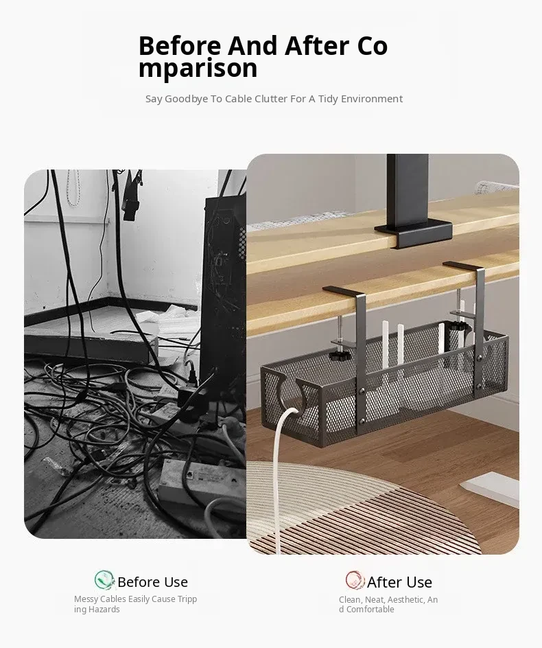 Under-Desk Cable Management Organizer - Power Cord Raceway and Socket Holder for Neat and Tidy Workspaces, Perfect for Home Office Upgrades and Efficient Wiring Solutions.