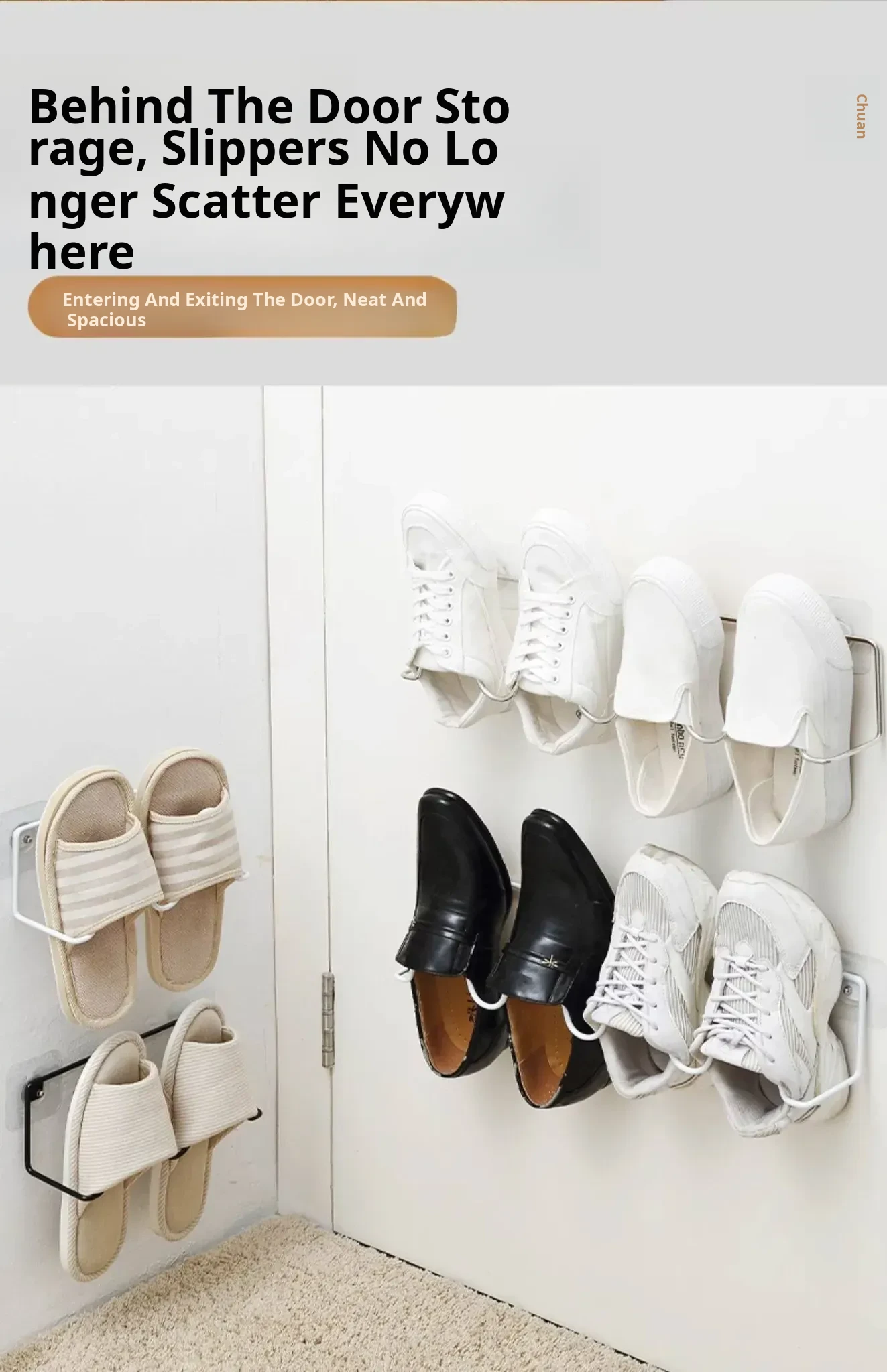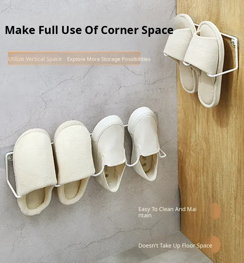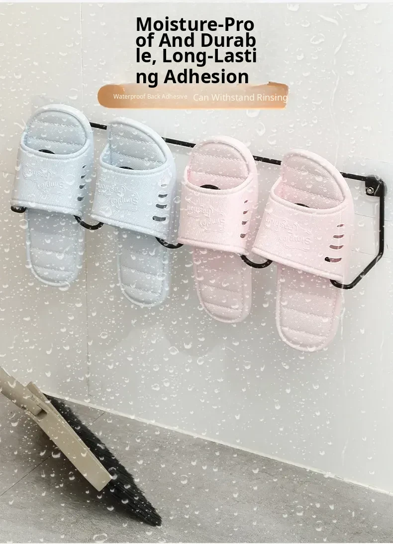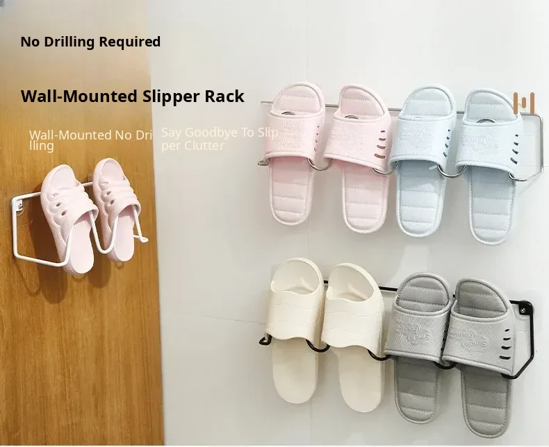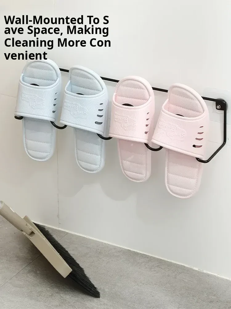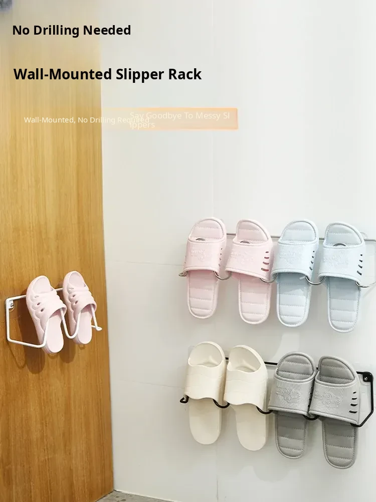 Wall-Mounted Bathroom Slipper Rack - No Drilling Required, Space-Saving Shoe Organizer with Drainage Hooks for Easy Storage in Your Bathroom or Toilet