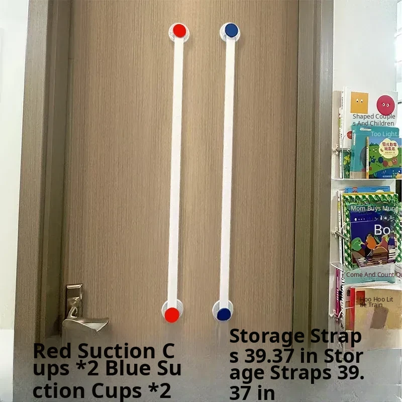 Red + Blue-Hairpin Storage Strap [Suction Cup*4+ 78.74in]