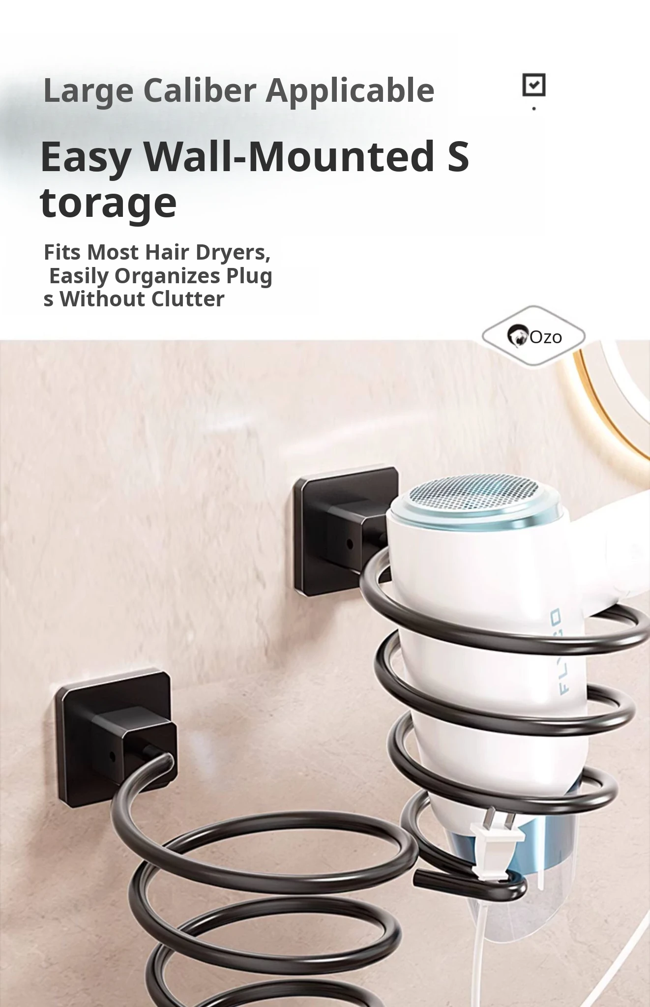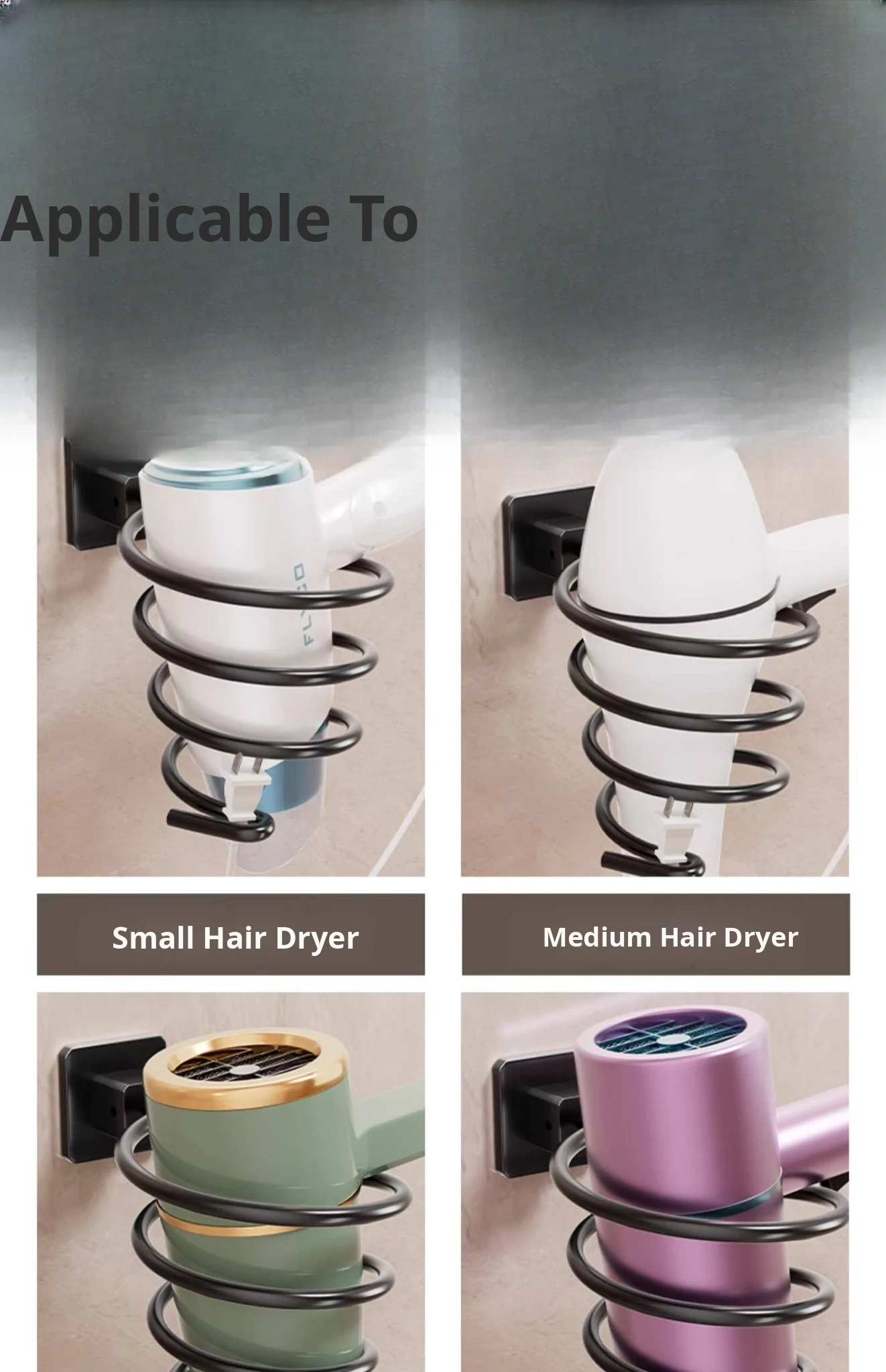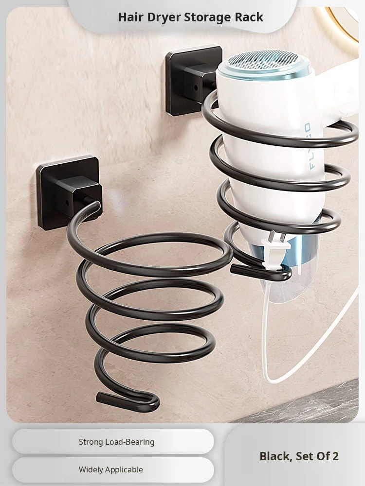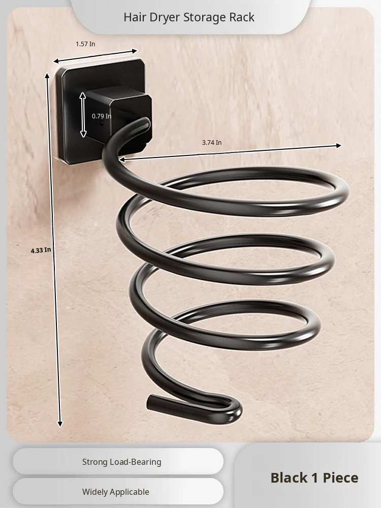 [Black] Hair Dryer Rack (Nail-Free Installation)