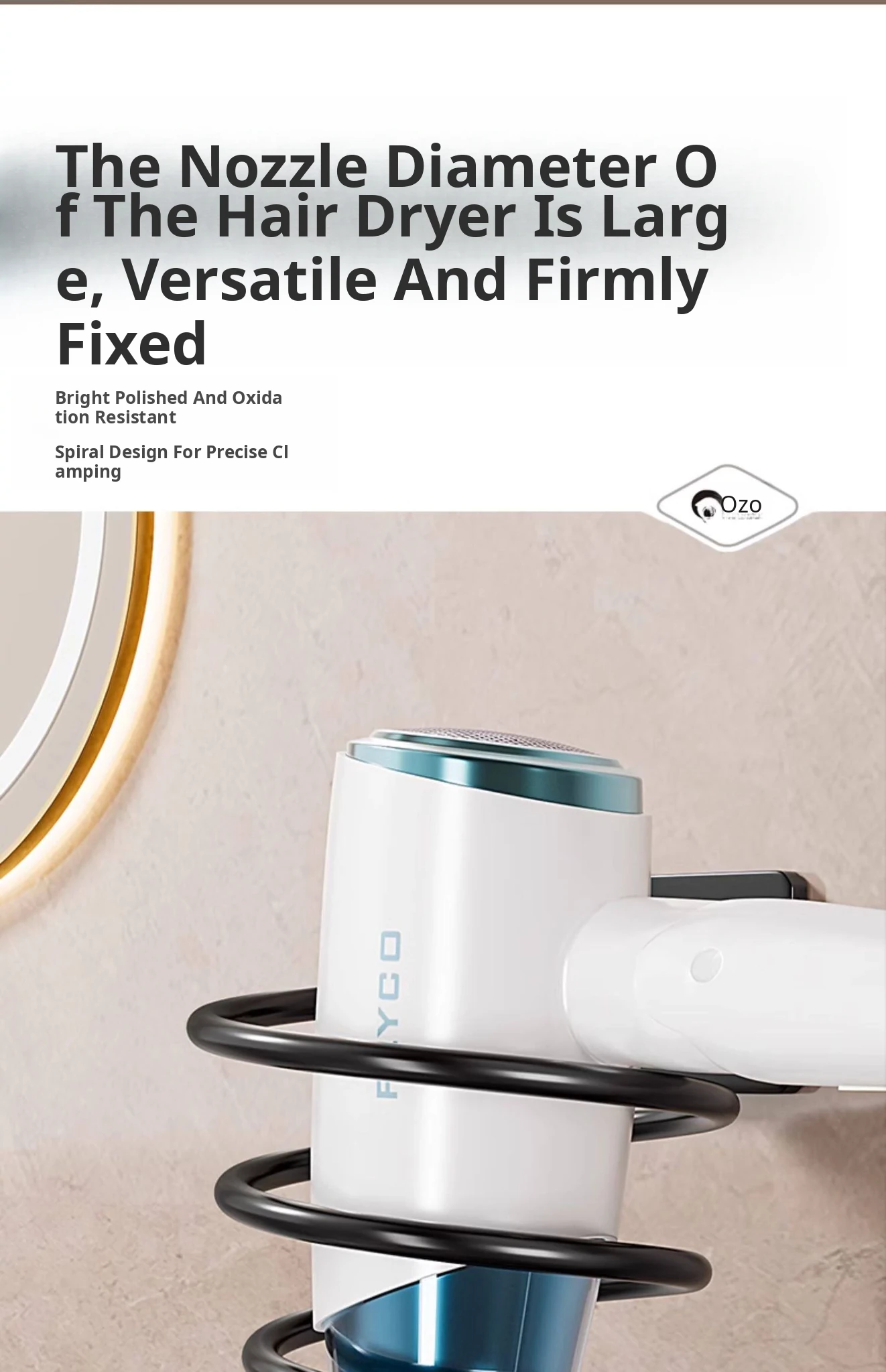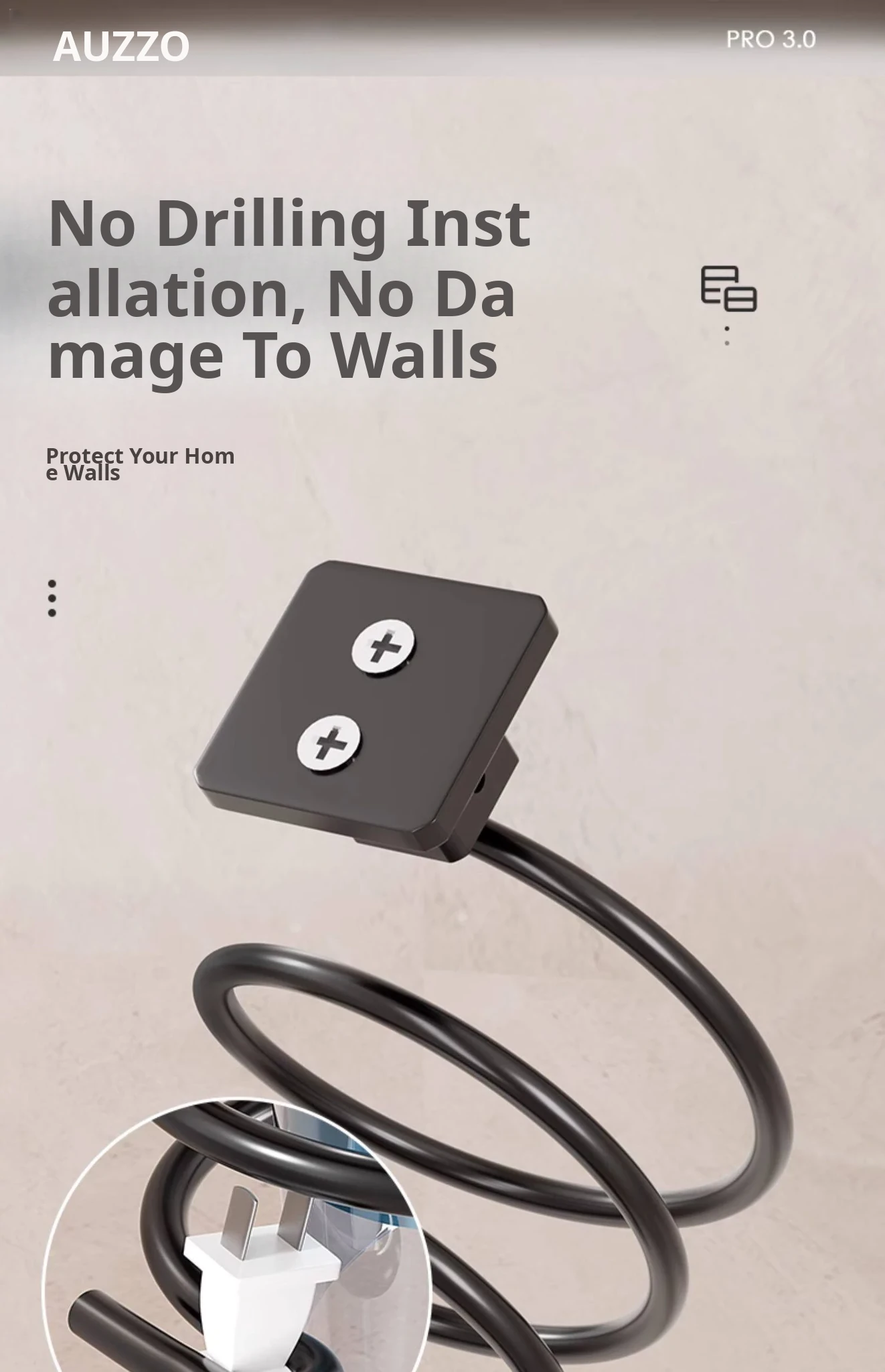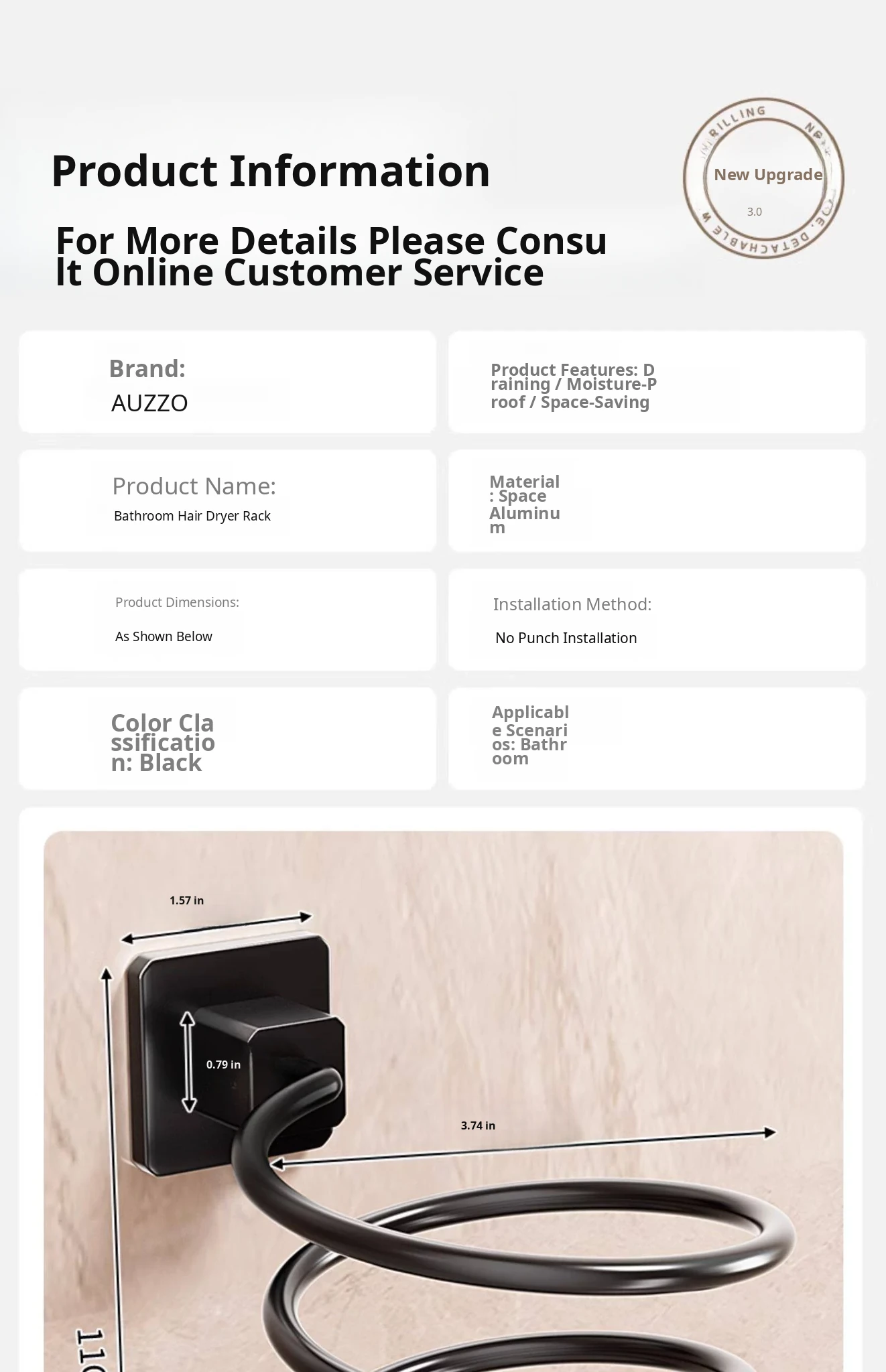 [Black] Hair Dryer Rack (Nail-Free Installation)