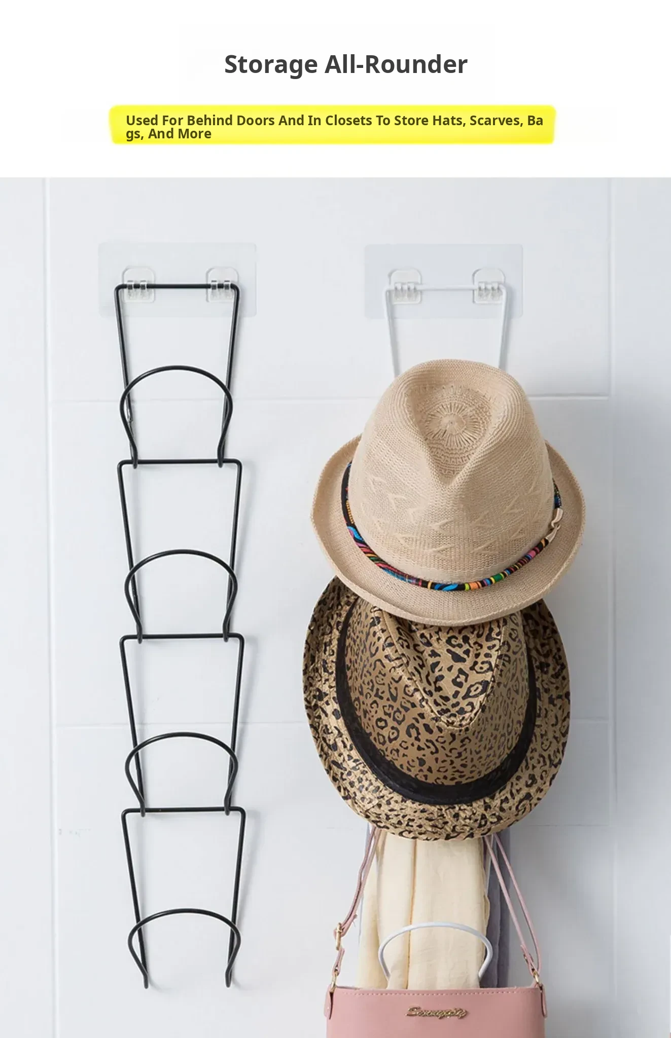 Wall-Mounted Hat Organizer - Versatile Storage Rack for Home Closets, Hooks for Bags and Accessories, Perfect for Maximizing Space Behind Doors. Keep Your Items Neat and Accessible!