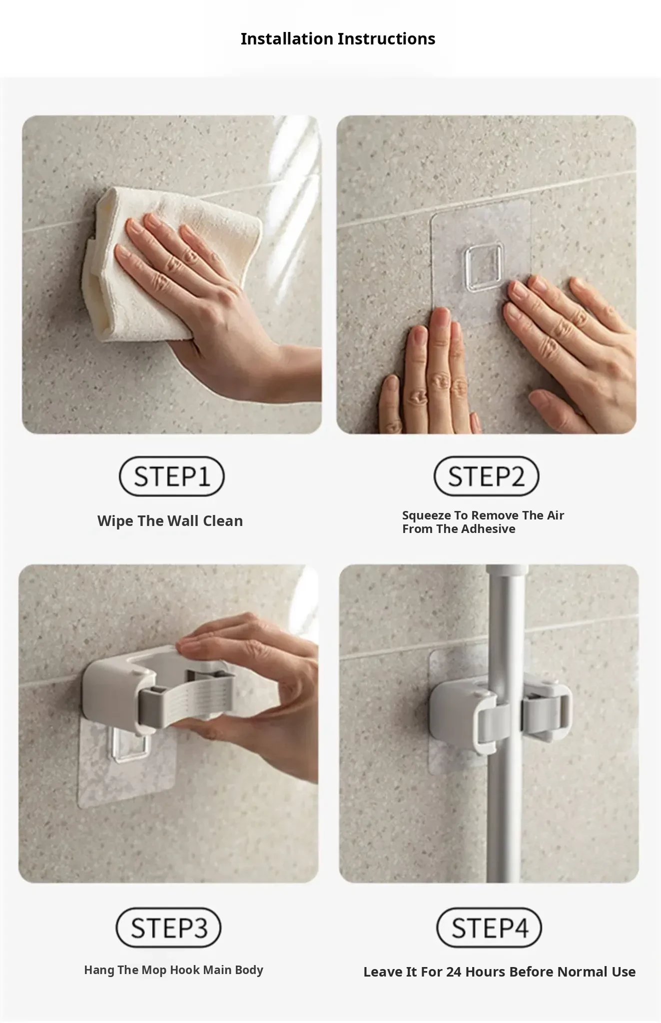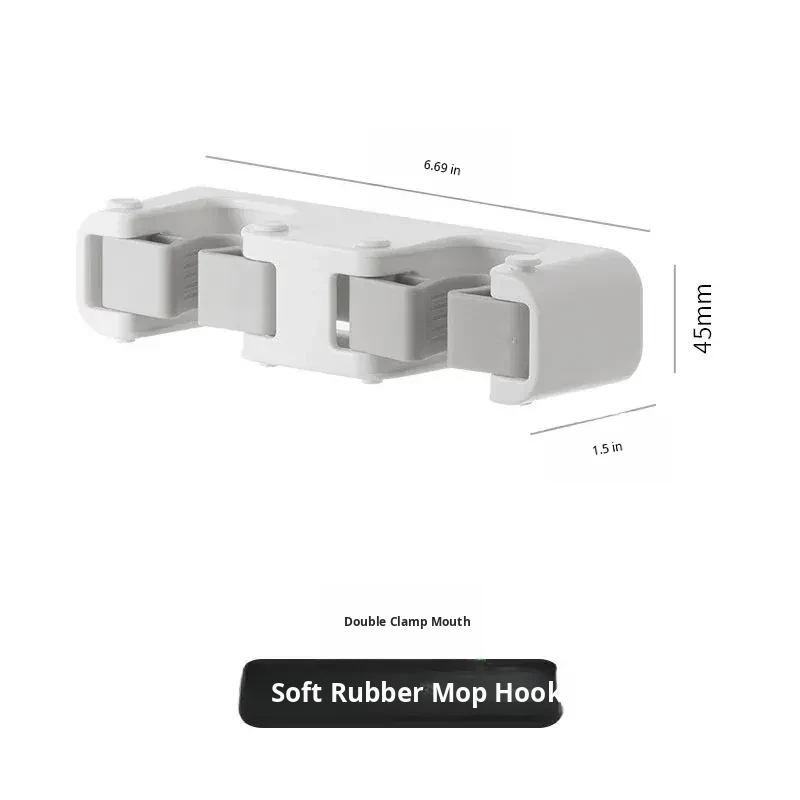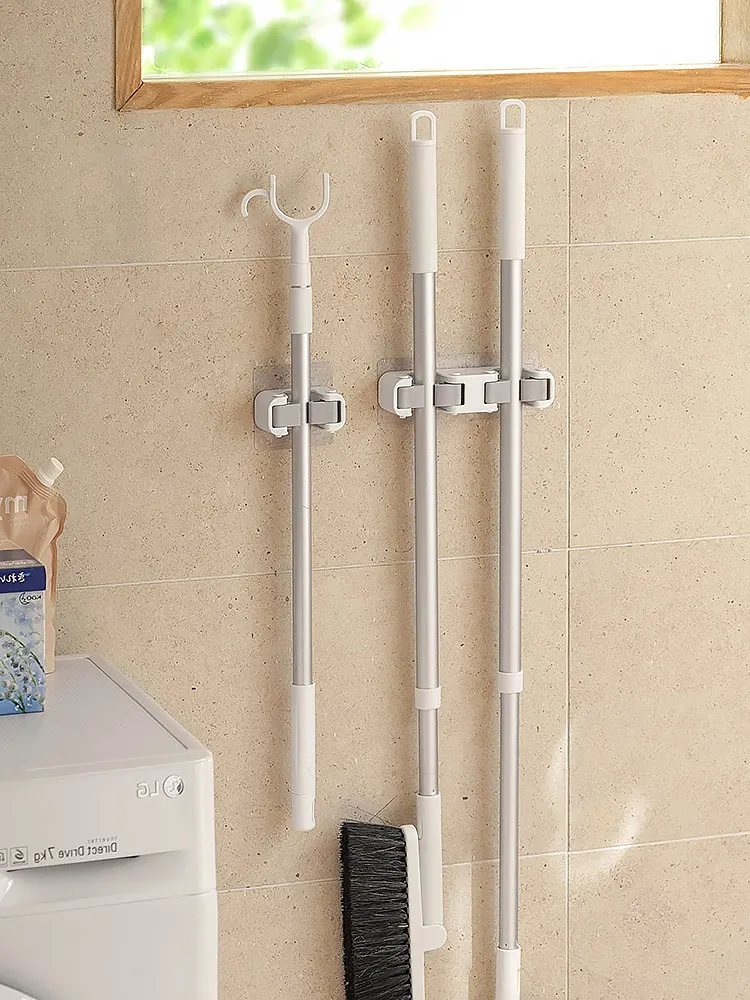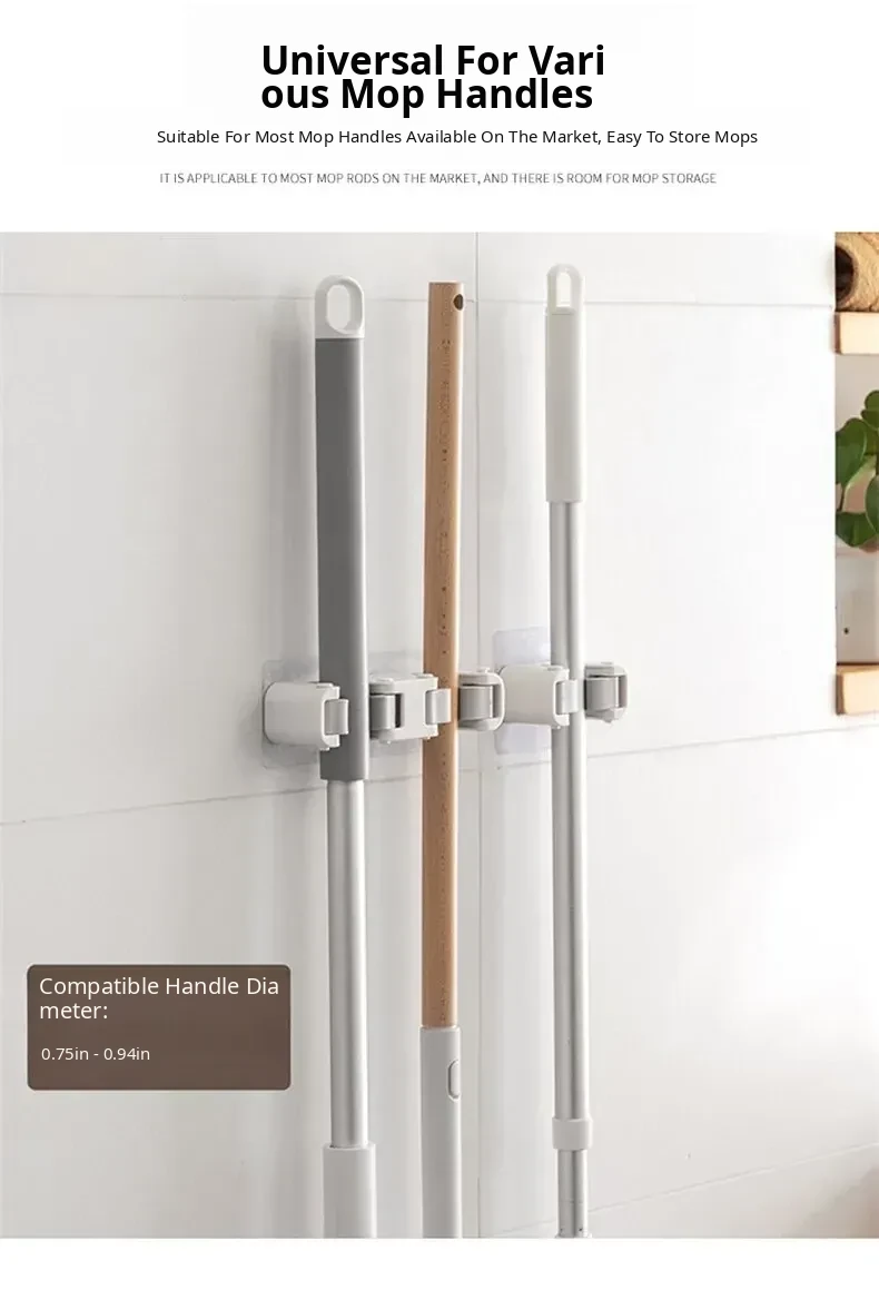 Wall-Mounted Mop Hook: No Drilling Required, Strong Adhesive Mop Storage Rack for Bathrooms – Securely Holds Mops and Brooms with Durable Clips
