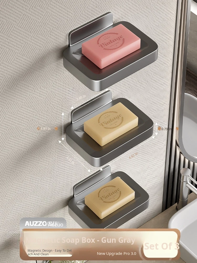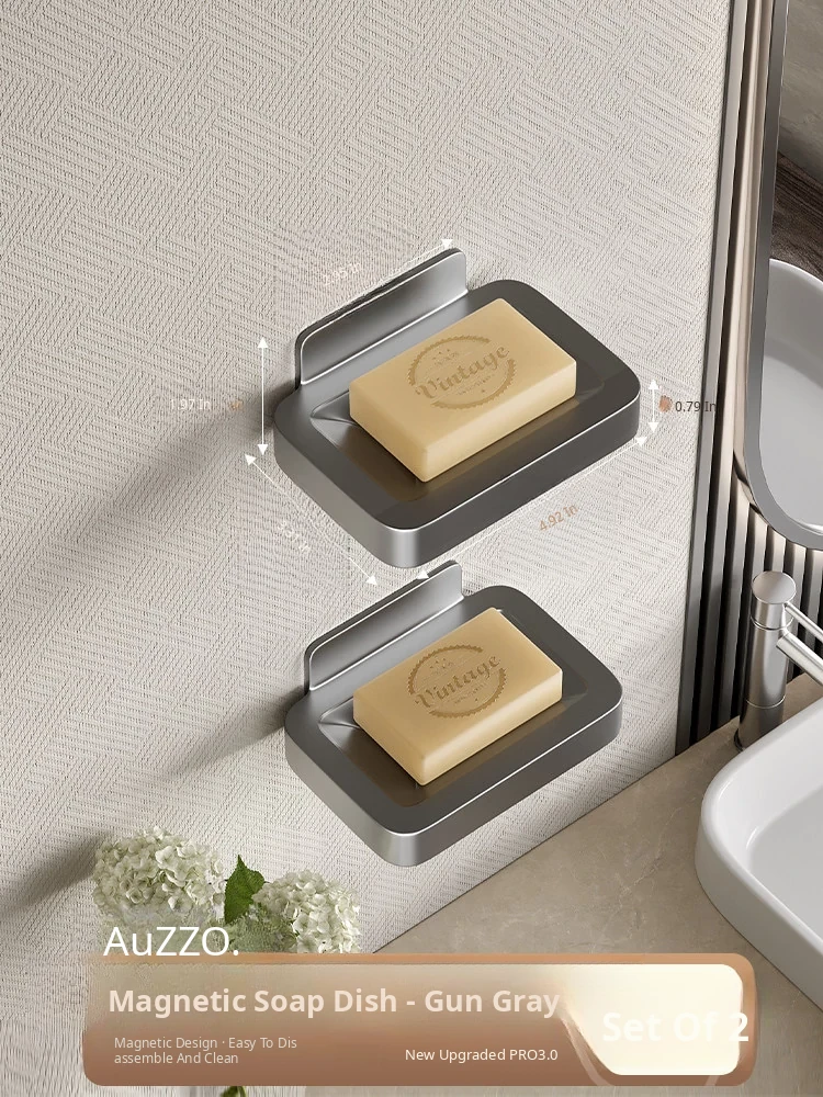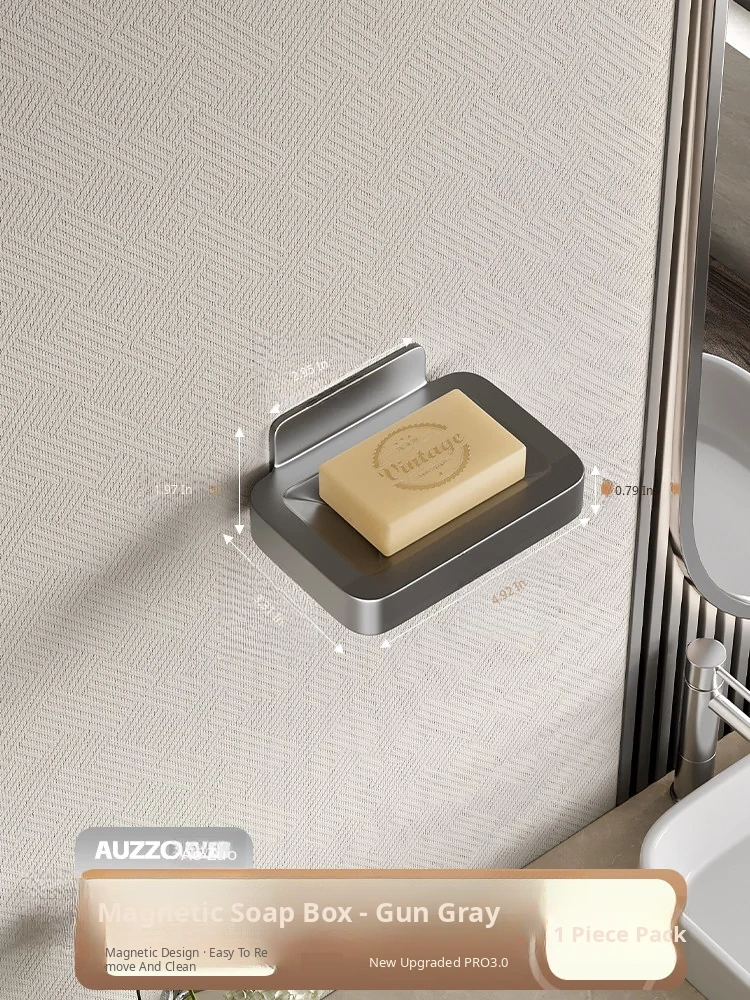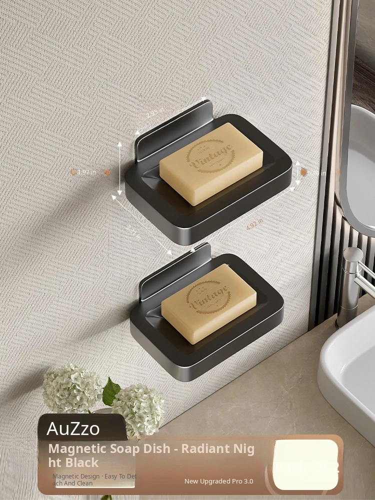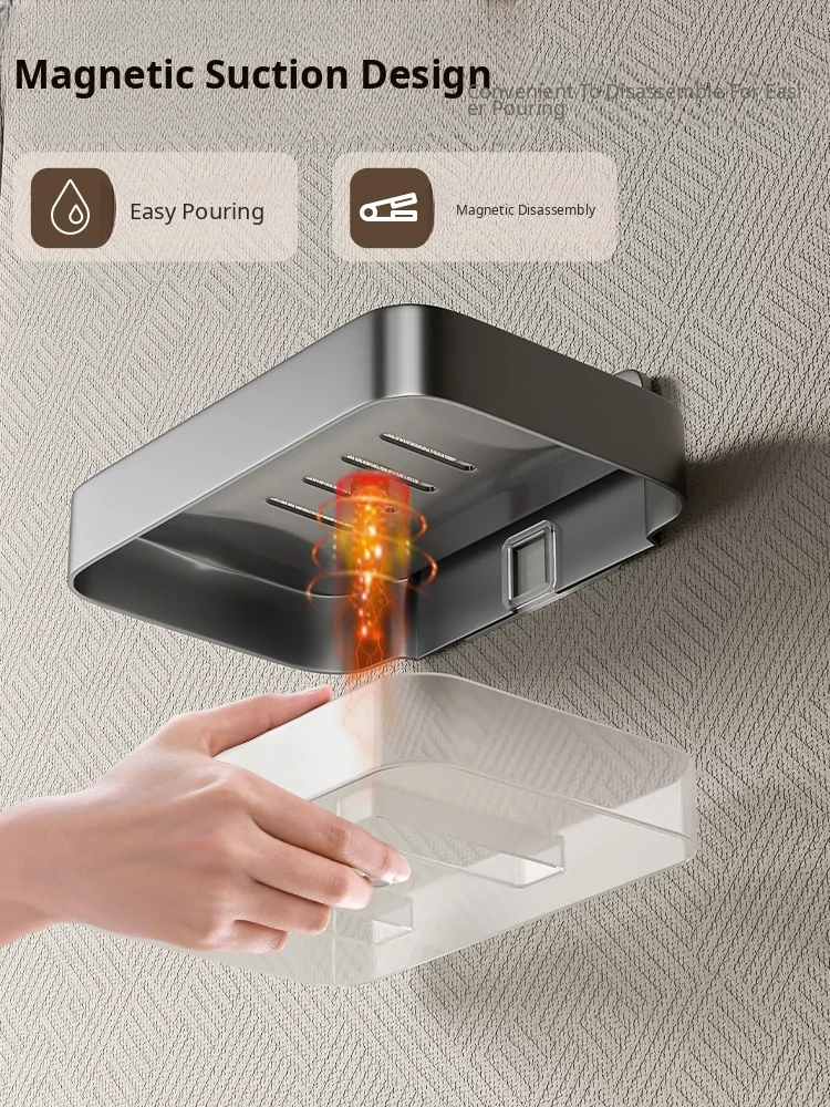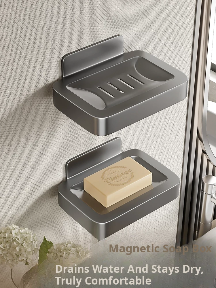 Wall-Mounted Soap Holder for Bathroom - No Drilling Required, Magnetic Soap Dish, Elegant Drainage Storage Rack for Home Use