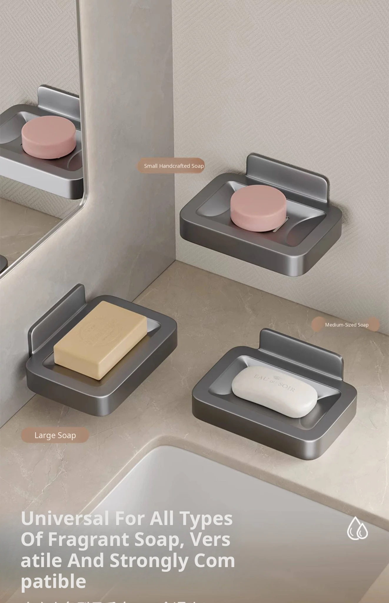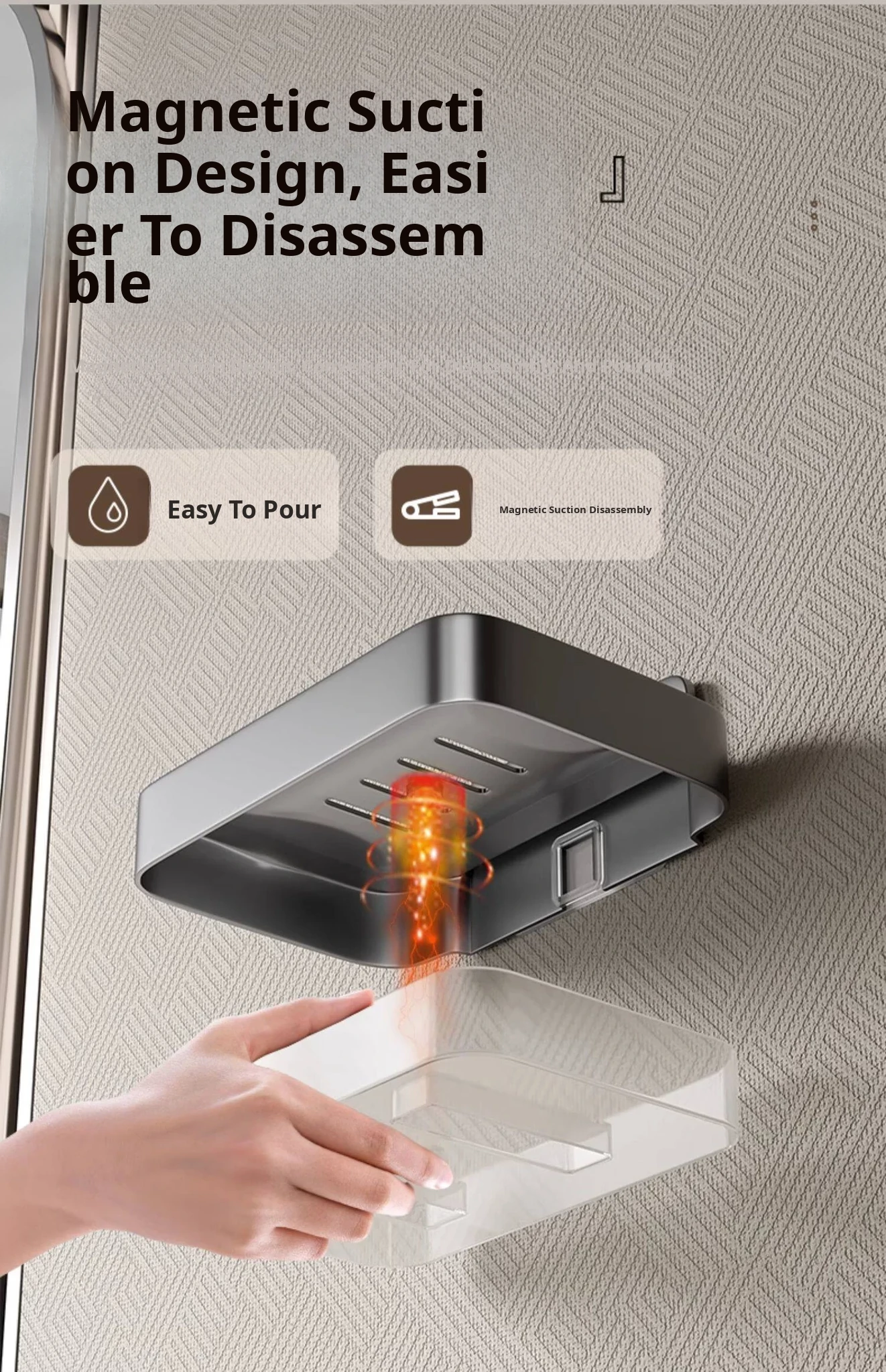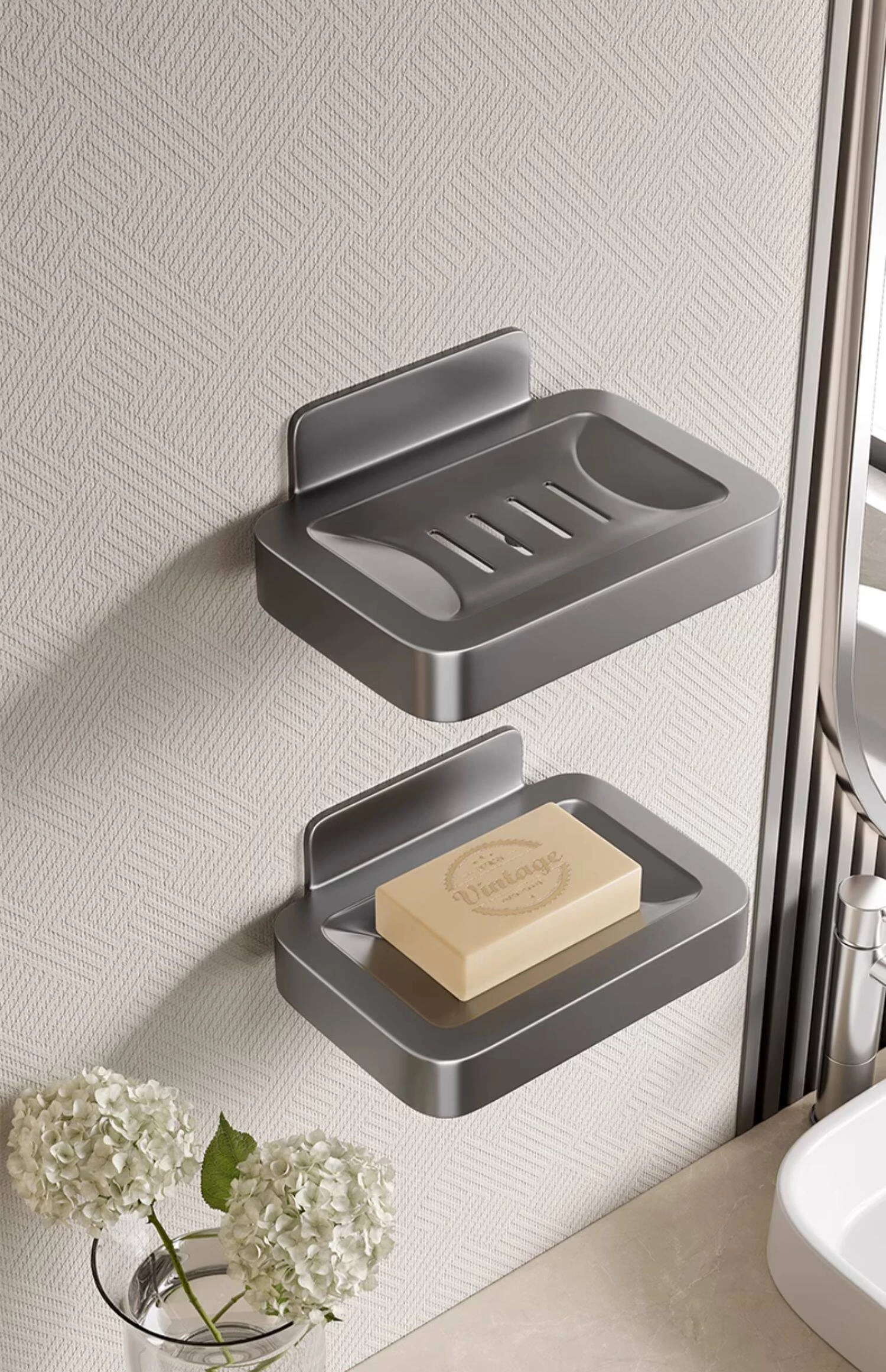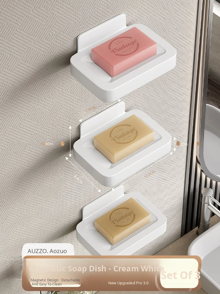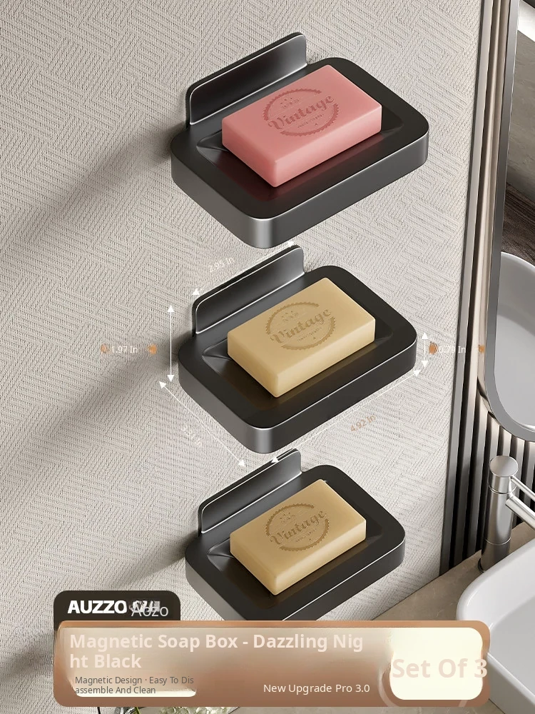 Wall-Mounted Soap Holder for Bathroom - No Drilling Required, Magnetic Soap Dish, Elegant Drainage Storage Rack for Home Use