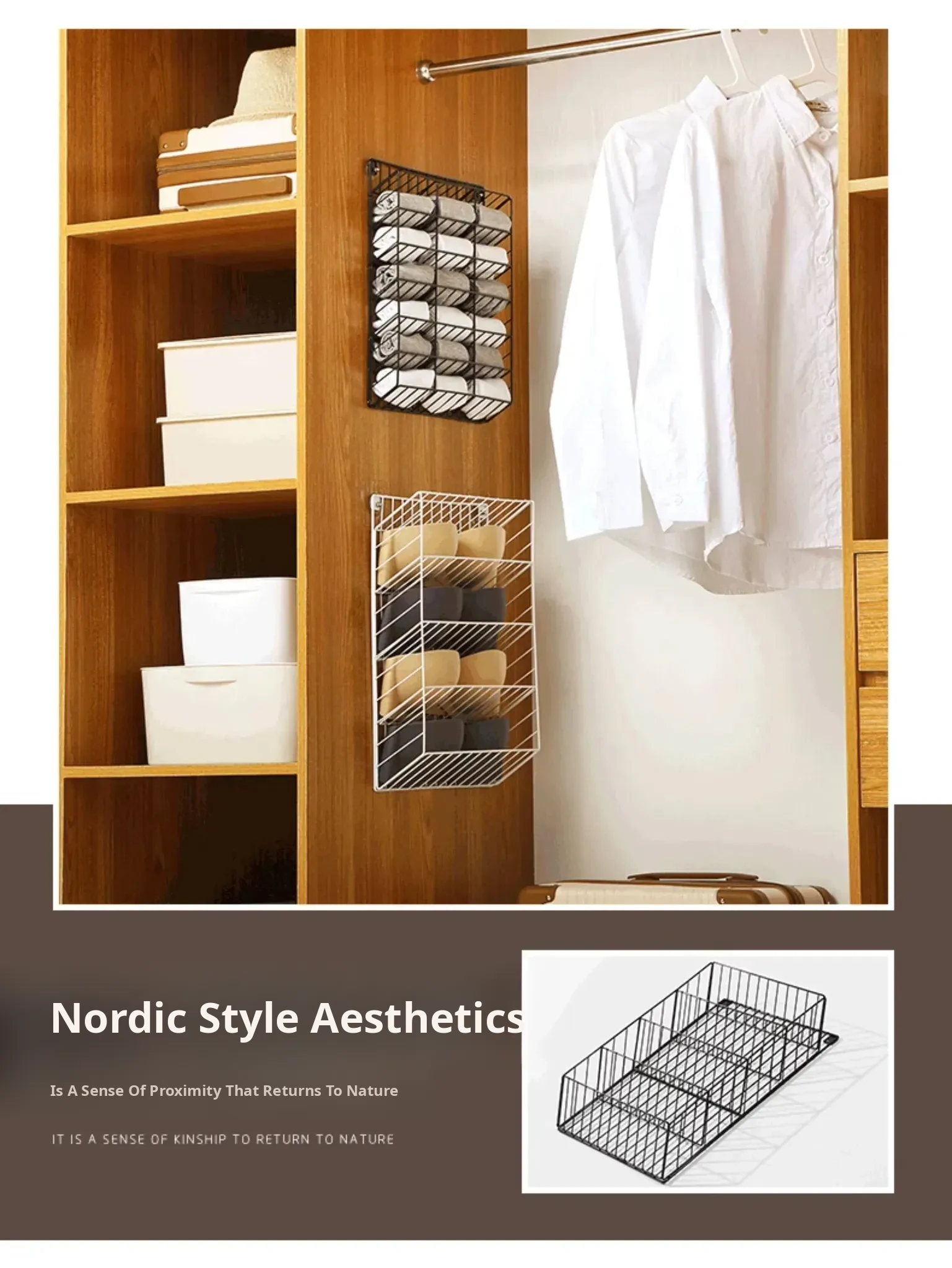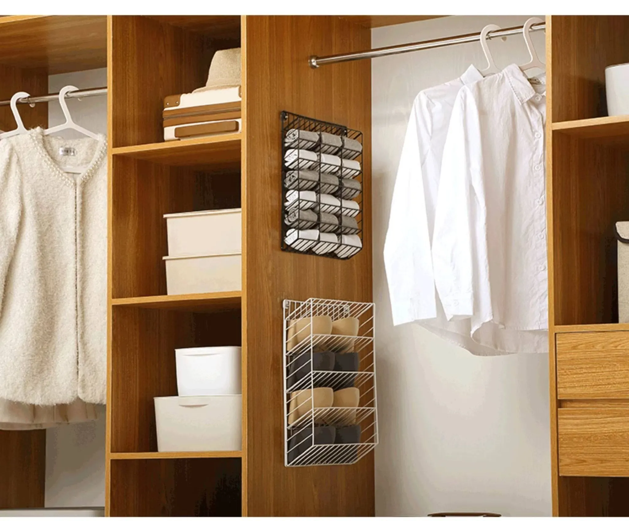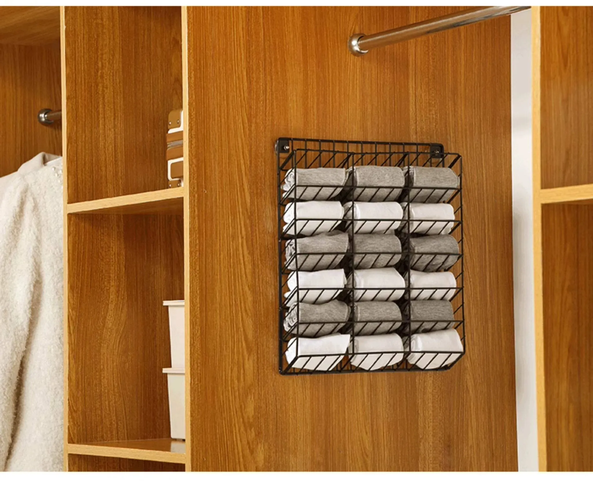 Wall-Mounted Sock Organizer - No Drilling Required, Perfect for Closet or Dorm, Ideal for Storing Underwear, Panties, and Hosiery - Space-Saving Hanging Rack