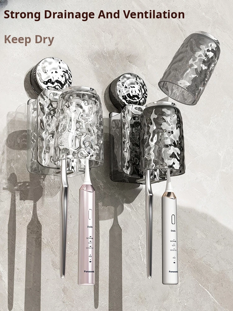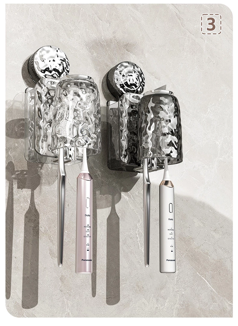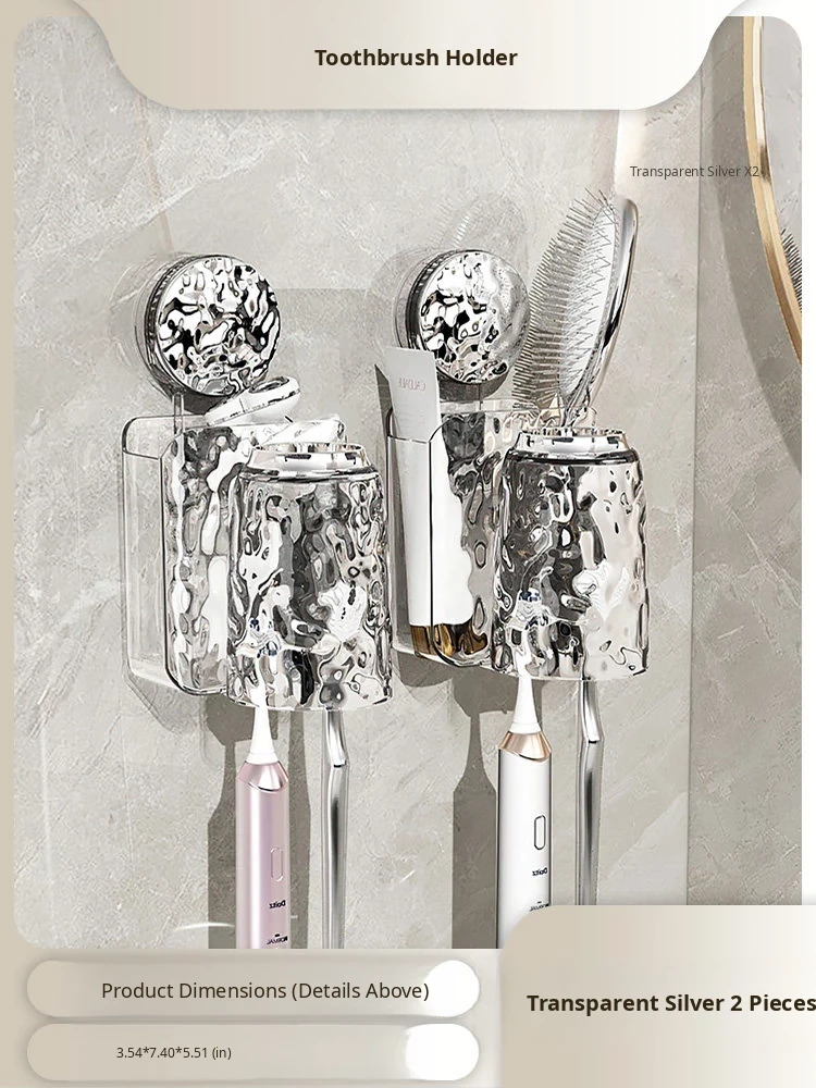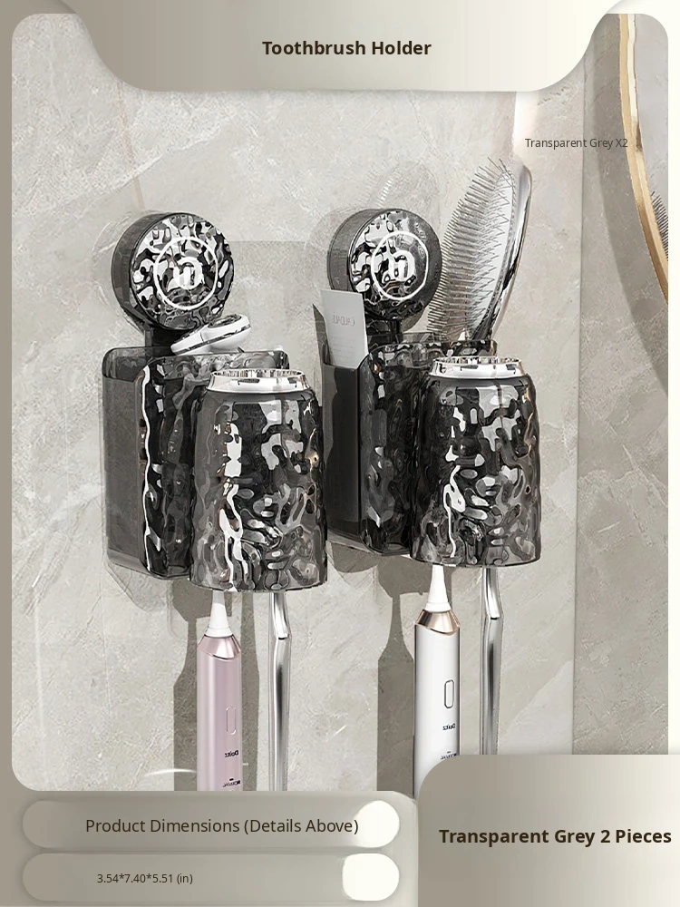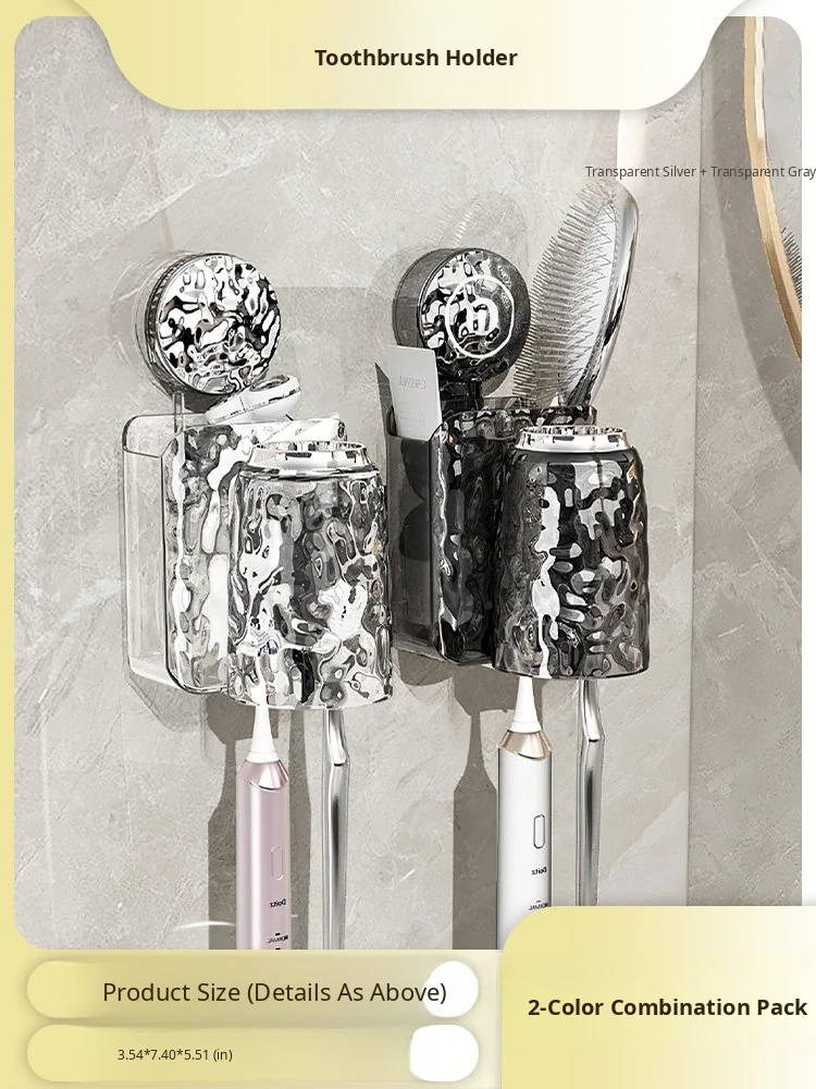 [Transparent Silver + Transparent Gray] Suction Cup Toothbrush Holder (Combined Pack)