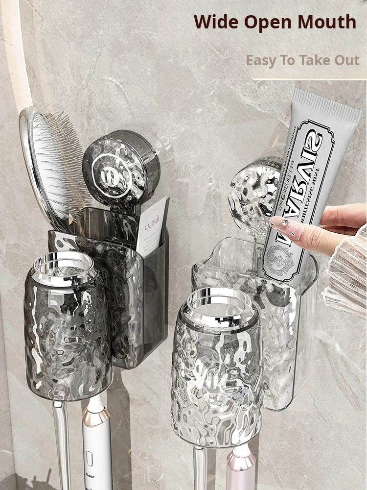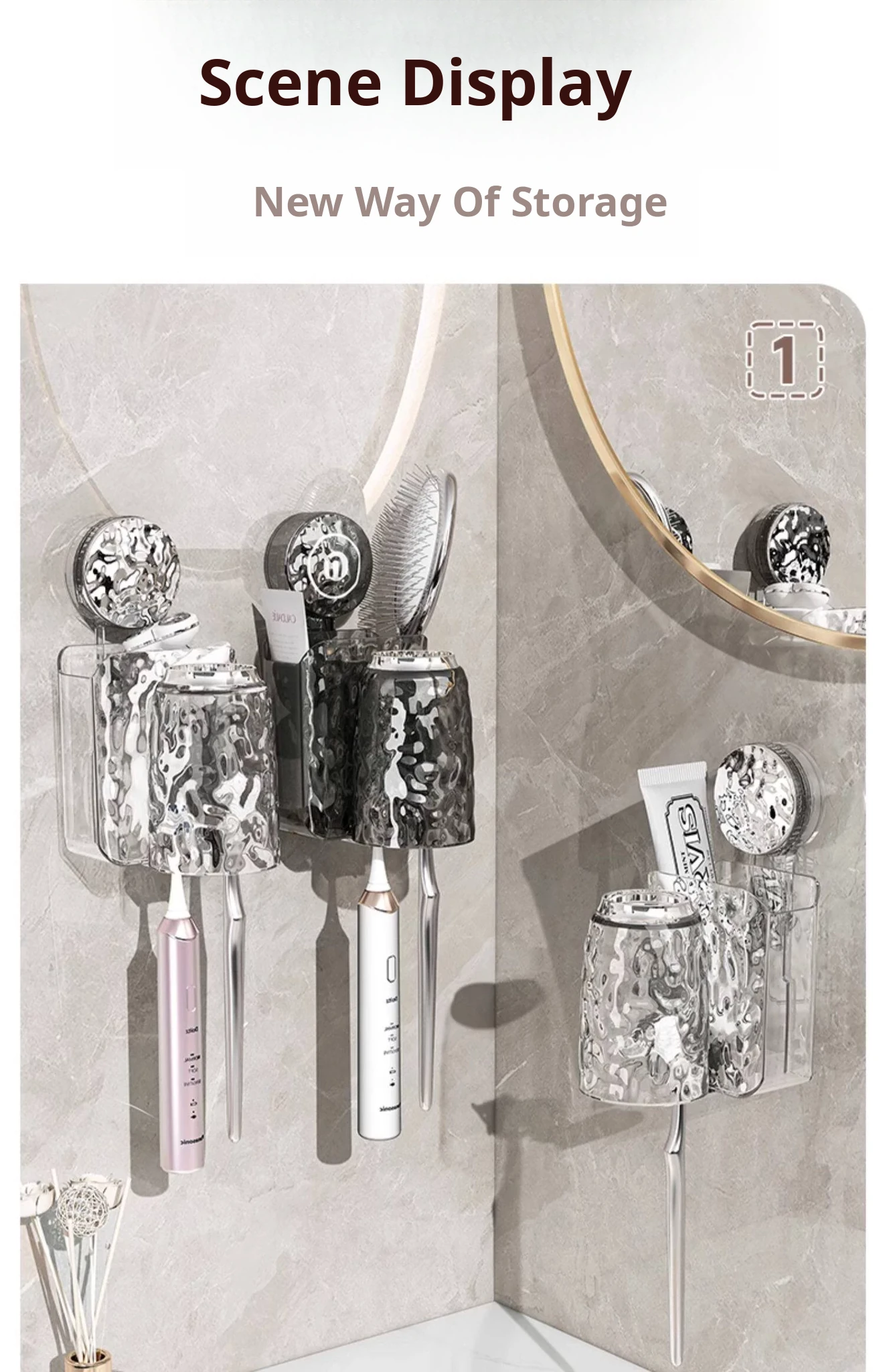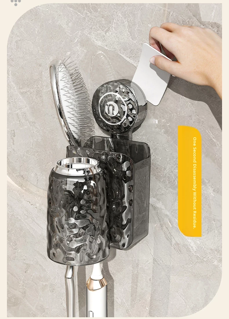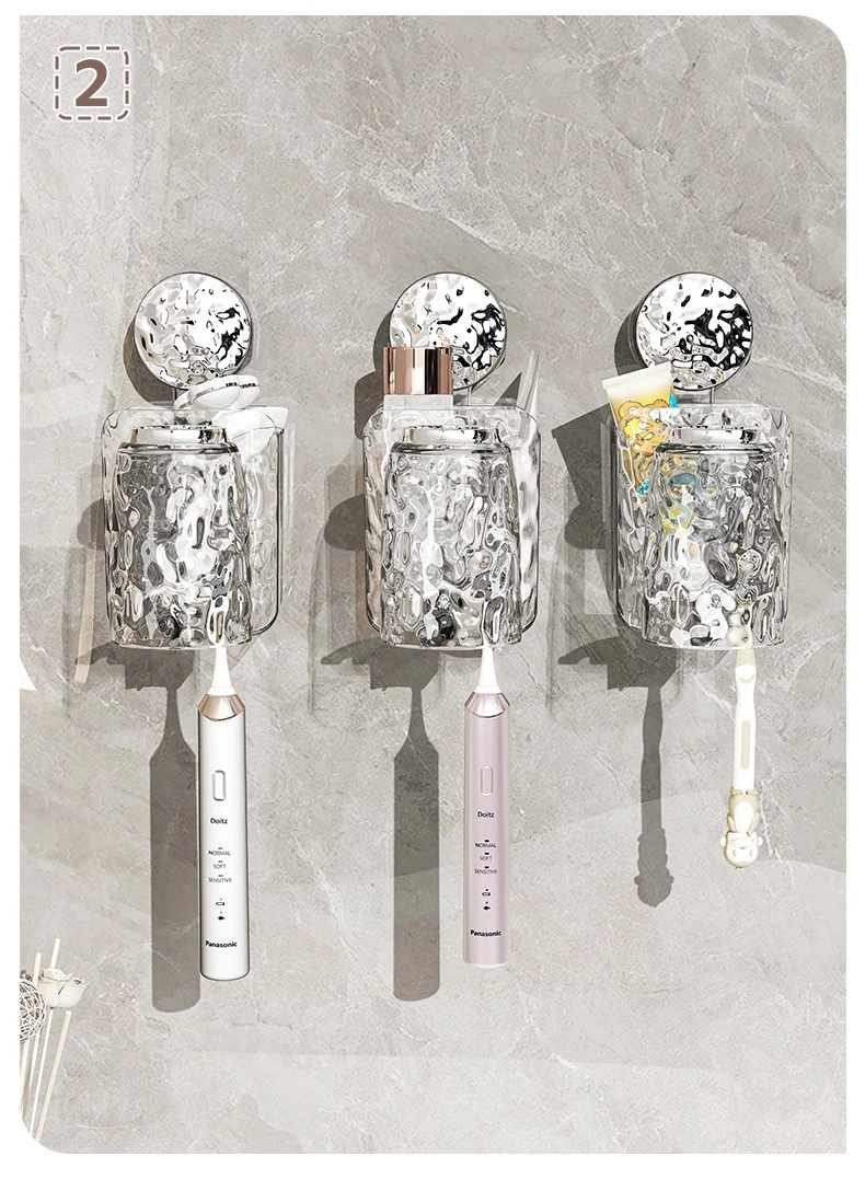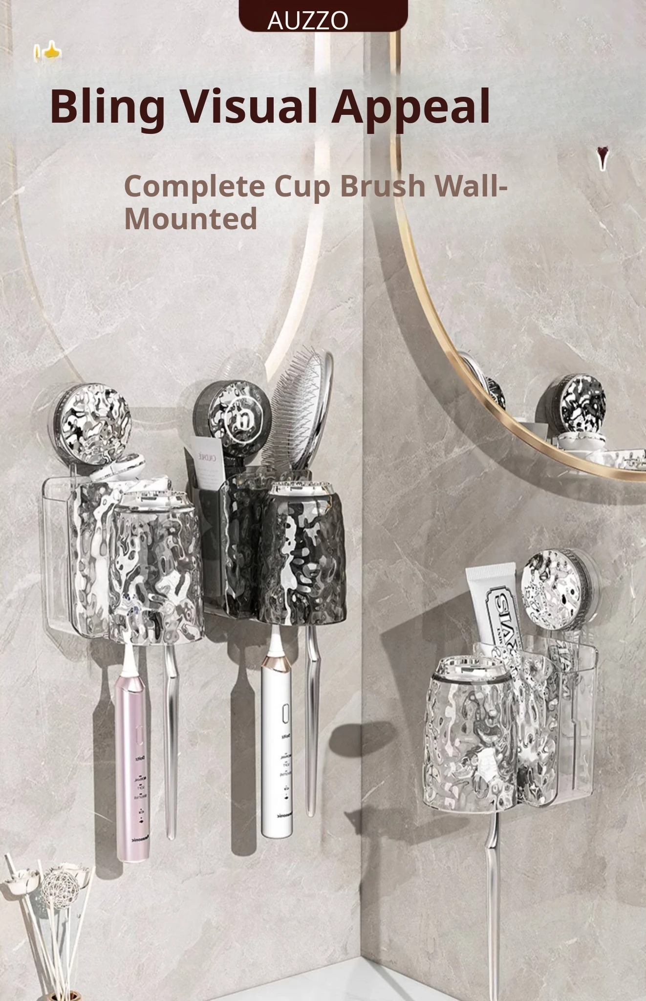 Wall-Mounted Suction Cup Toothbrush Holder for Electric Toothbrushes – Includes Rinsing Cup and Toothbrush Mug – No Drilling Required, Perfect for Your Bathroom Organization!
