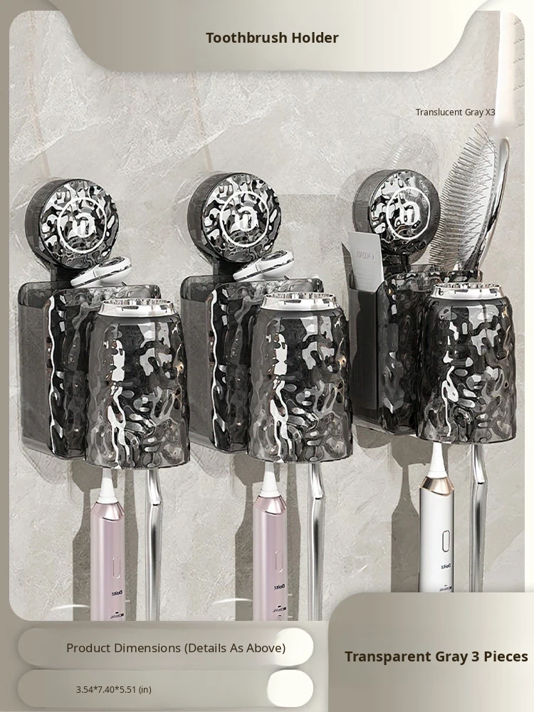 [Transparent Gray] Suction Cup Toothbrush Holder-Single Cup (Pack of 3)
