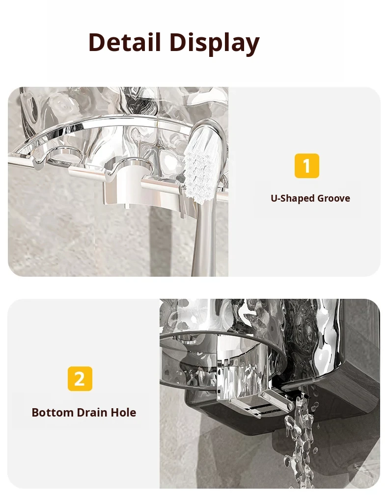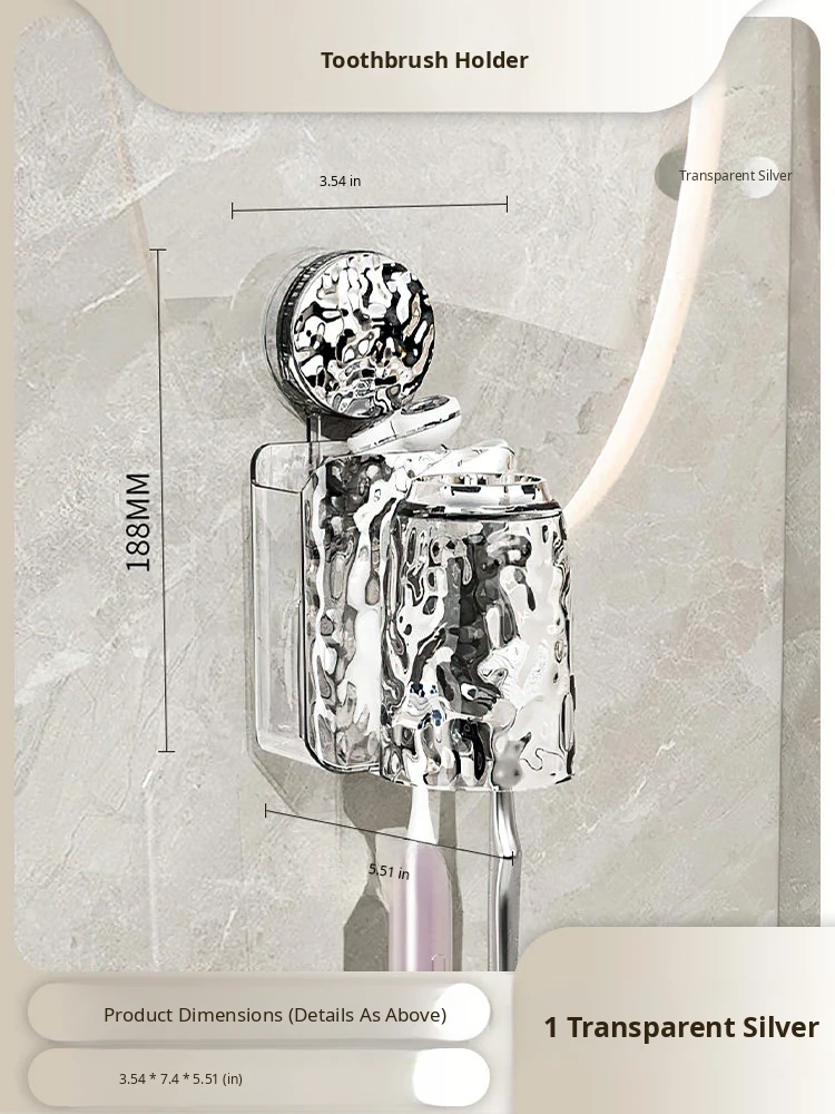 [Transparent Silver] Suction Cup Toothbrush Holder-Single Cup