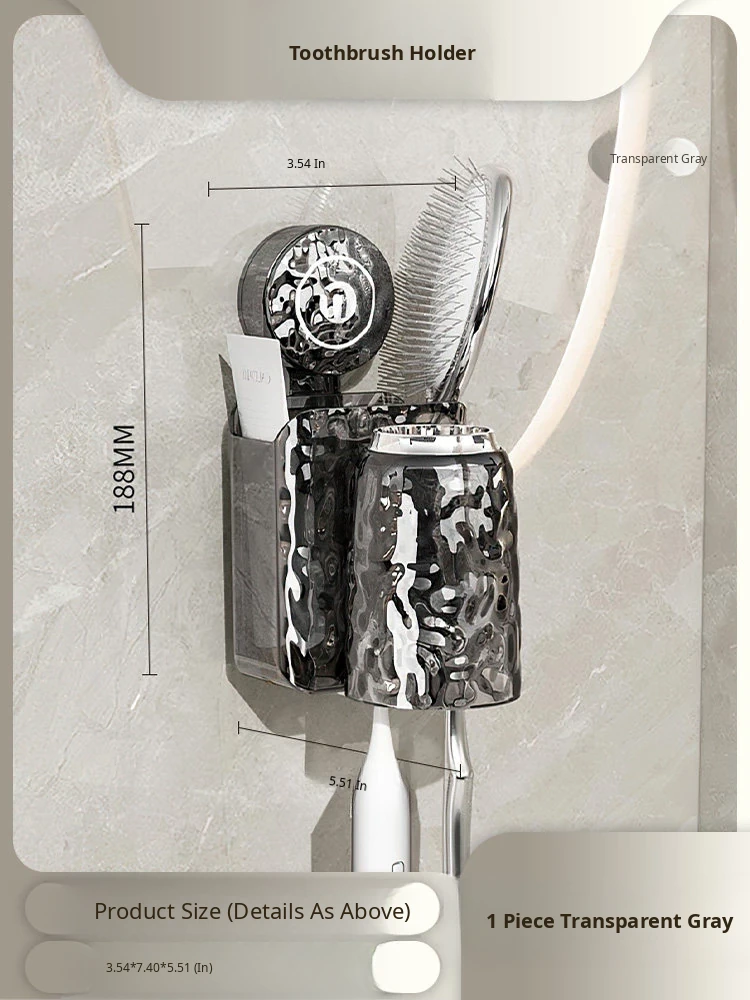 [Transparent Gray] Suction Cup Toothbrush Holder-Single Cup