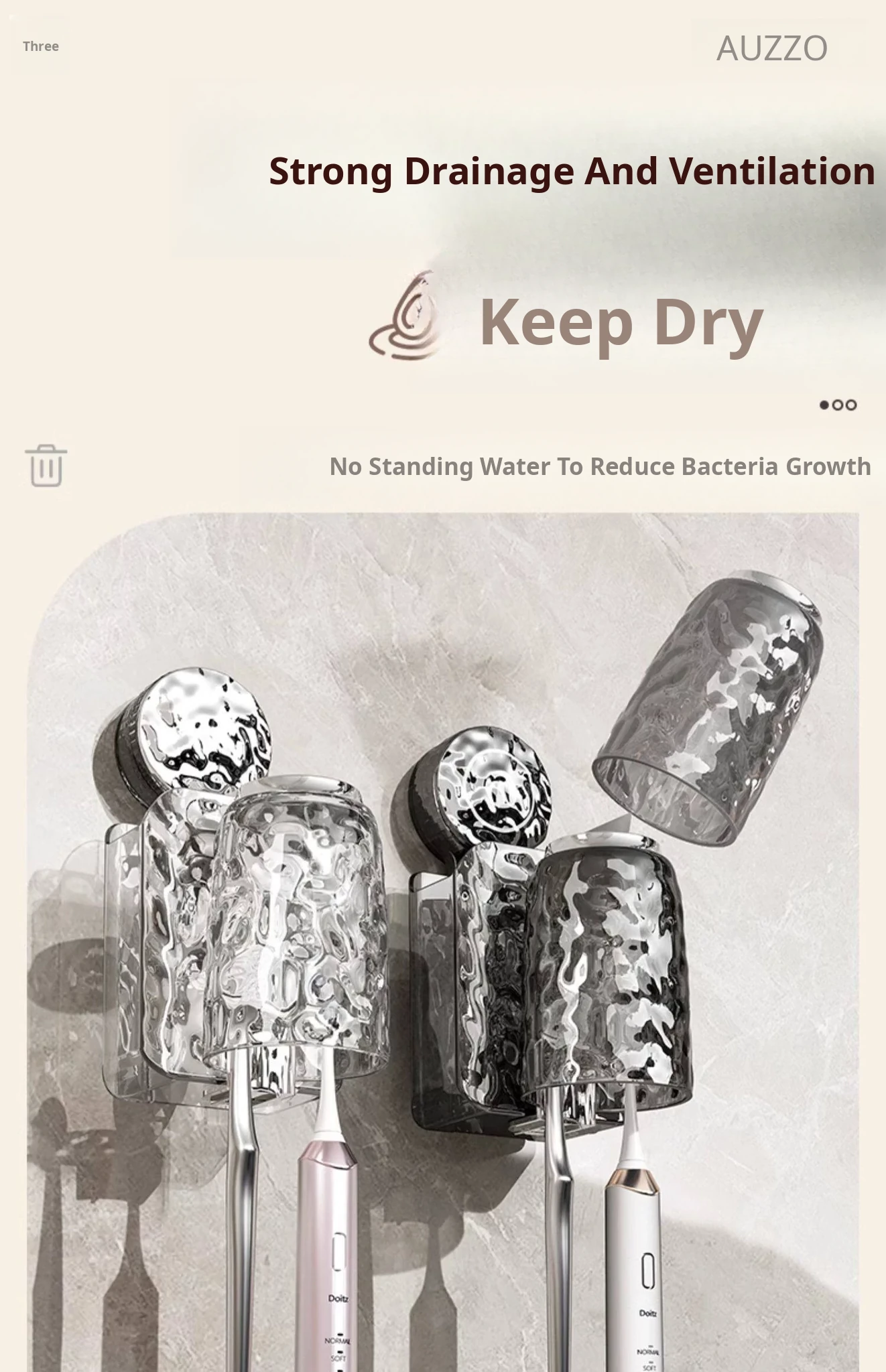[Transparent Silver] Suction Cup Toothbrush Holder-Single Cup (Pack of 3)