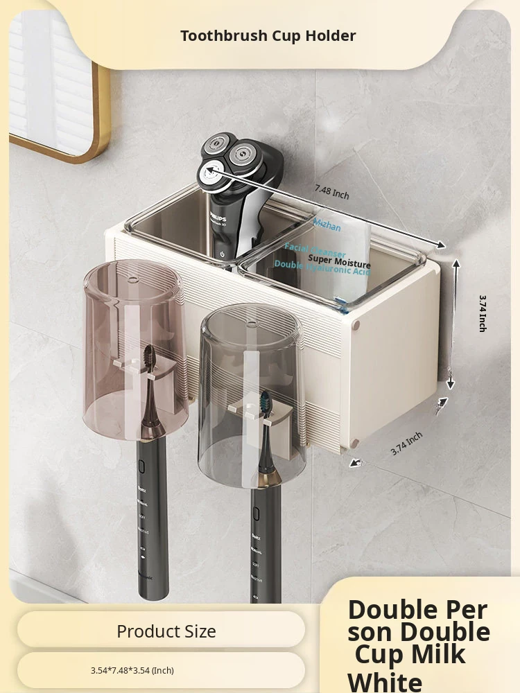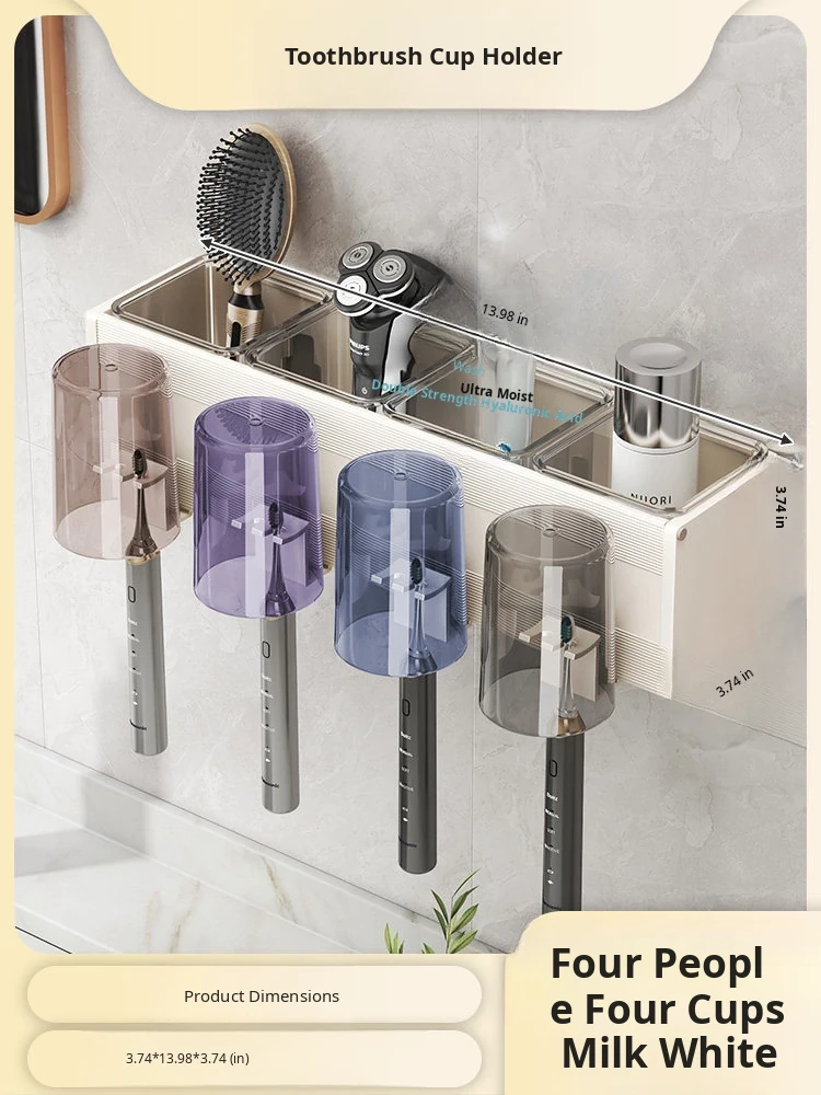 Milk White/Toothbrush Holder for Four People and Four Cups [Removable and Easy to Clean]