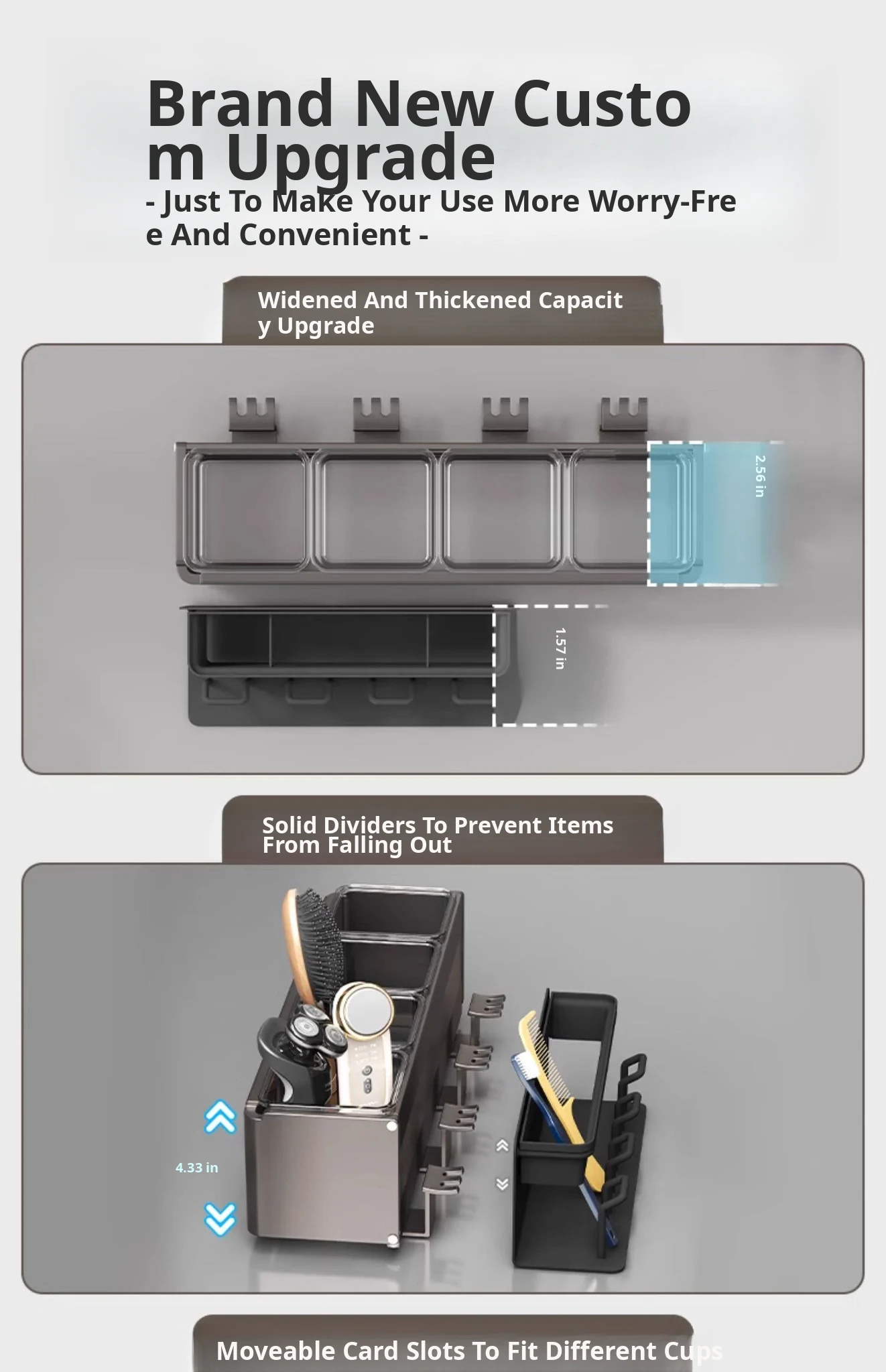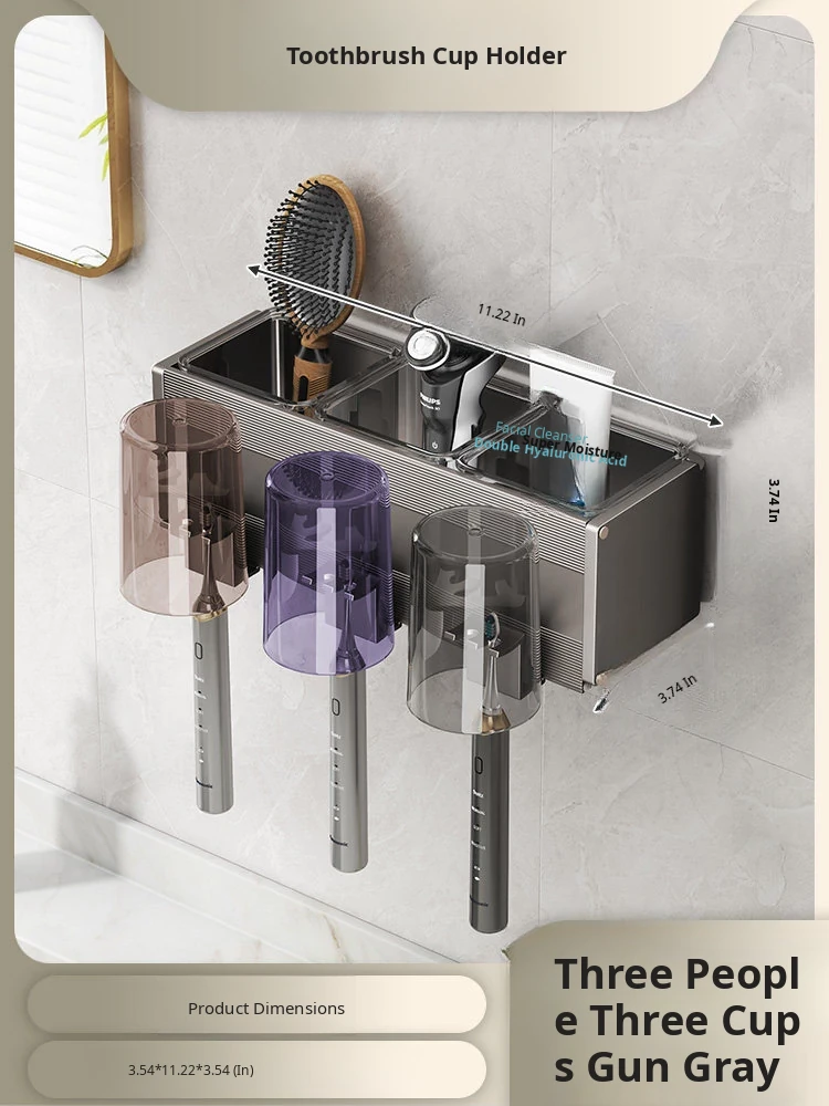 Gun Gray/Toothbrush Holder for Three People and Three Cups [Removable and Easy to Clean]