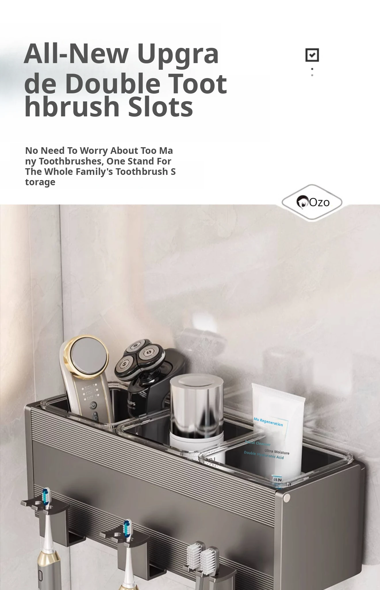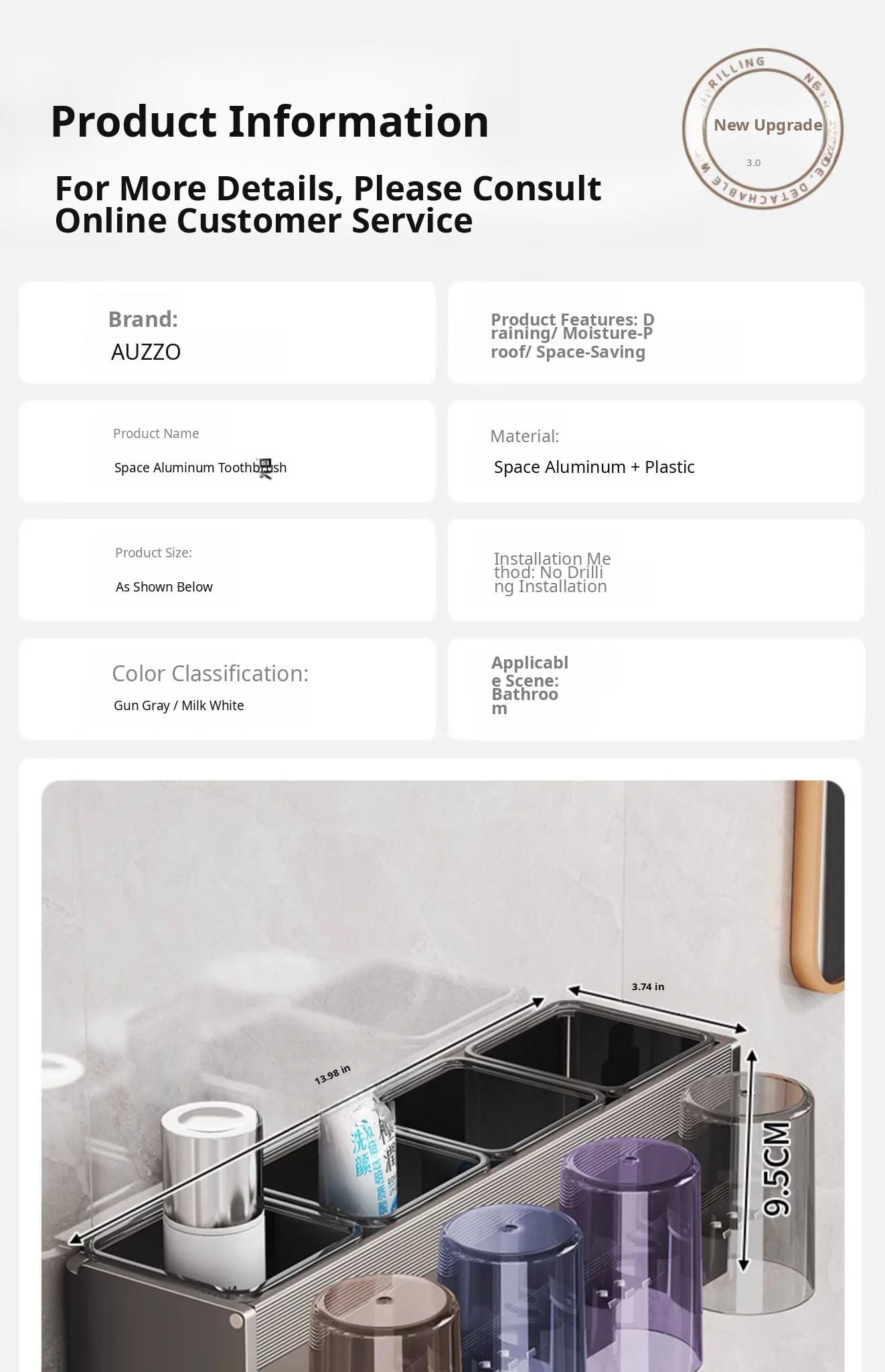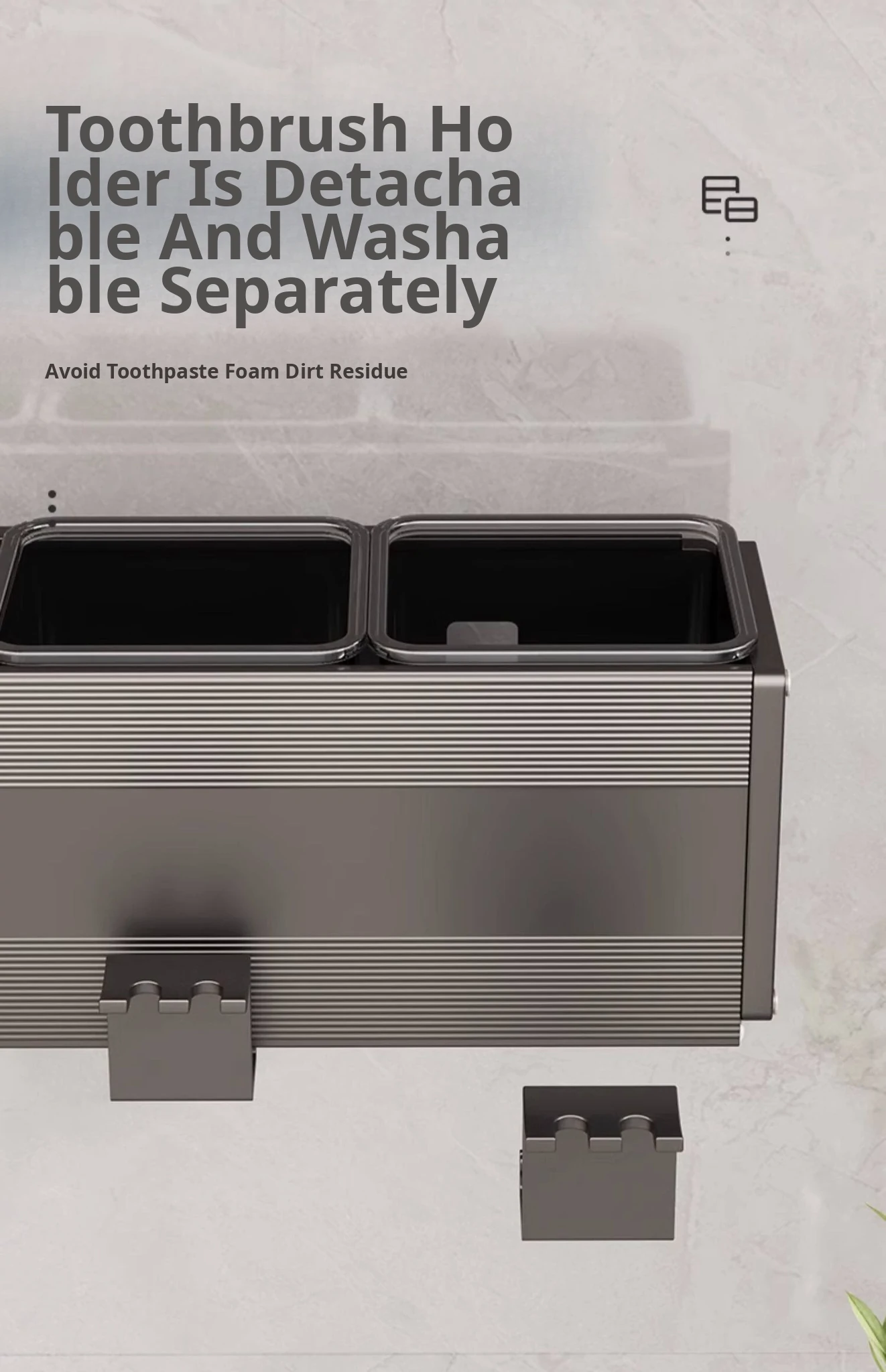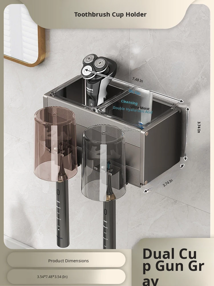 Gun Gray/Toothbrush Holder Double Cup [Removable and Easy to Clean]