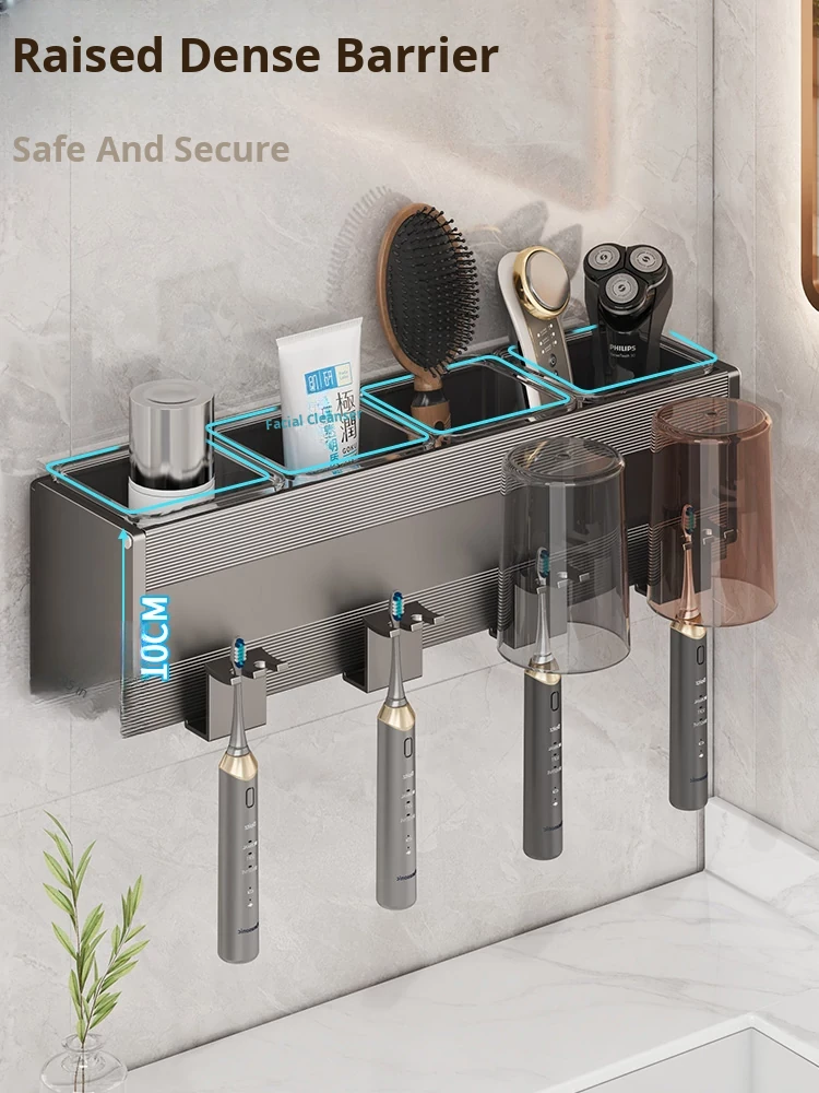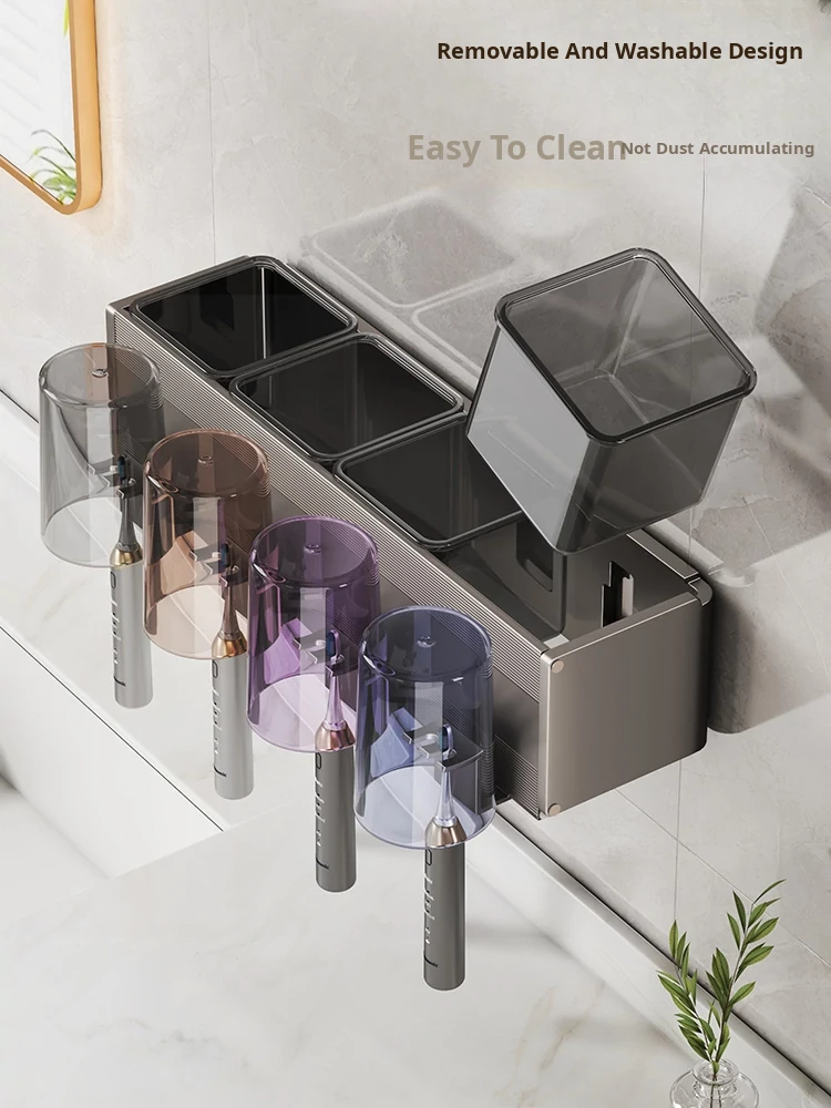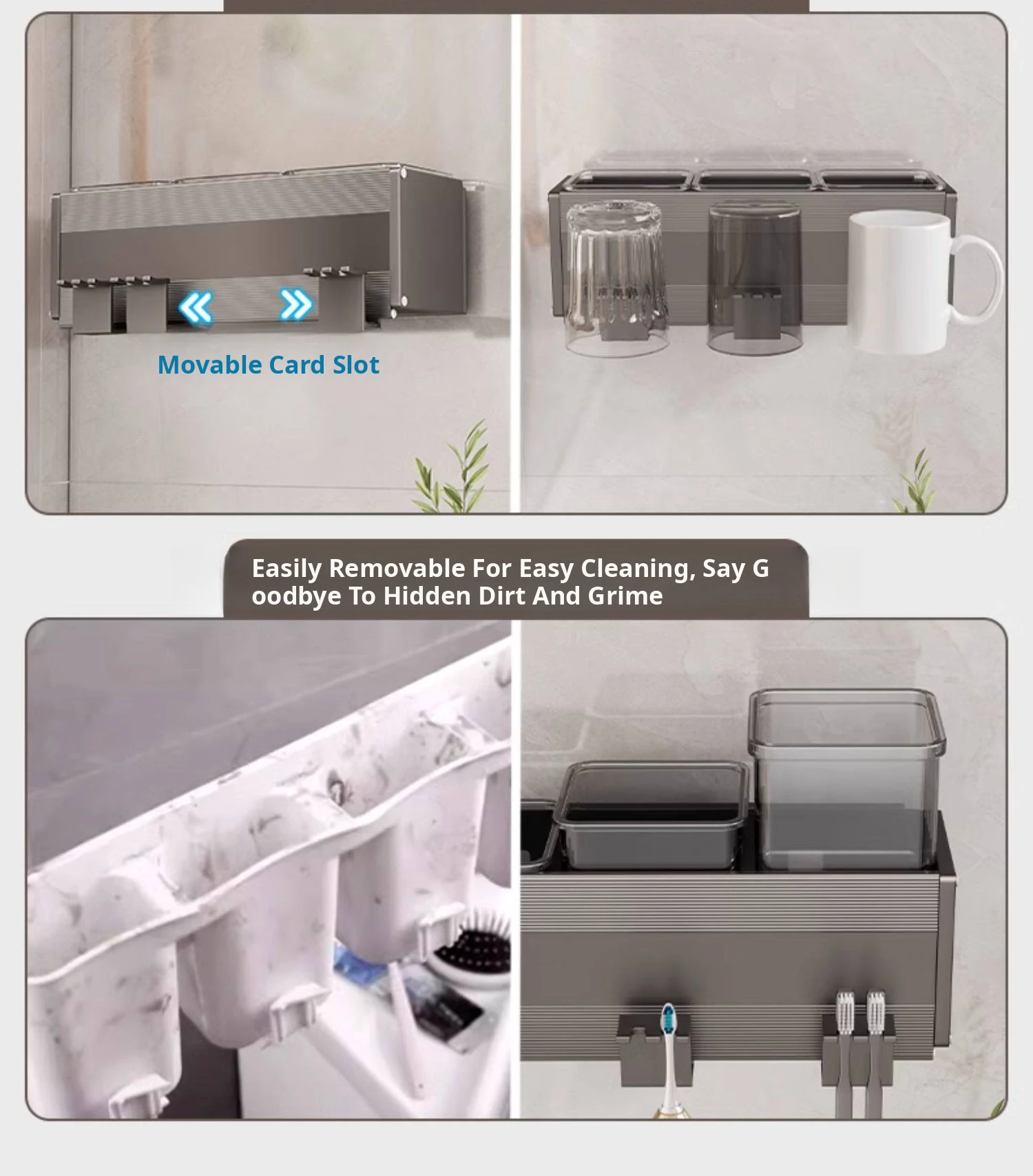 Gun Gray/Toothbrush Holder for Four People and Four Cups [Removable and Easy to Clean]