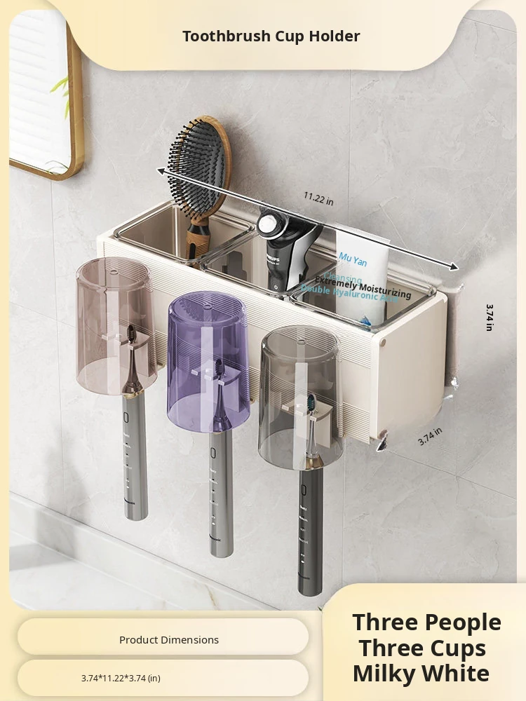 Milk White/Toothbrush Holder for Three People and Three Cups [Removable and Easy to Clean]
