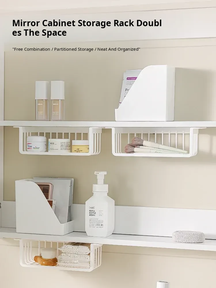 Pull-Out Double-Layer Storage Basket for Bathroom Vanity Sink - Space-Saving Organizer for Bathroom Cabinets and Shelves, Perfect for Neat and Tidy Storage Solutions