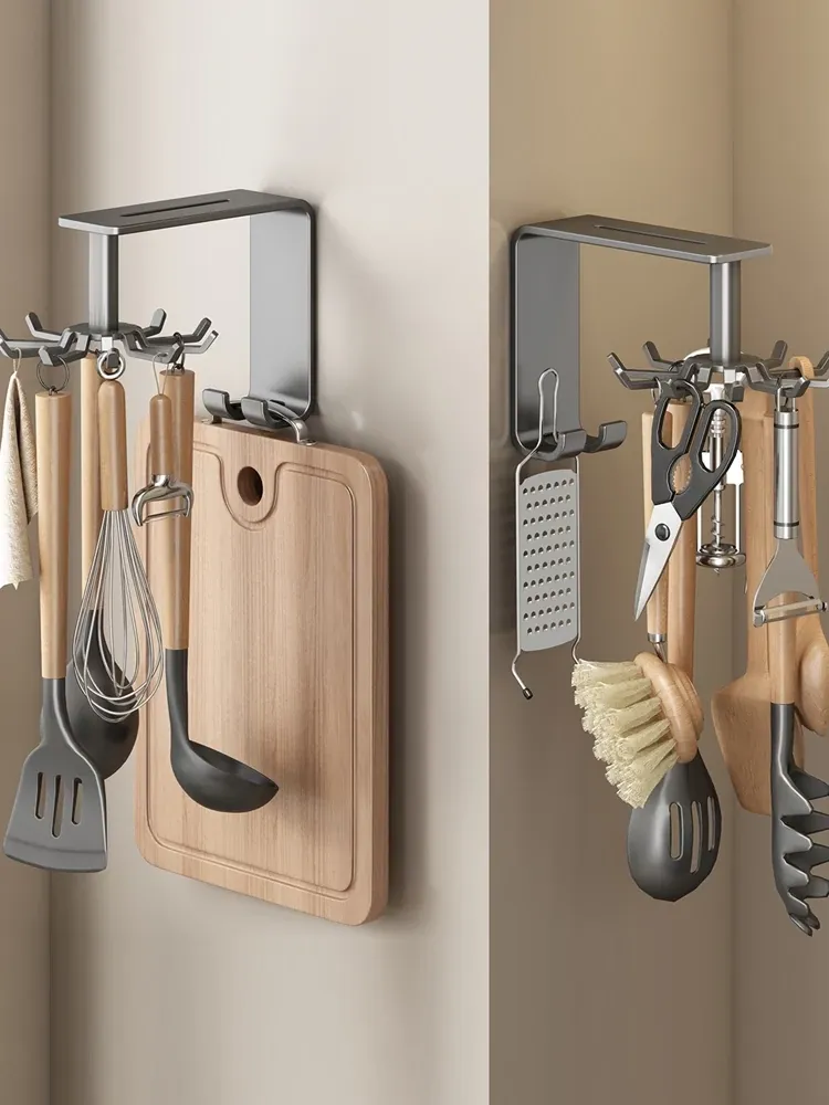 360-Degree Rotating Hook for Kitchen - No Drill, Multifunctional Wall-Mounted Organizer for Spatulas, Spoons, and Cooking Utensils - Maximize Space and Keep Your Kitchen Tidy!