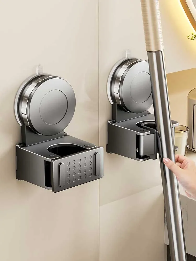 Suction Mop Holder - Wall-Mounted Mop and Broom Organizer with No Drilling Required - Perfect for Bathroom and Door Storage Solution!