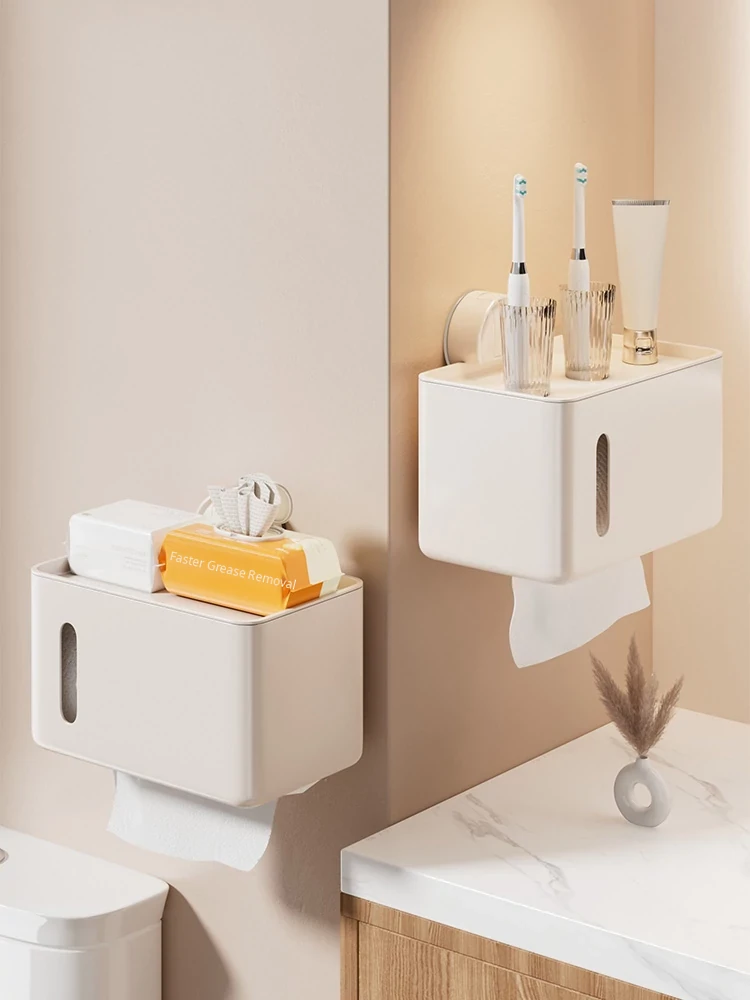 Multifunctional Wall-Mounted Tissue Holder with Strong Suction Hooks - Perfect for Bathrooms and Kitchens, Easy to Use and Space-Saving Design!