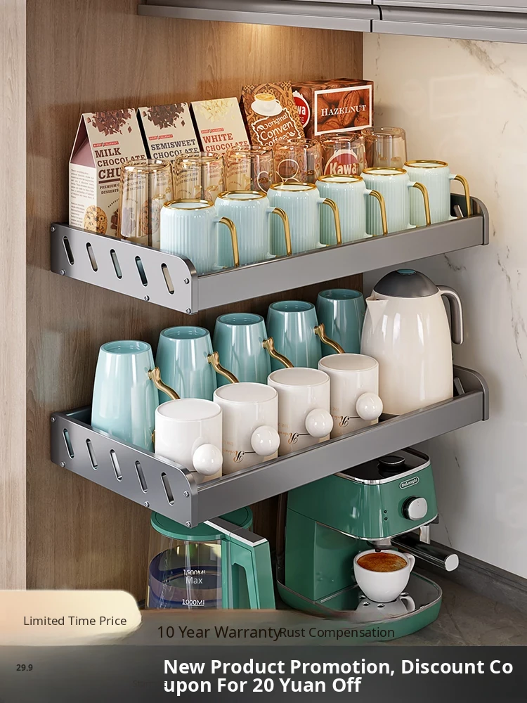 Wall-Mounted Cup and Teacup Storage Rack - No Drilling Required, Perfect for Organizing Your Home and Keeping Your Mugs, Water Bottles, and Teapots Neat and Handy!