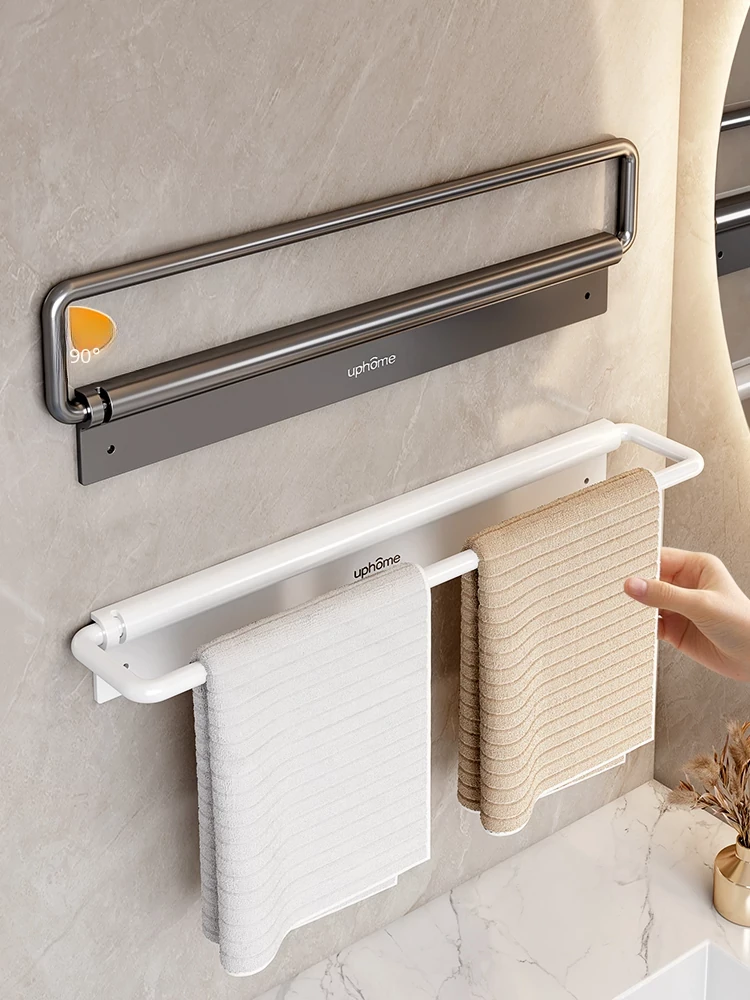 Space Aluminum Towel Rack - Wall-Mounted, No Drilling Required, Foldable Single & Double Rod Design for Bathroom - Sleek and Modern Towel Holder for Convenient Storage