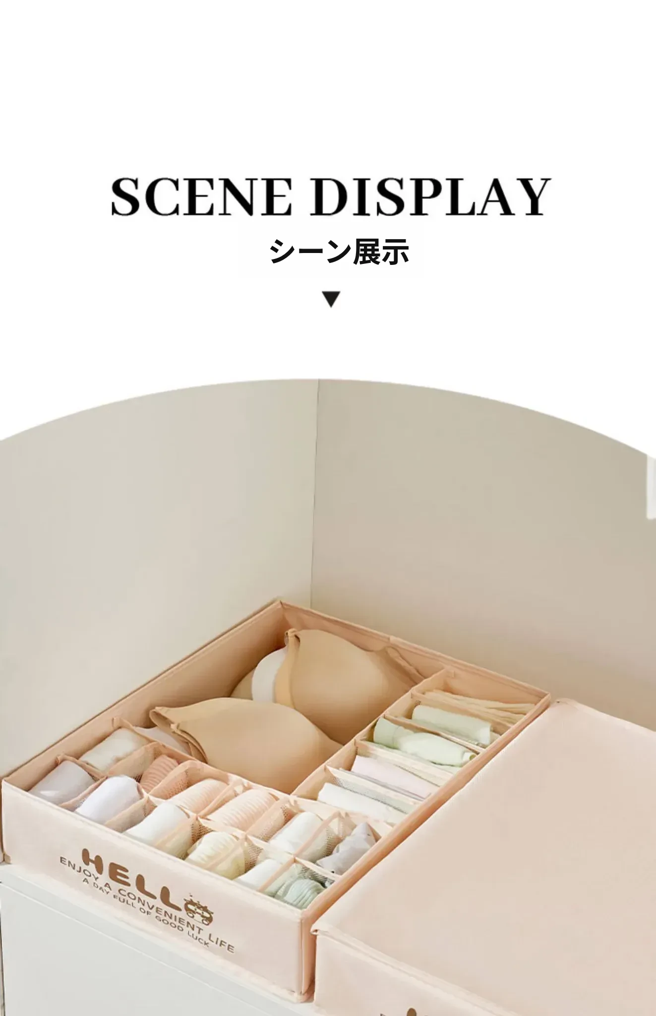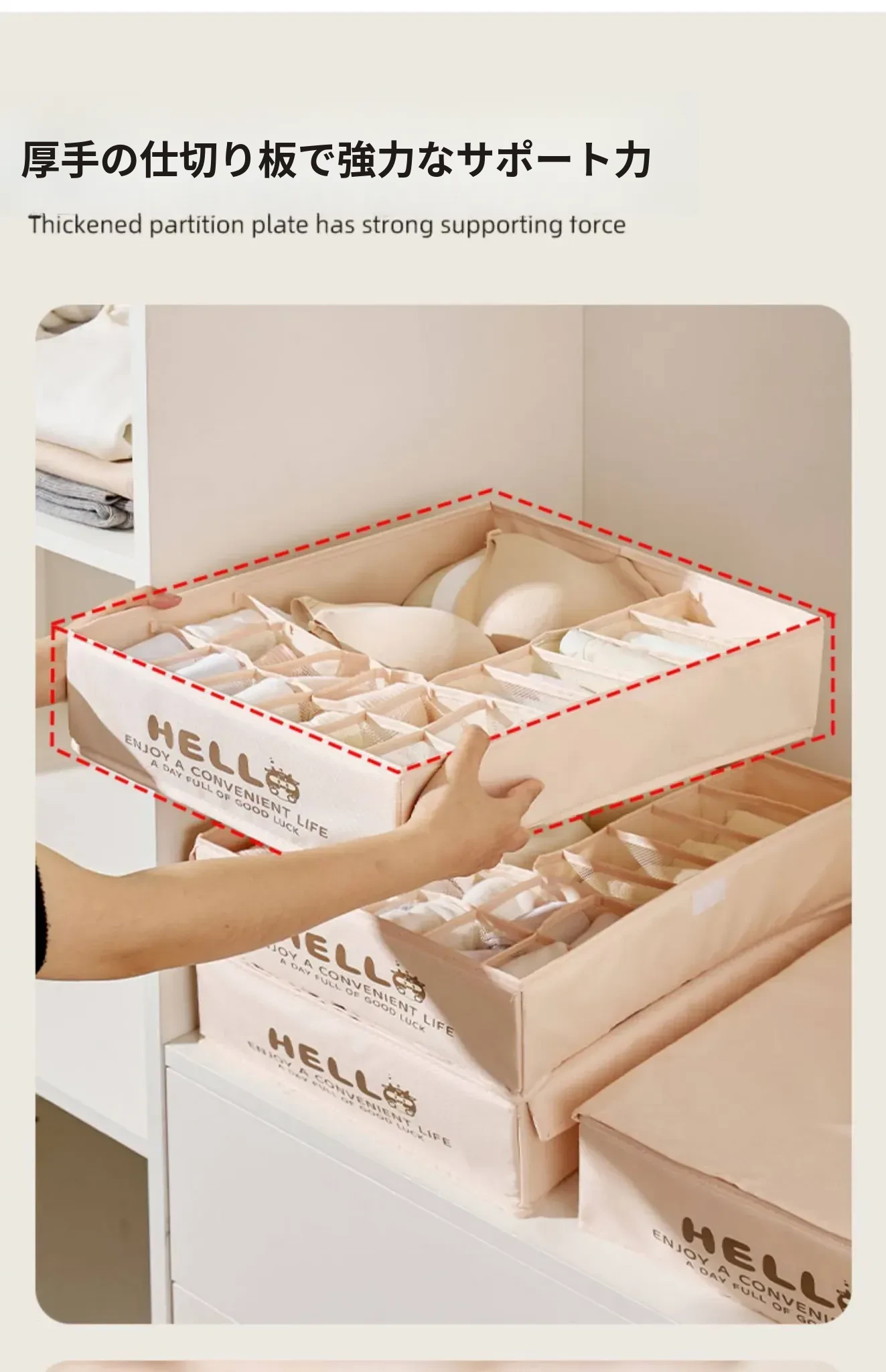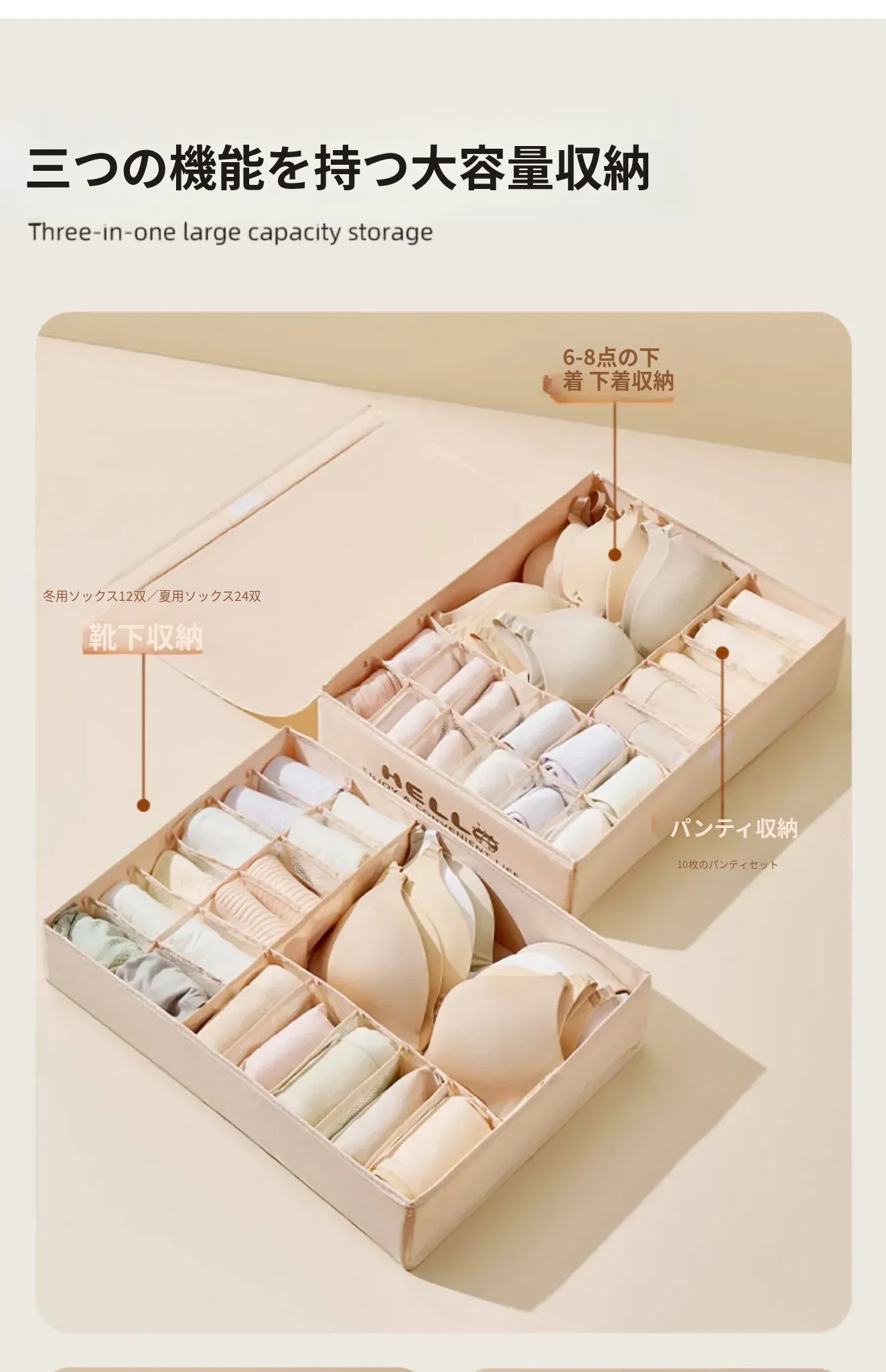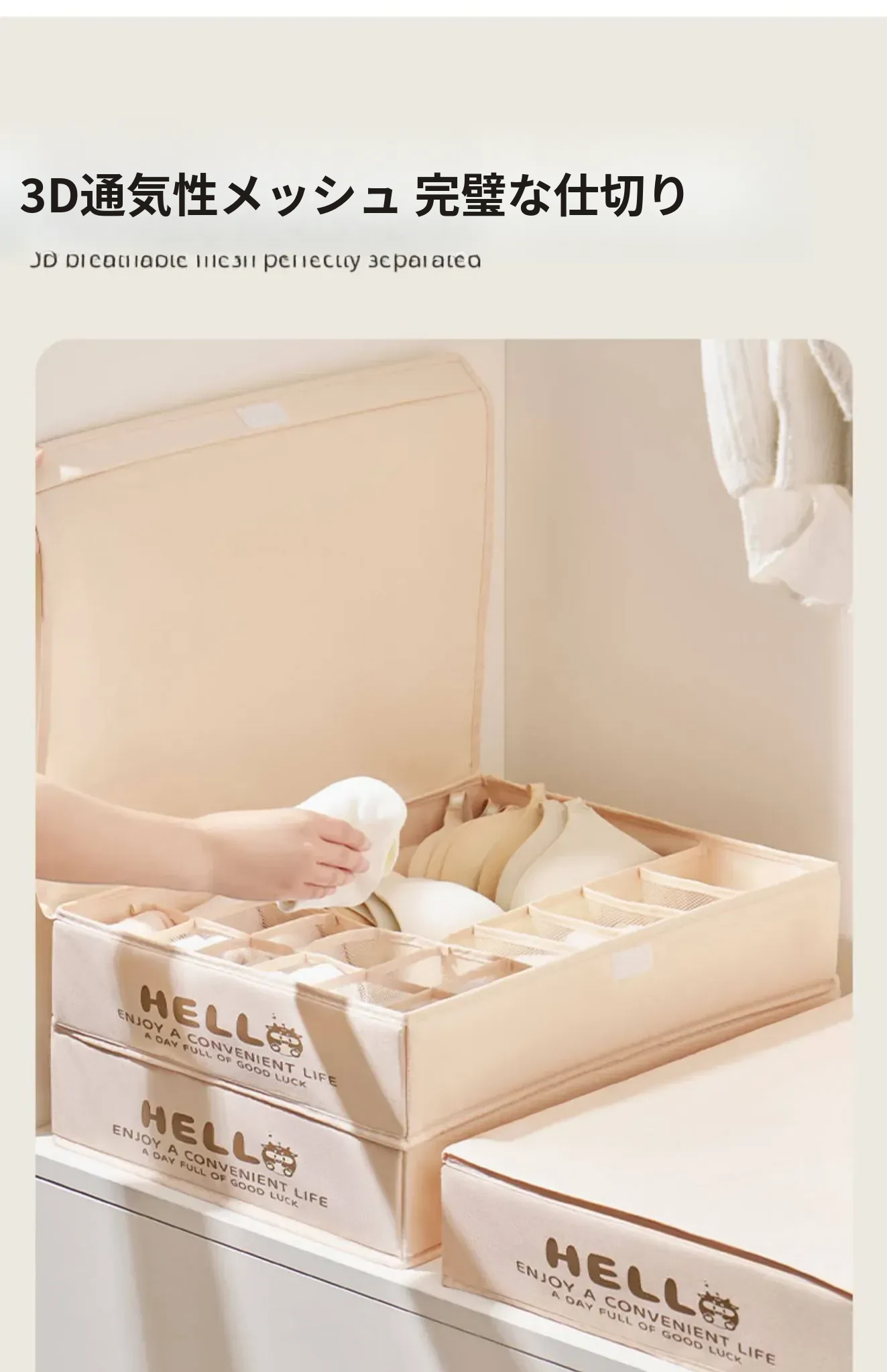 「3in1内衣収納ボックス - ブラジャー、パンティ、靴下をすっきり整理!家庭用の便利な仕切り付きで、あなたの大切な下着を美しく保管。スペースを有効活用し、毎日の選びやすさをアップ!」