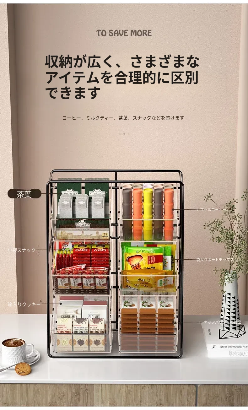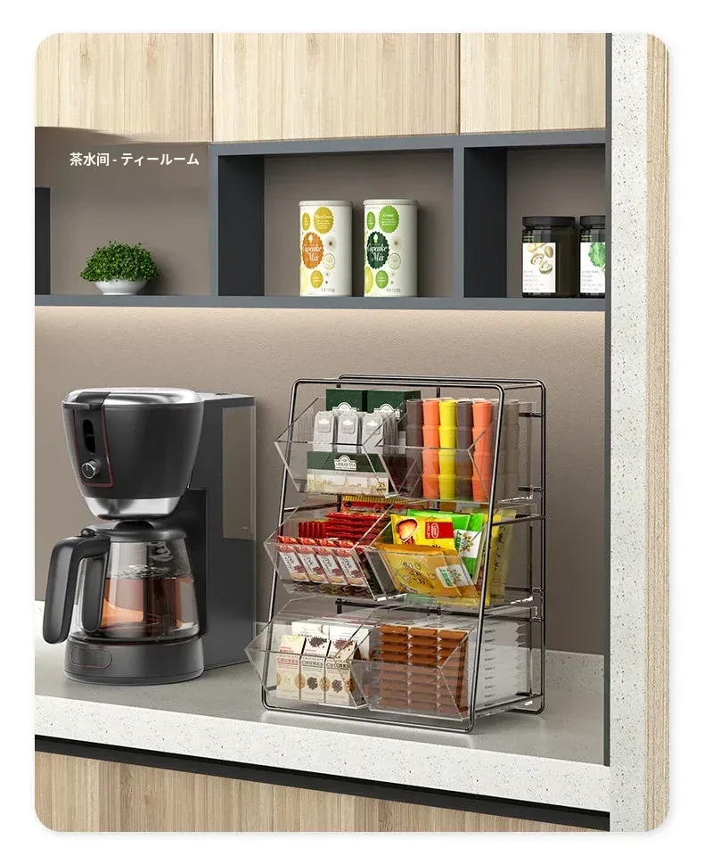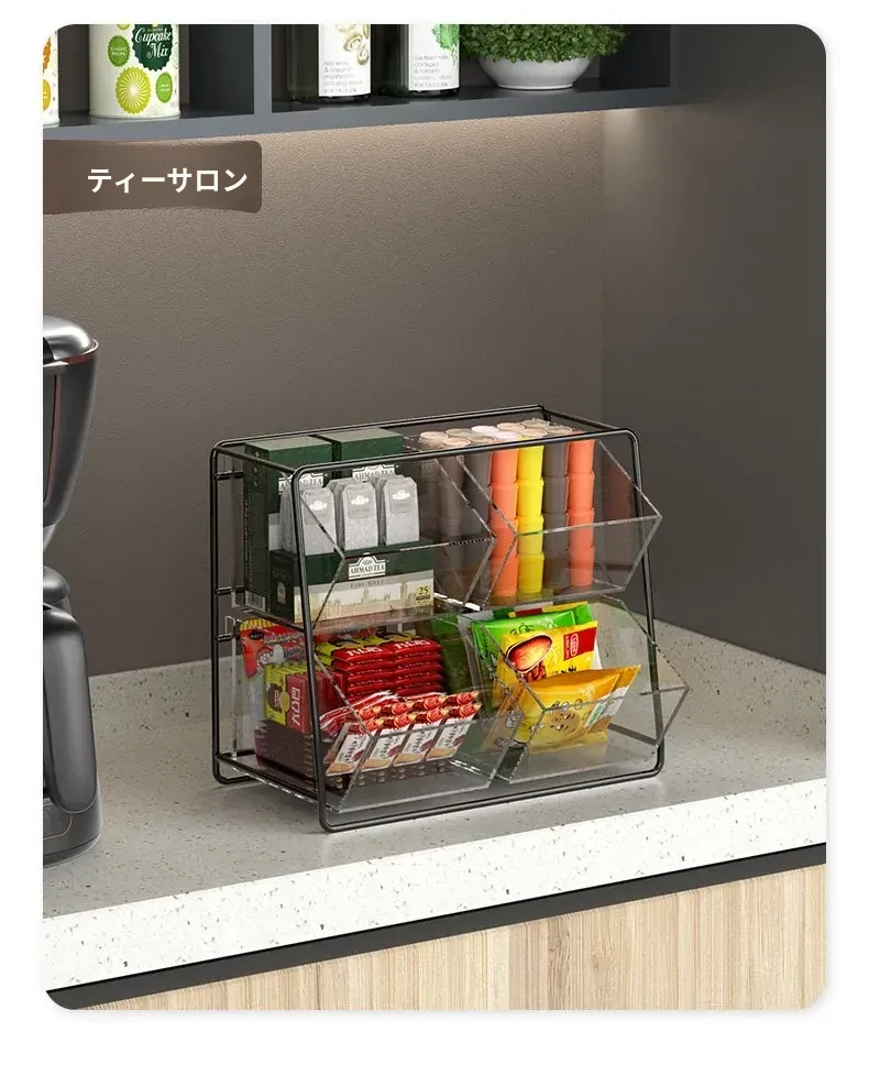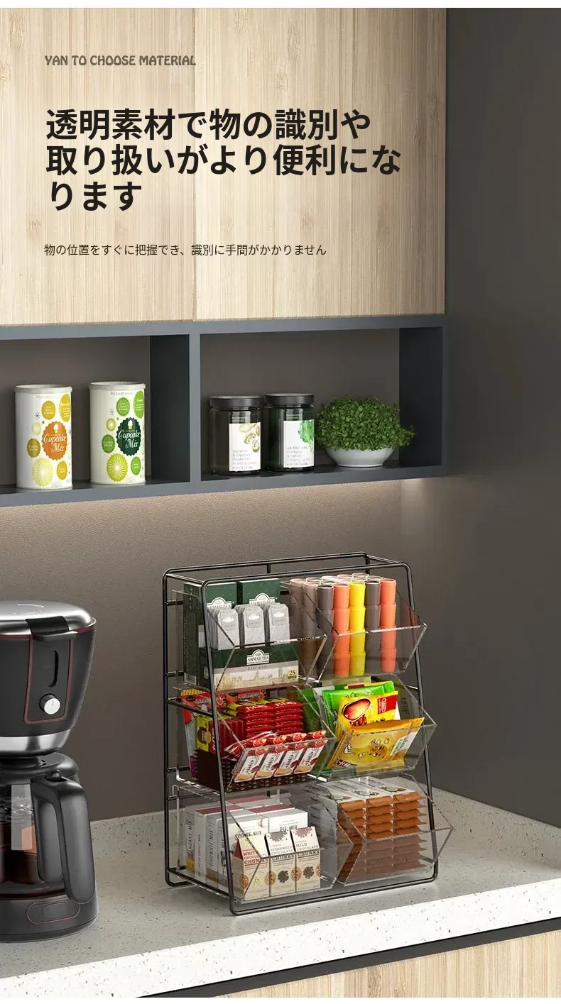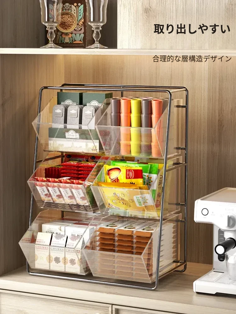 コーヒーカプセル収納ボックス アクリル製 ティーバッグディスプレイスタンド デスクオフィス用 おしゃれな茶水間バー台 コーヒー整理ラックで、スッキリとした空間を実現!