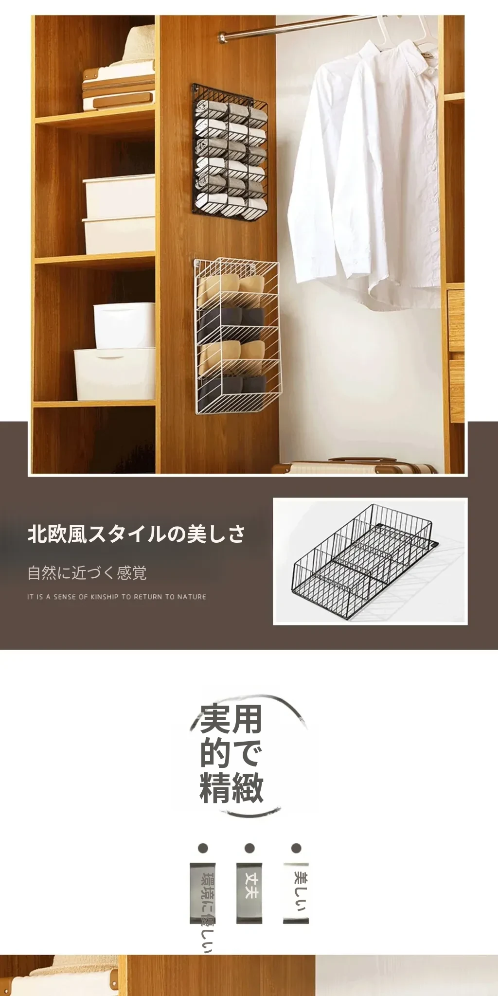 赤ちゃんのよだれかけ、下着や靴下を整理!壁掛け収納ラックでクローゼットもスッキリ。下着やブラジャー、靴下を簡単に収納できる、宿舎でも便利な神アイテム!
