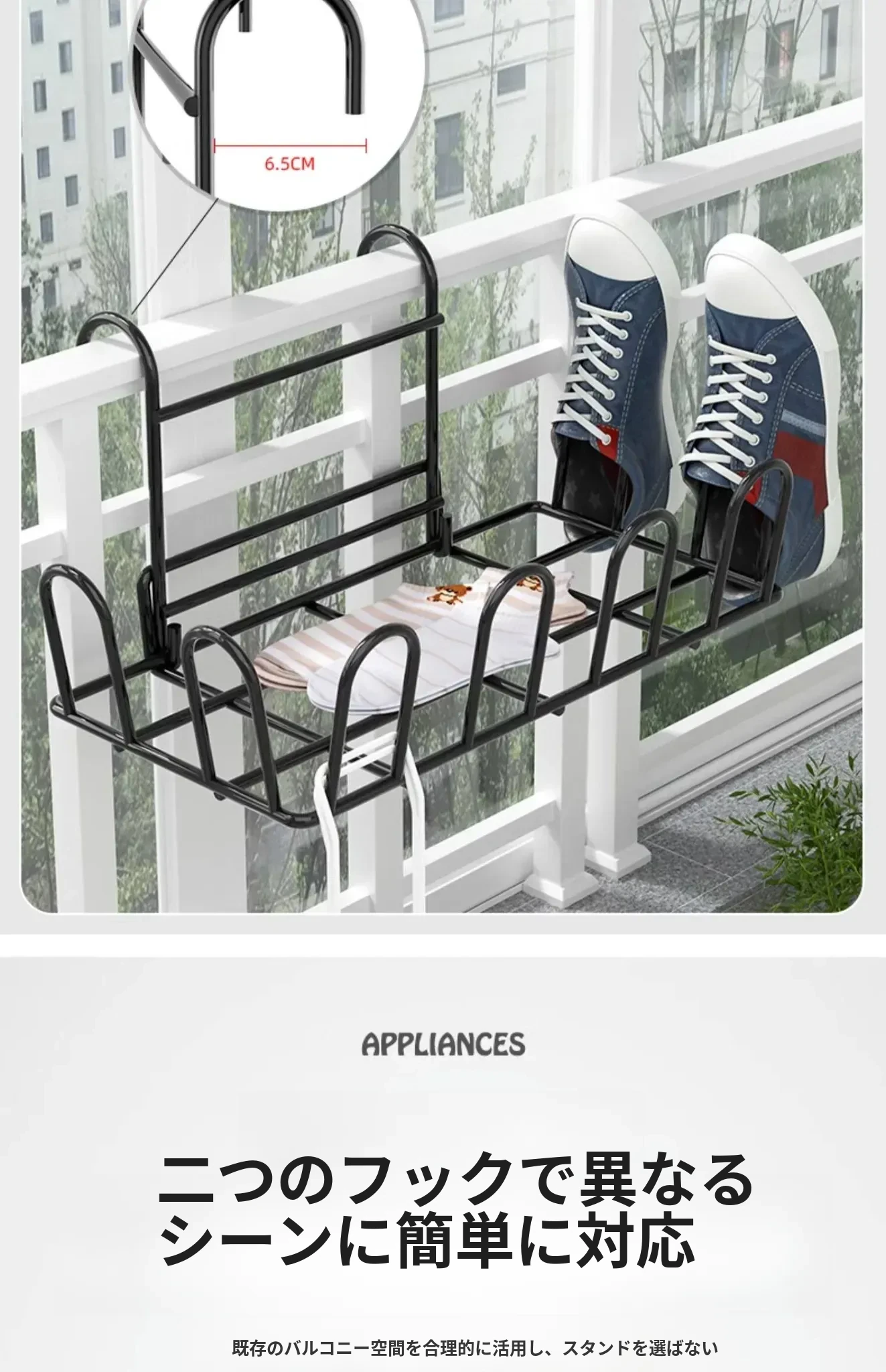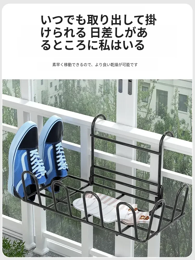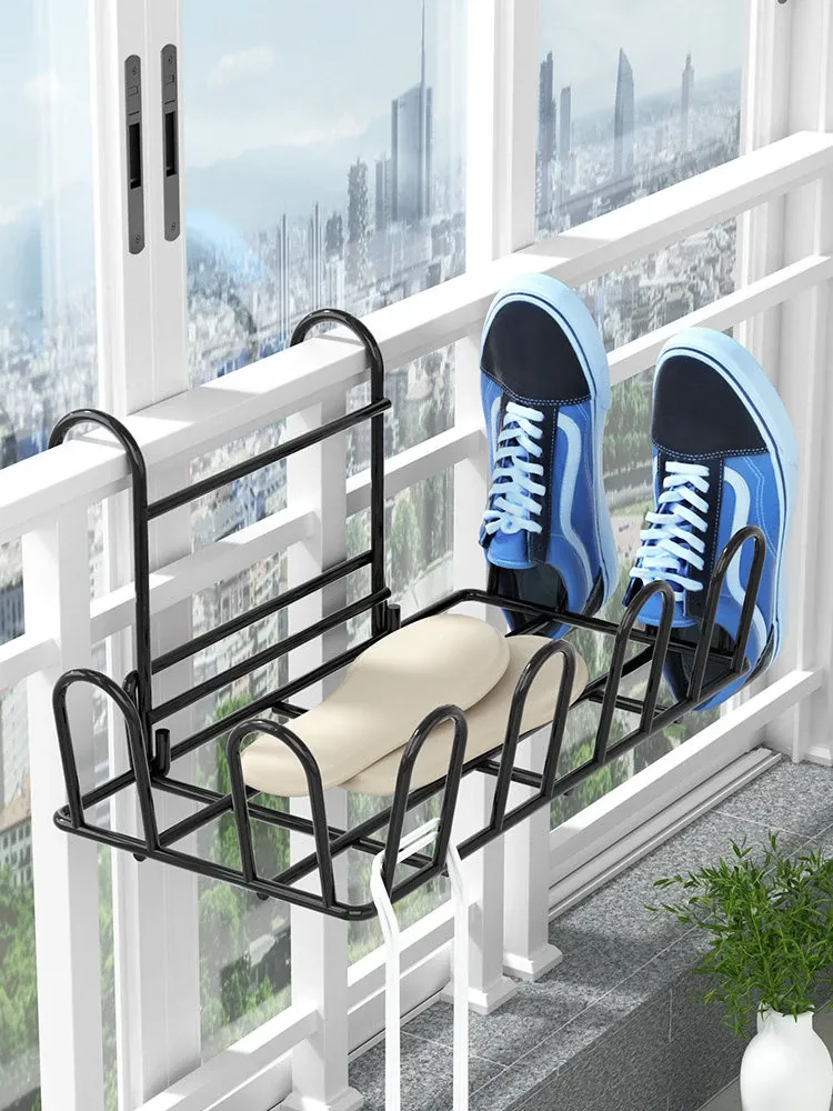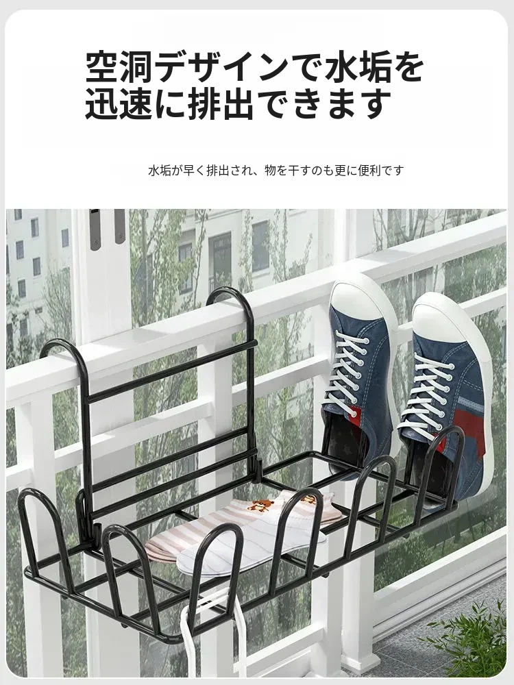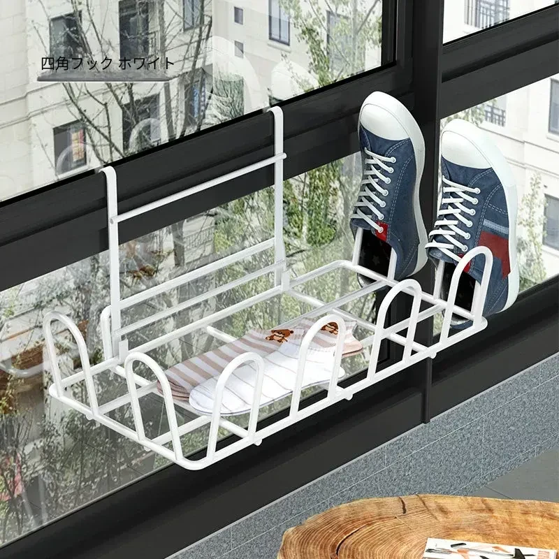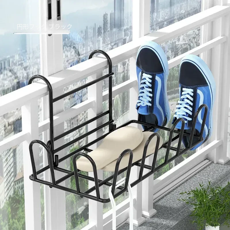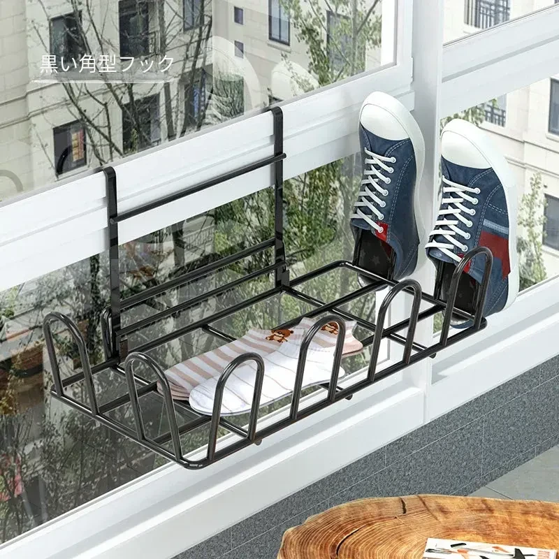 バルコニーのスペースを最大限に活用!靴を干すための便利な収納ラック、窓の外に設置できる衣類乾燥ラック。室外の物をすっきり整理できるサンダル干しラックで、日々の生活をもっと快適に!