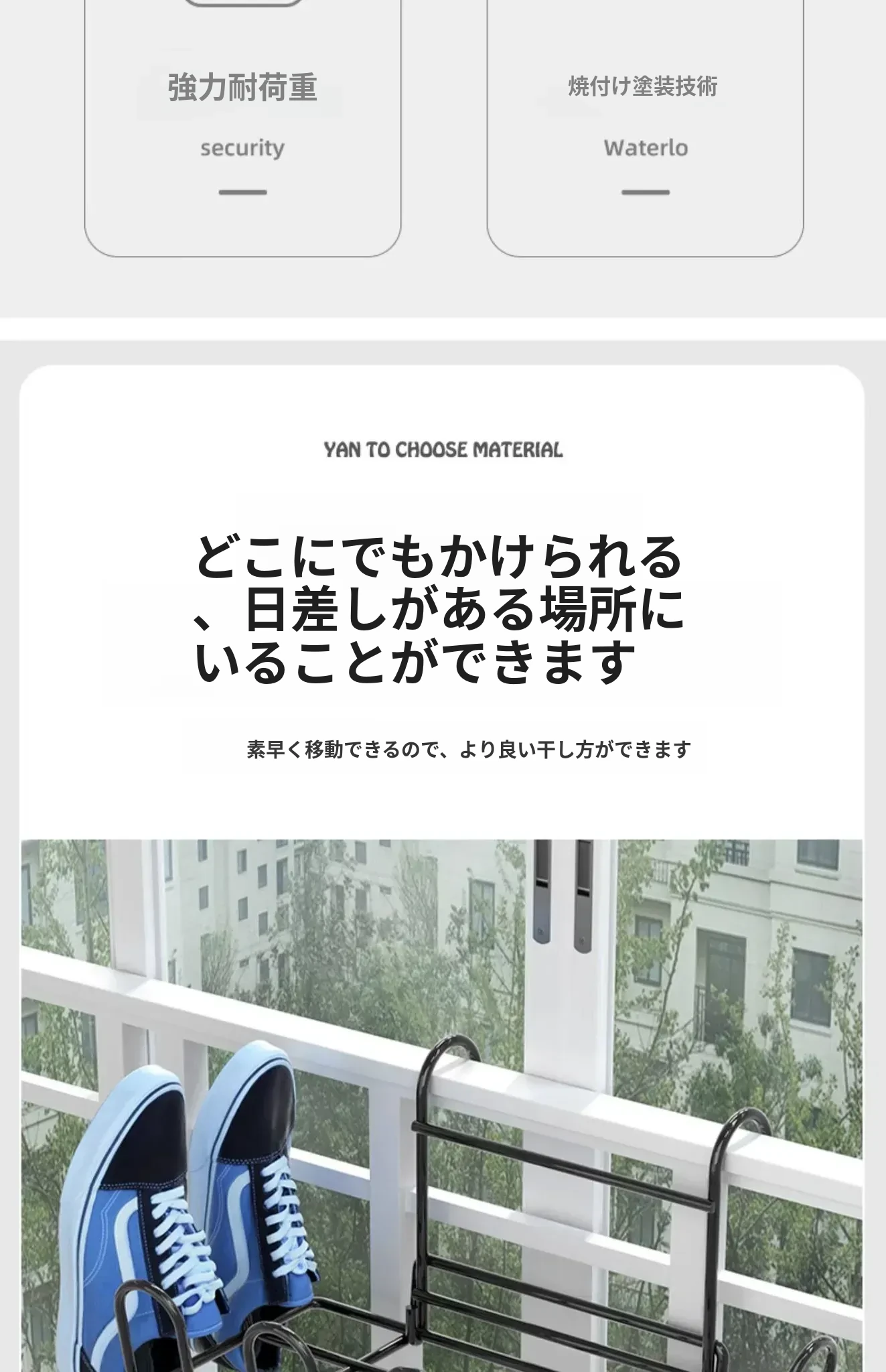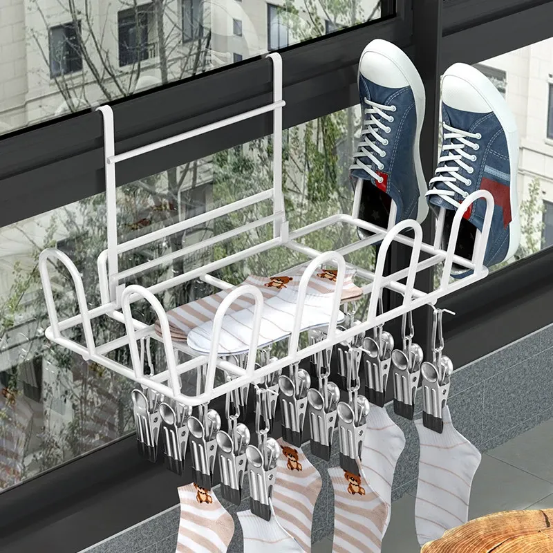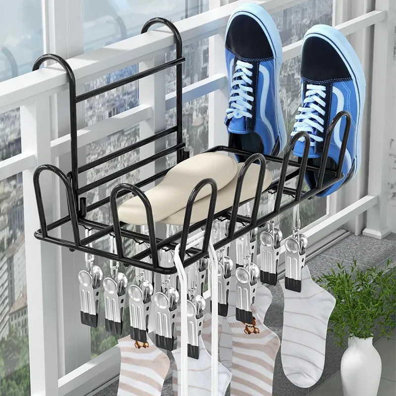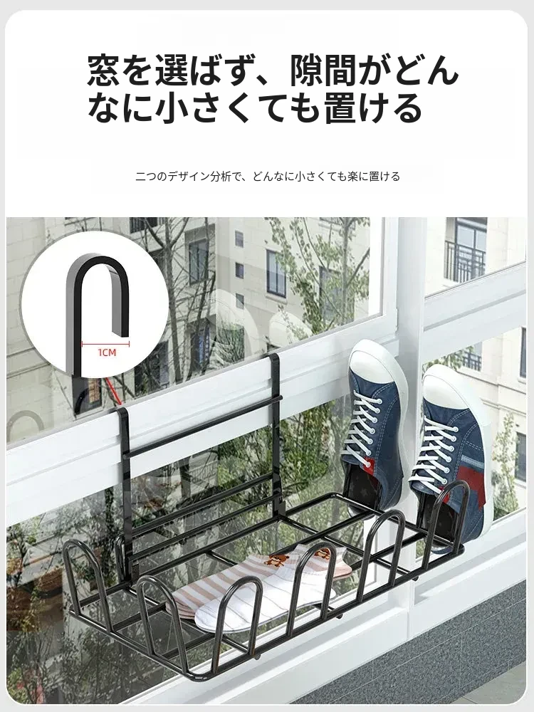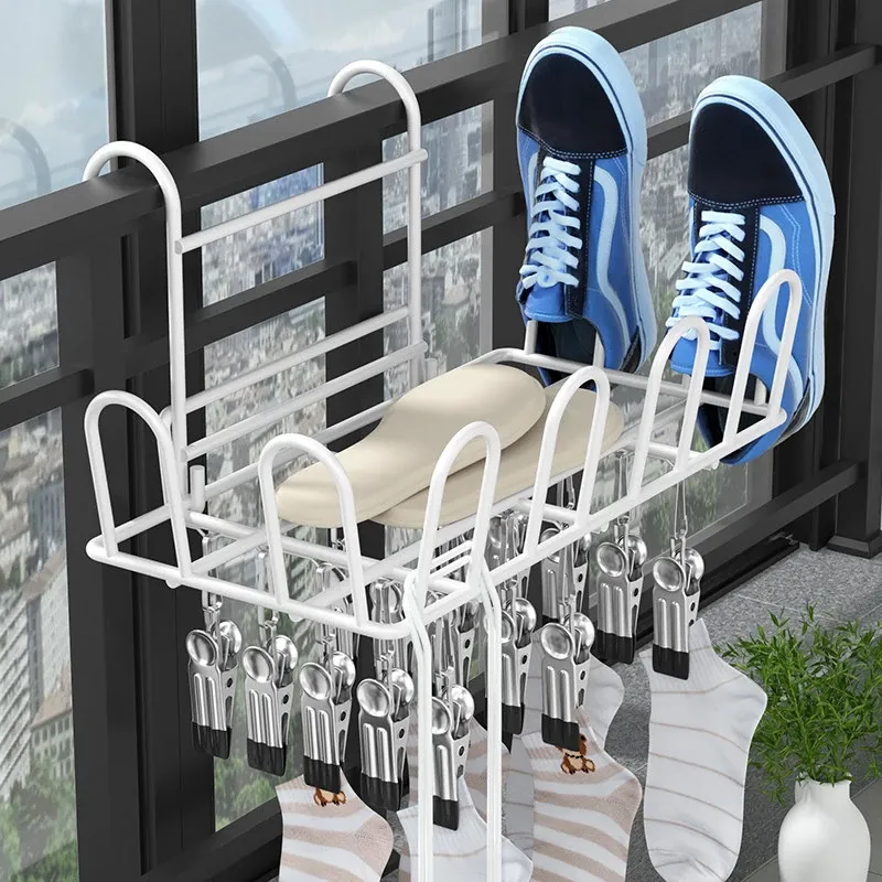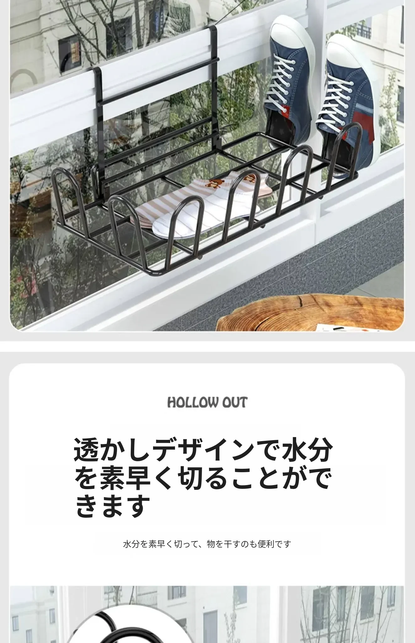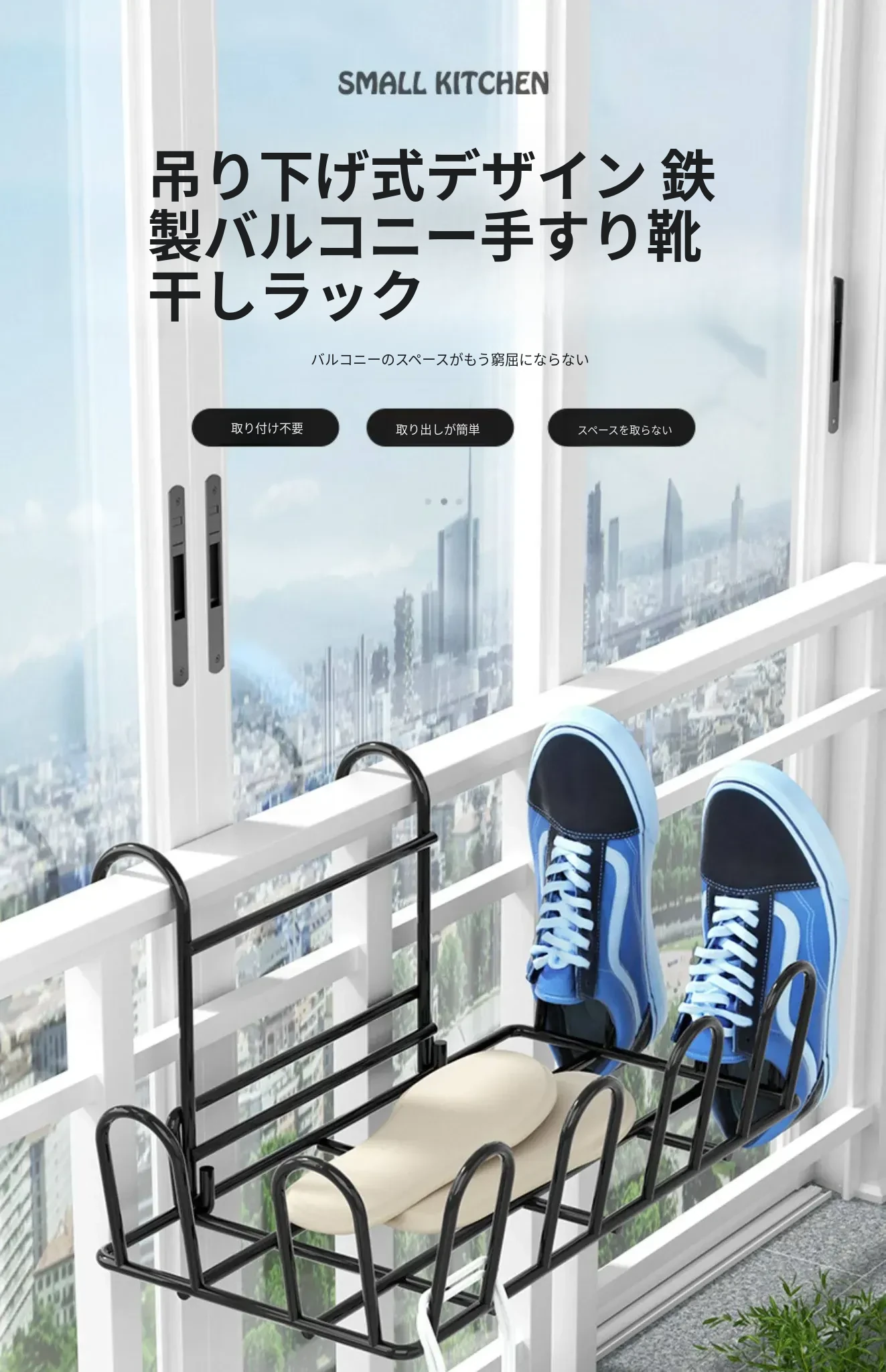バルコニーのスペースを最大限に活用!靴を干すための便利な収納ラック、窓の外に設置できる衣類乾燥ラック。室外の物をすっきり整理できるサンダル干しラックで、日々の生活をもっと快適に!