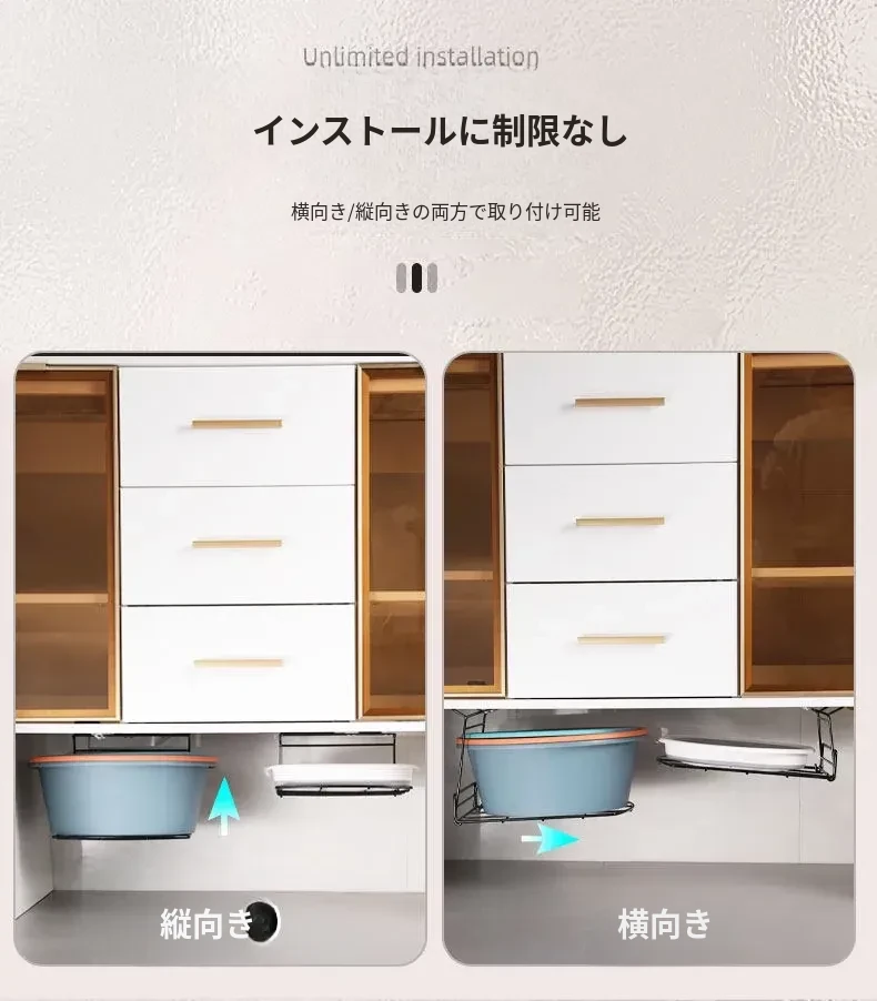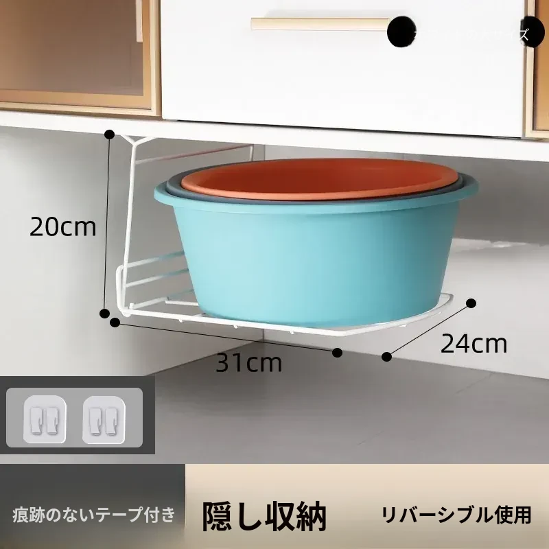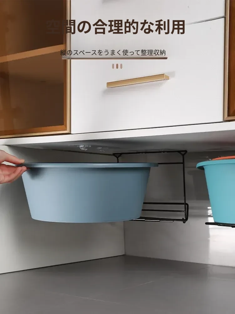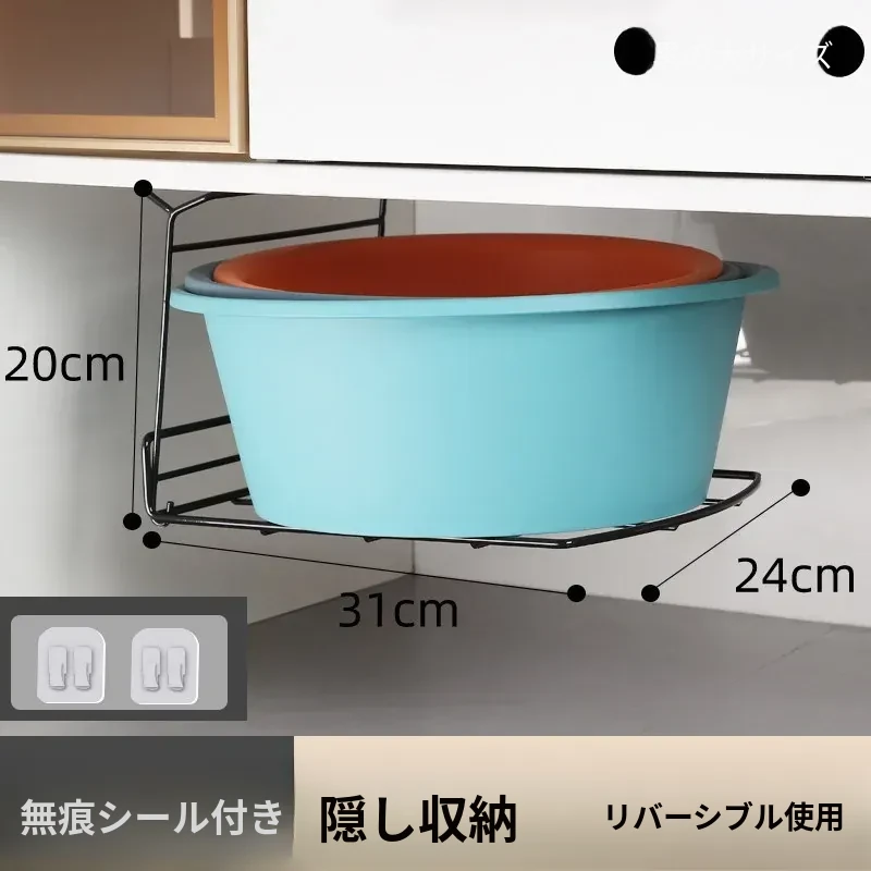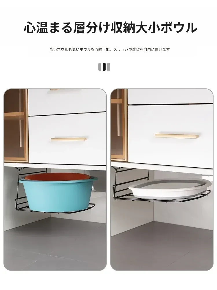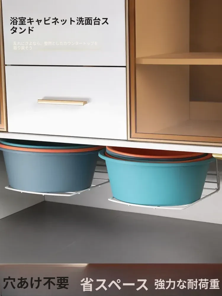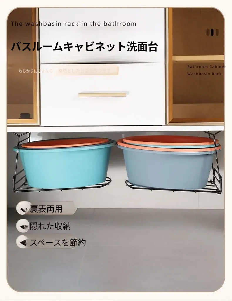バスルーム用洗面台下シンクラック - スペースを最大限に活用する吊り下げ式洗面ボウル収納ラック!洗面所をスッキリ整頓し、使いやすさをアップ!