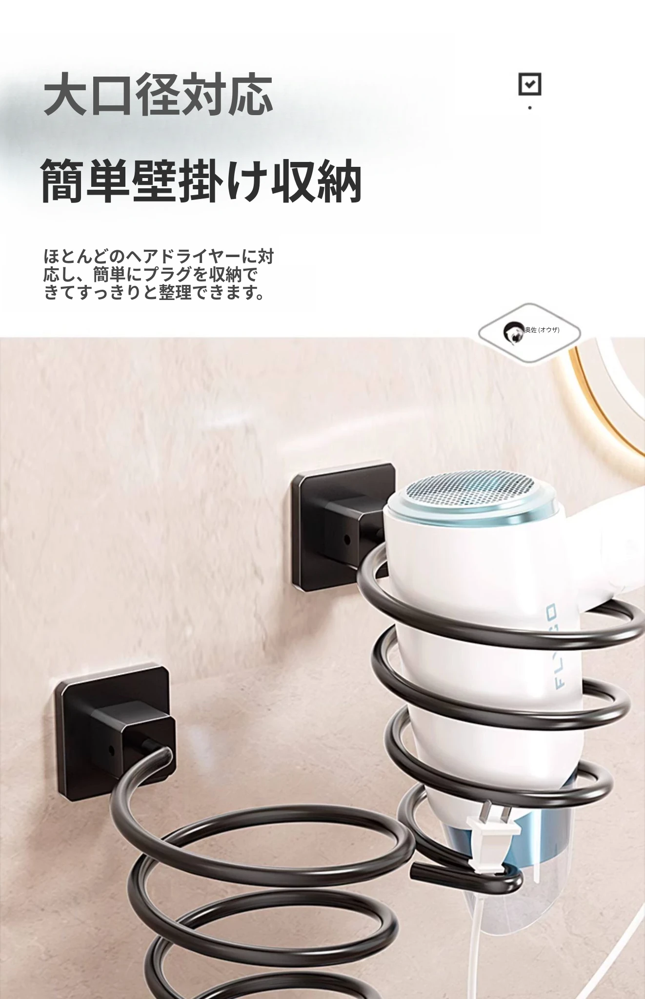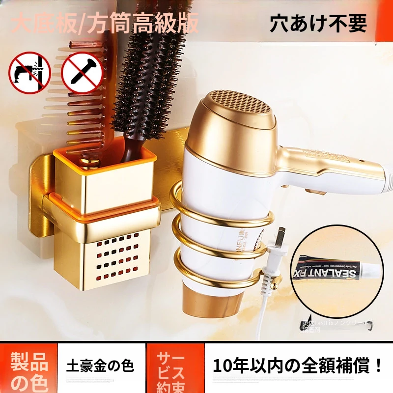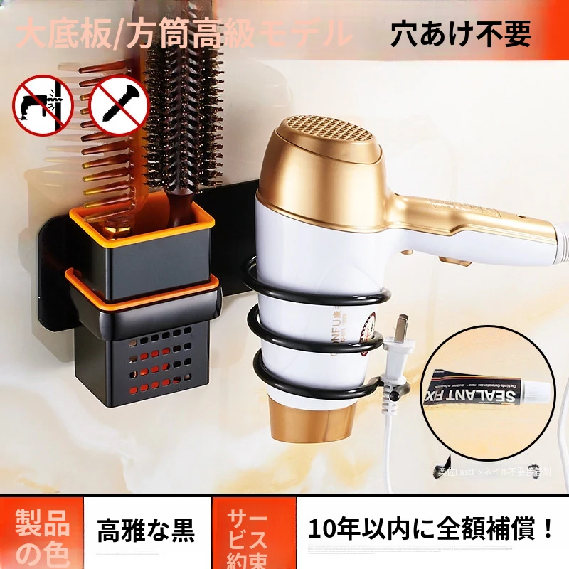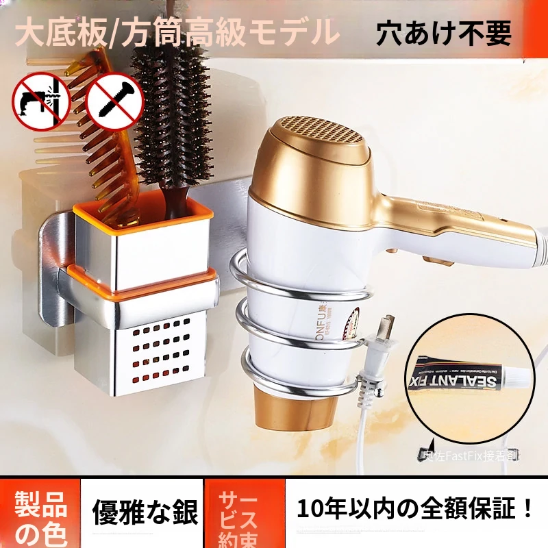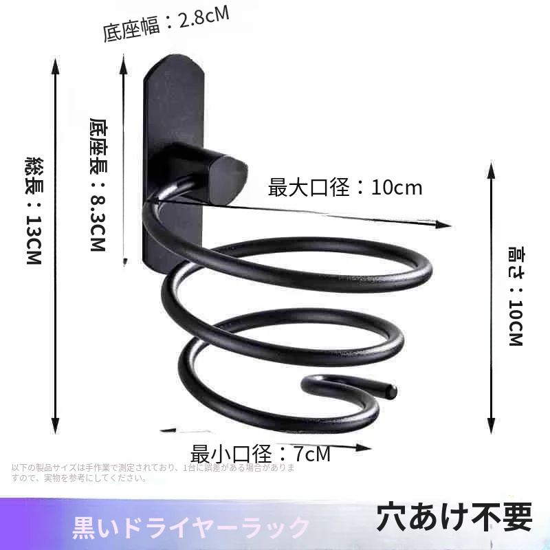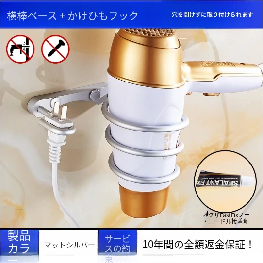 【特価セール】穴なし取り付け可能!スタイリッシュな壁掛けヘアドライヤーラック - バスルームや洗面所の整理整頓に最適な収納アイテム!