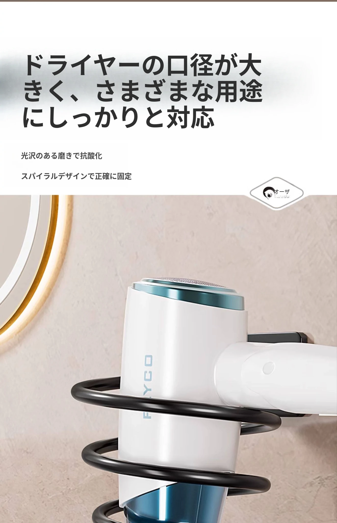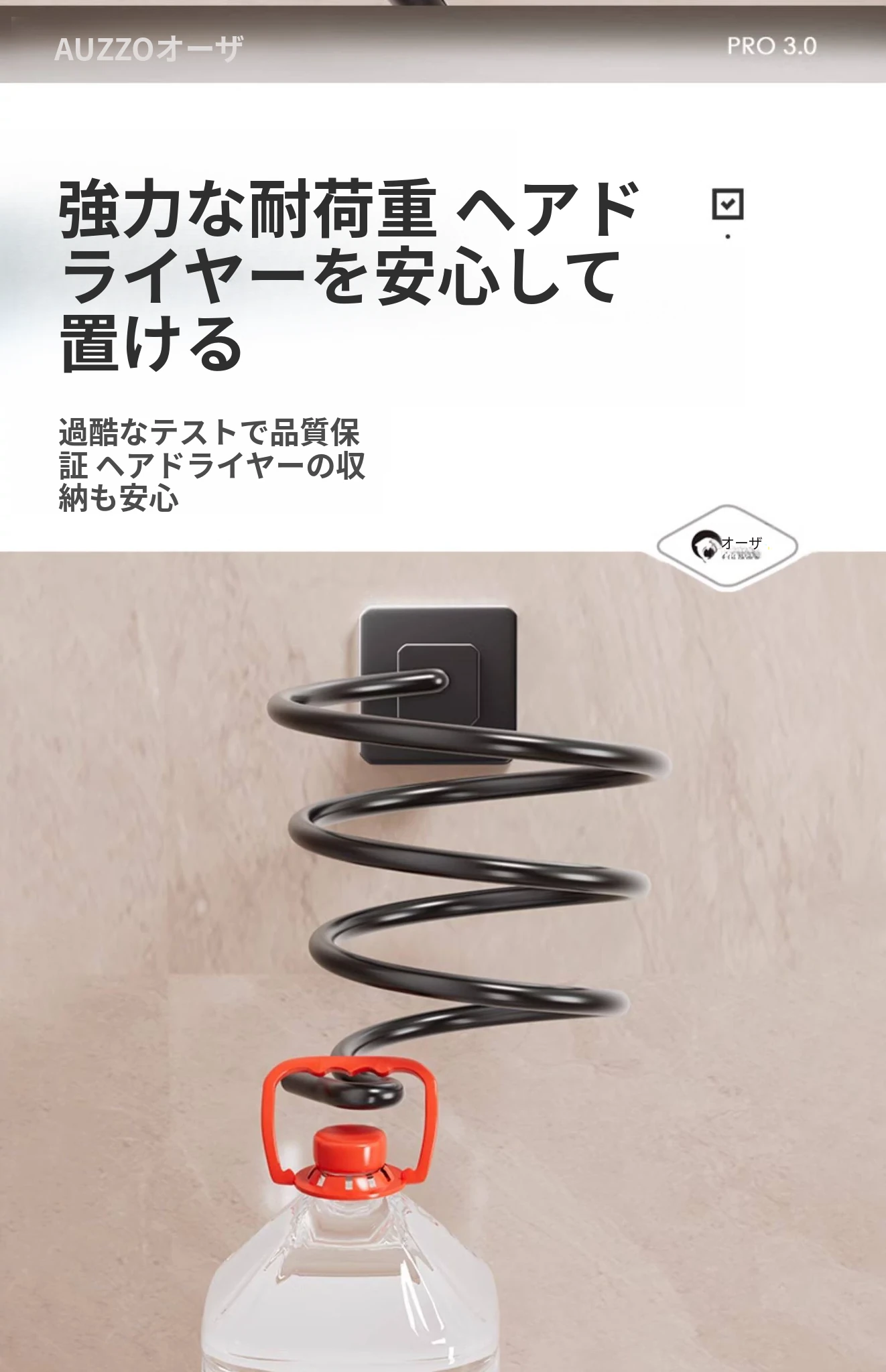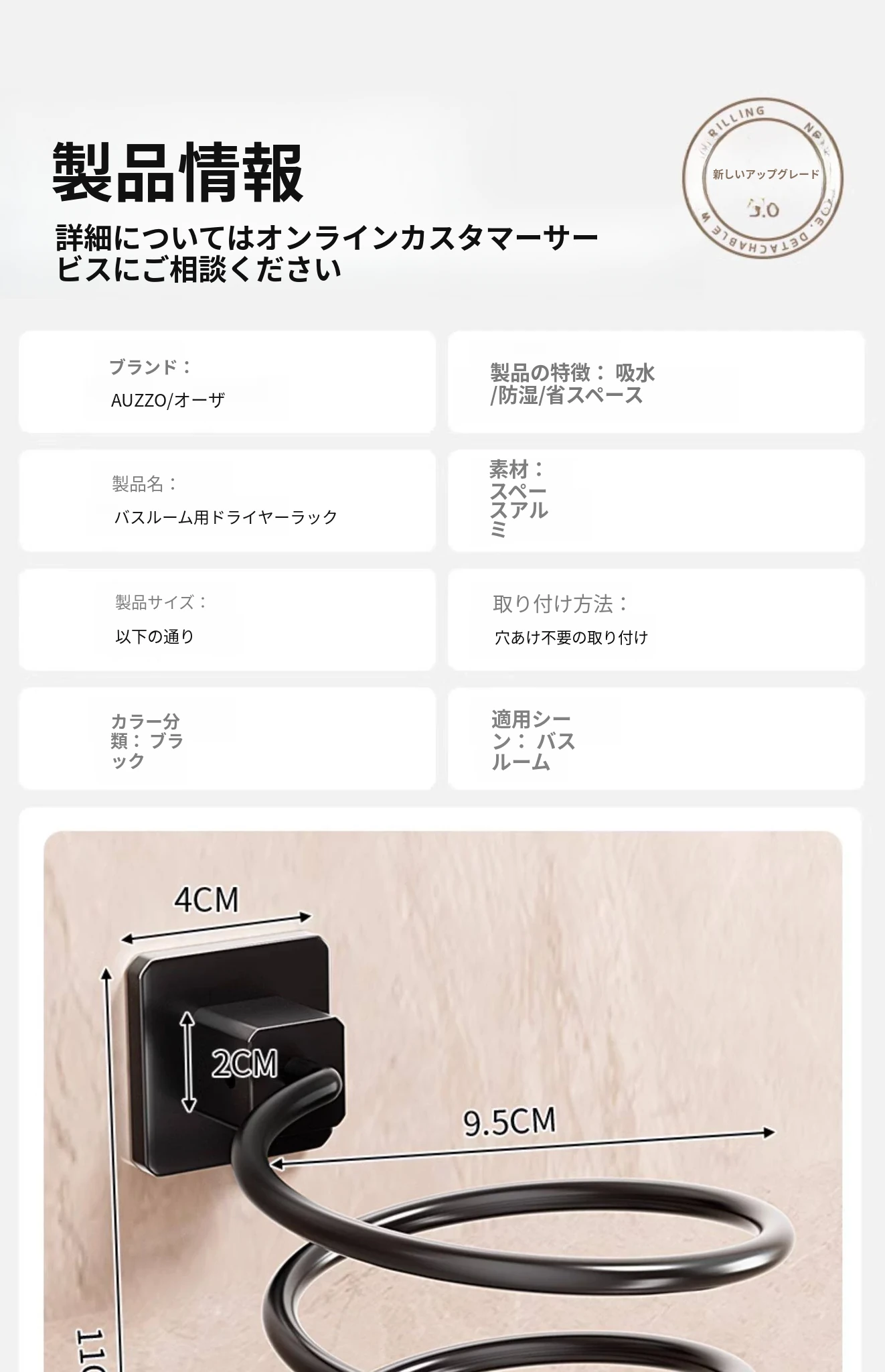 【特価セール】穴なし取り付け可能!スタイリッシュな壁掛けヘアドライヤーラック - バスルームや洗面所の整理整頓に最適な収納アイテム!
