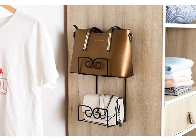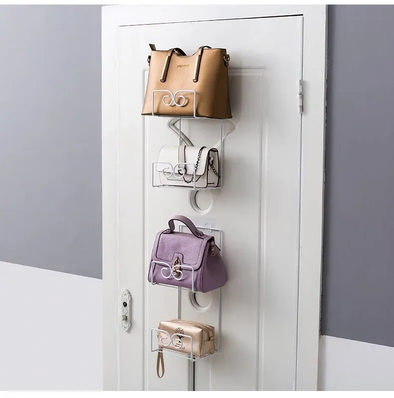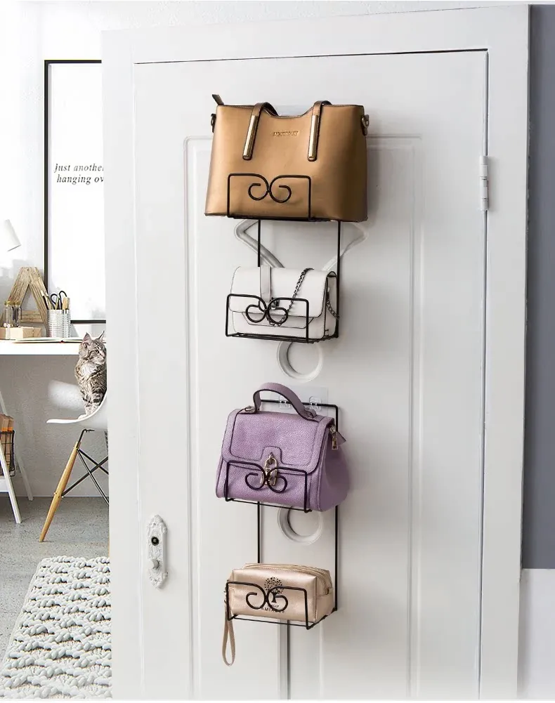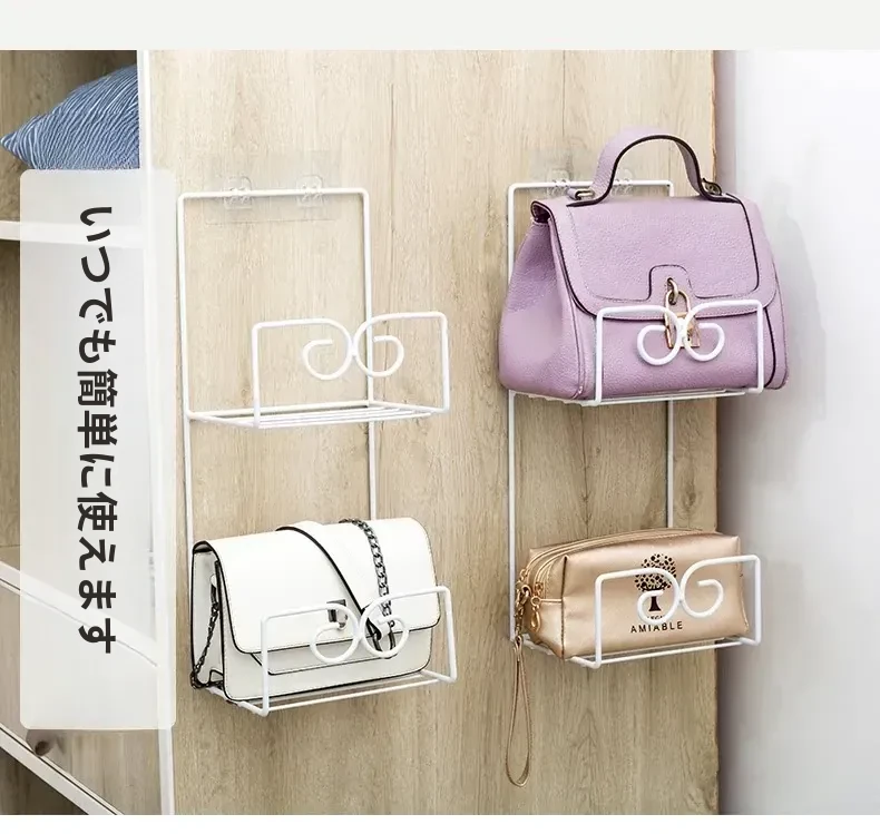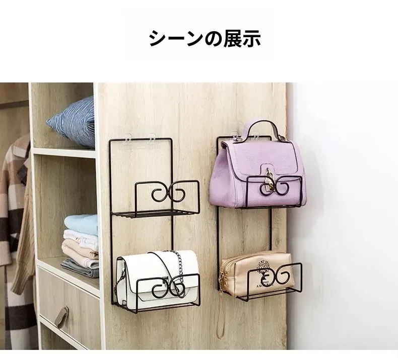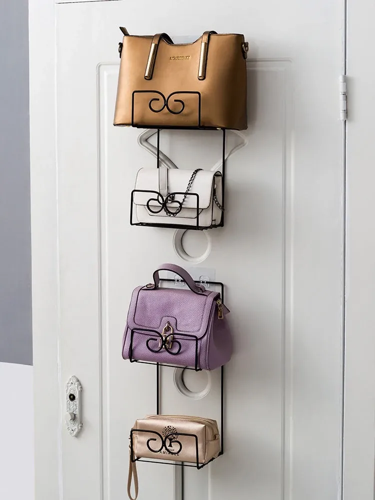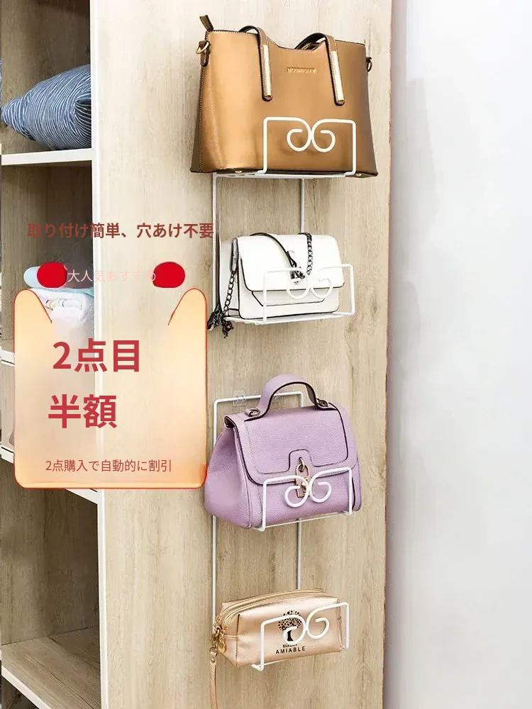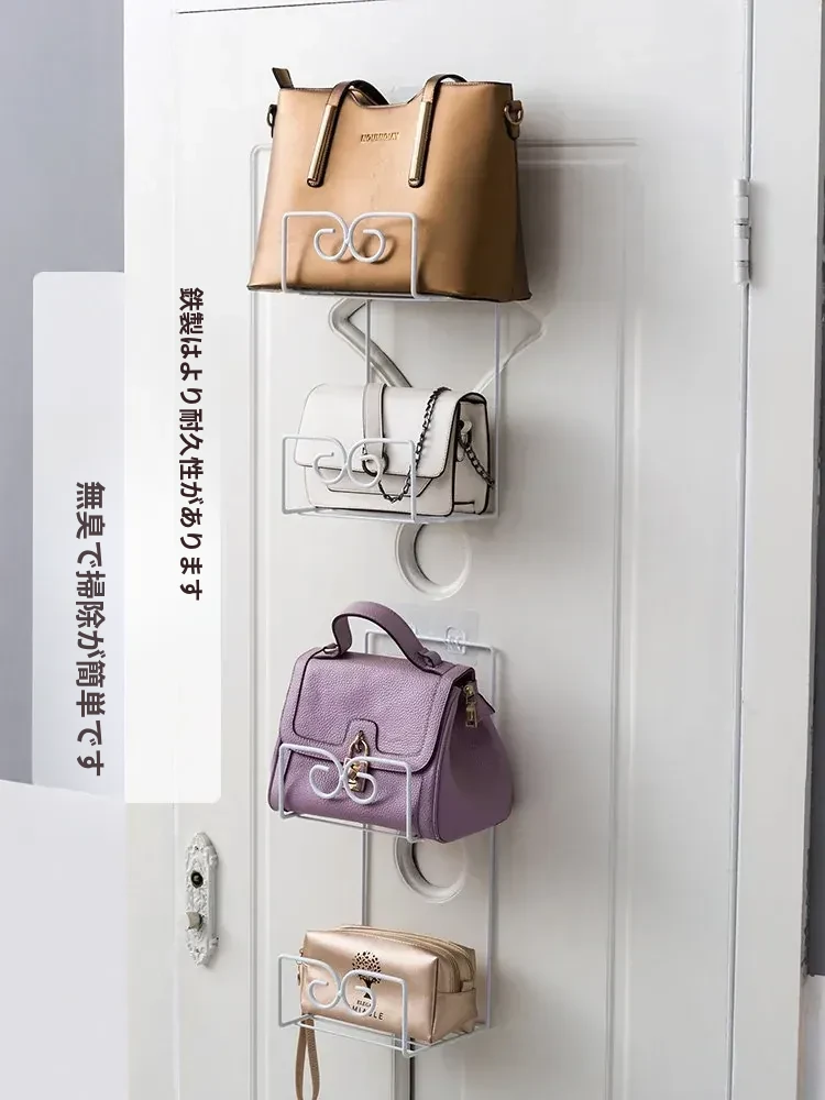 ドアの後ろに置けるバッグ収納ラック!多層壁面デザインで、クリエイティブなバッグ収納ポケットも完備。おしゃれで便利なクローゼットオーガナイザー、あなたの部屋をスッキリ整頓!