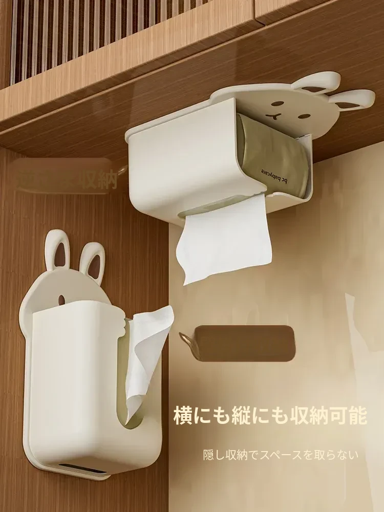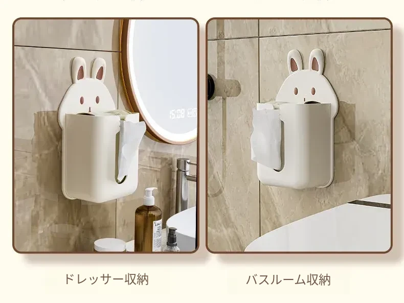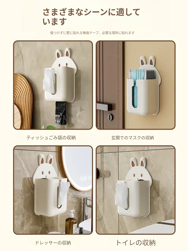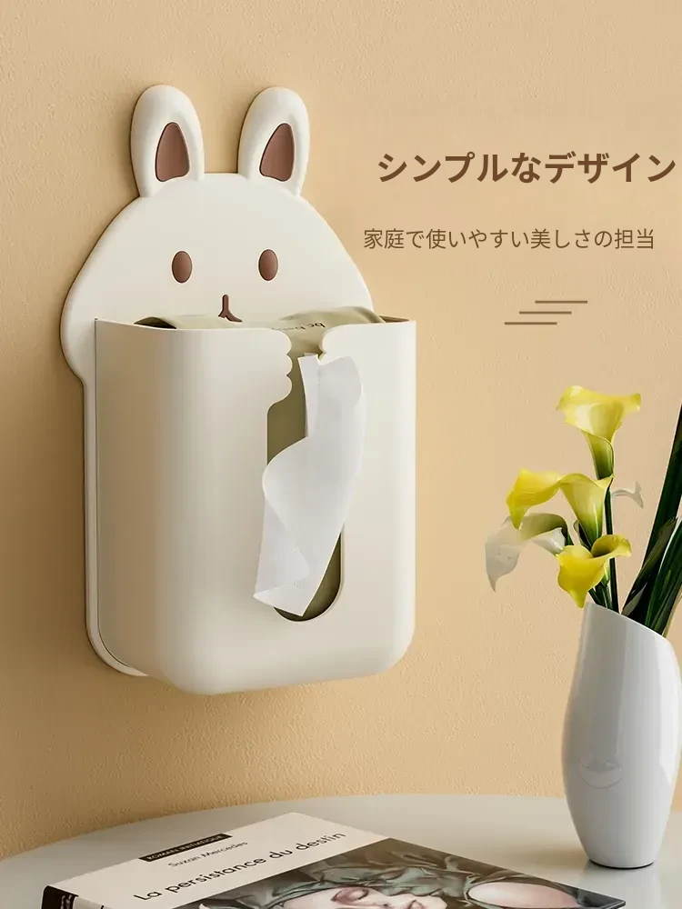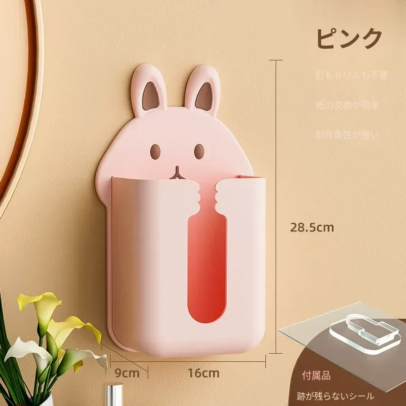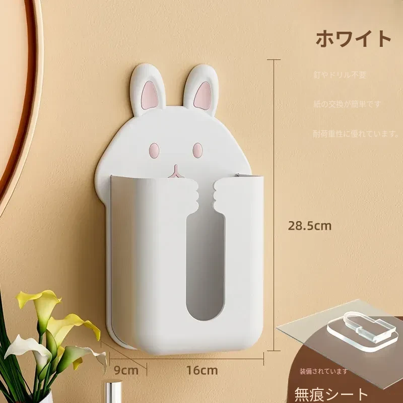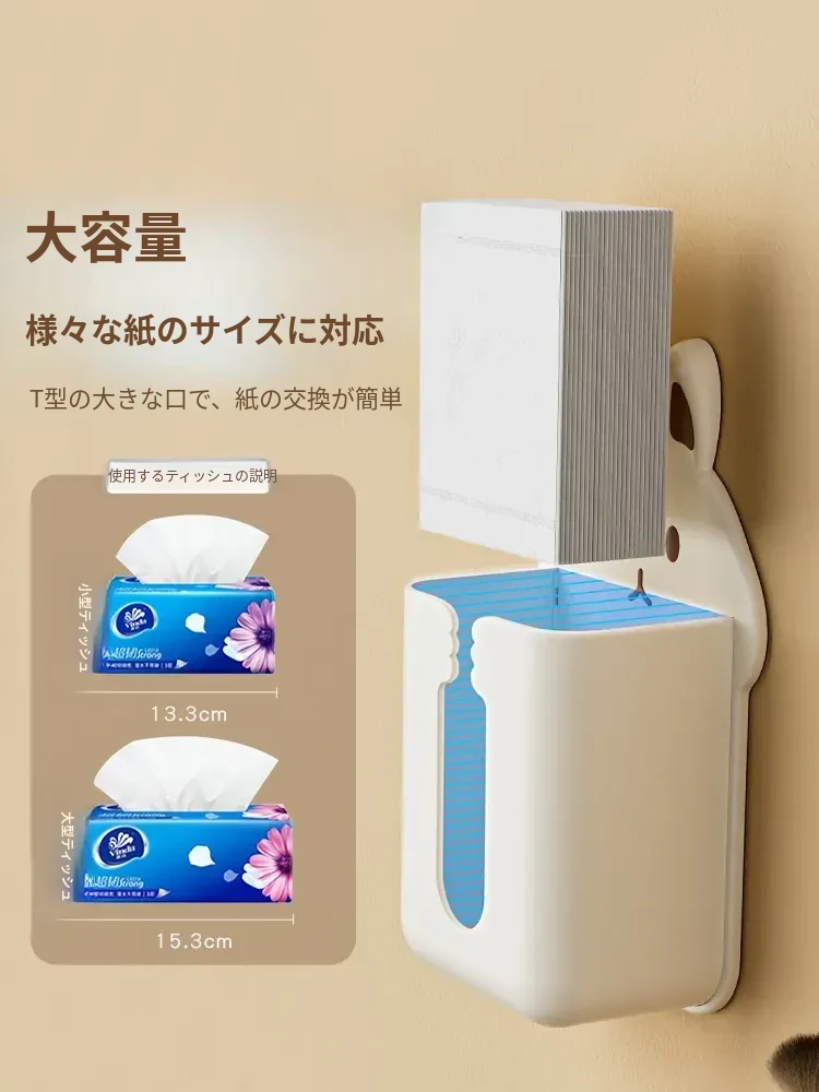 かわいいキャラクターのティッシュボックス!壁掛け式洗顔タオル収納ボックス、トイレやキッチンに最適。逆さにして使えるティッシュホルダーで、スペースを有効活用しながらおしゃれに!