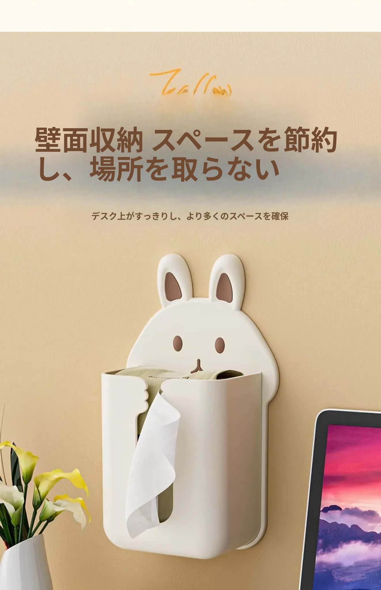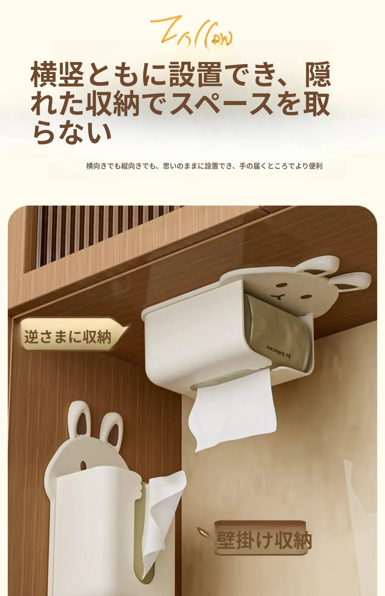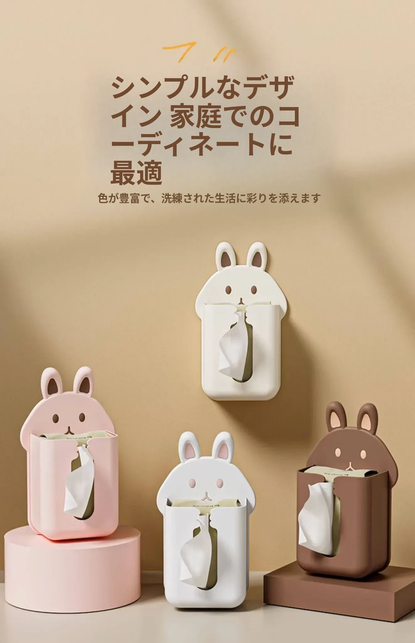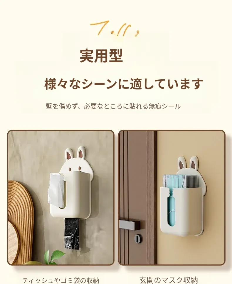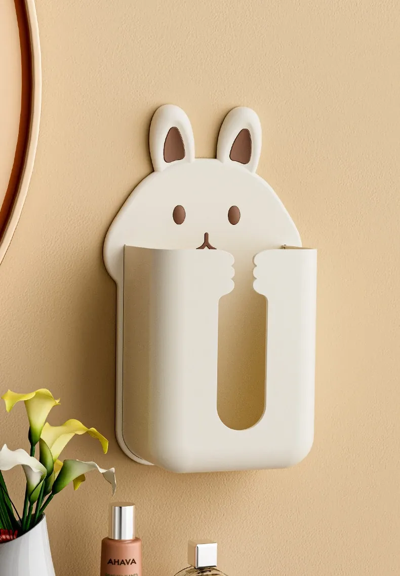 かわいいキャラクターのティッシュボックス!壁掛け式洗顔タオル収納ボックス、トイレやキッチンに最適。逆さにして使えるティッシュホルダーで、スペースを有効活用しながらおしゃれに!