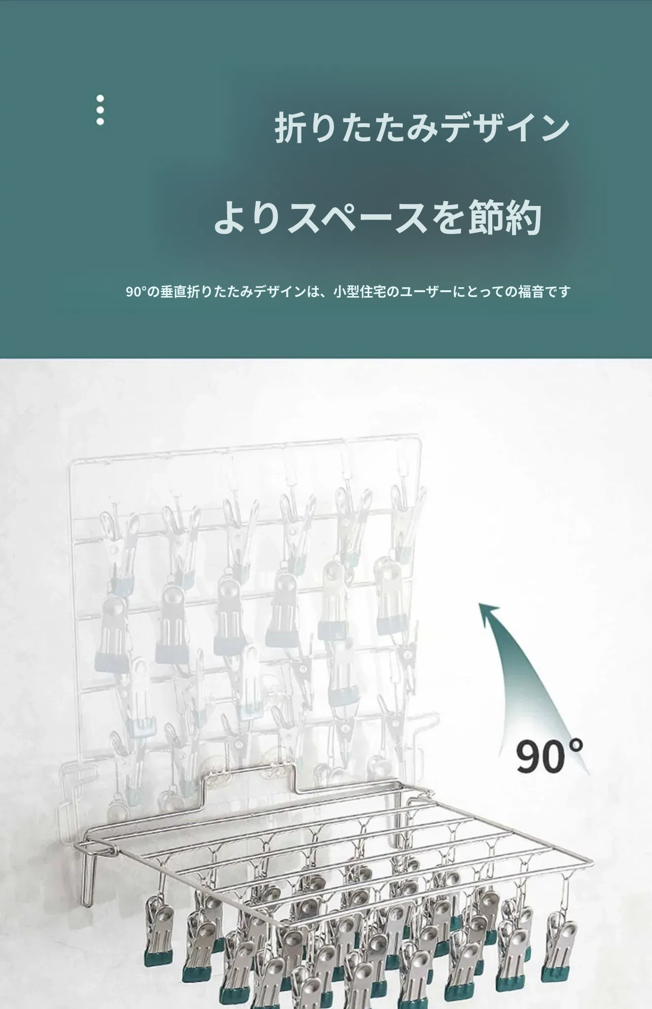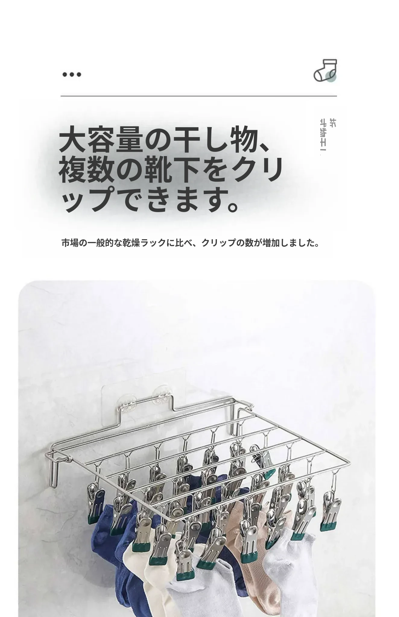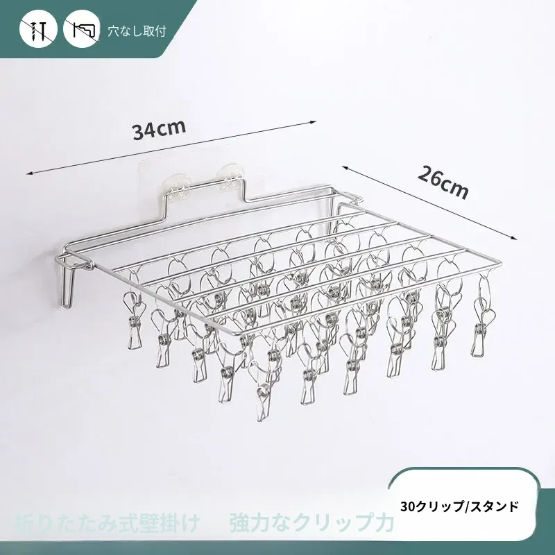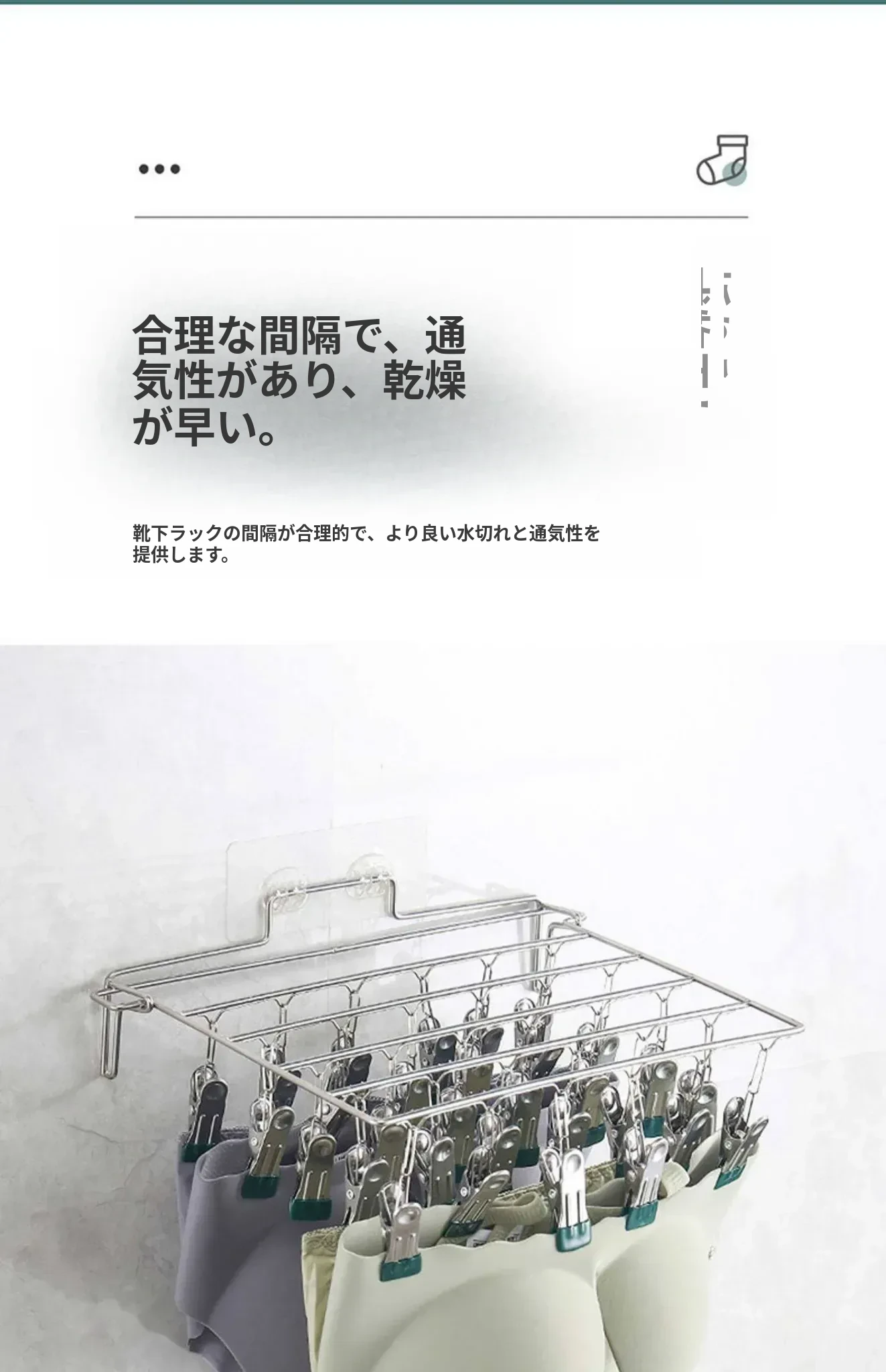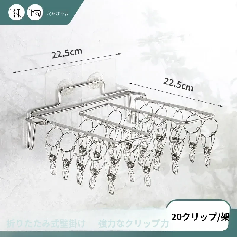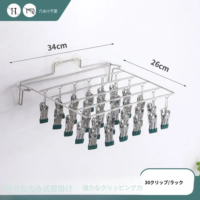 折りたたみ式衣類干しラック - 多機能クリップ付き!壁掛けで便利な靴下干しの必需品!家用バルコニーでの風対策もバッチリ。下着や赤ちゃんの靴下も安心して干せます!