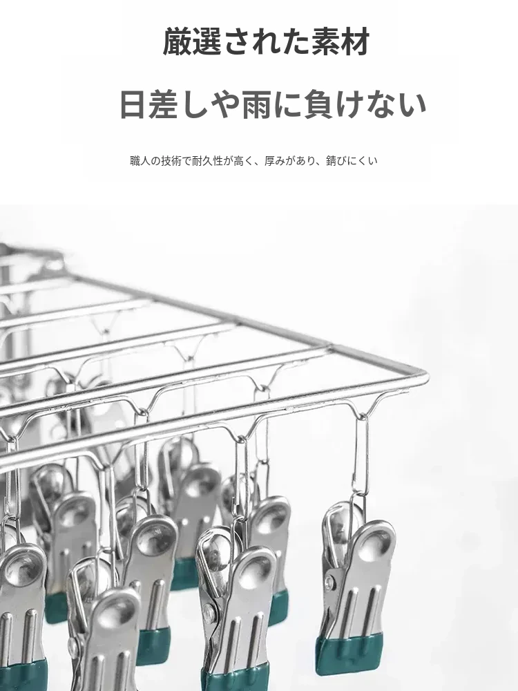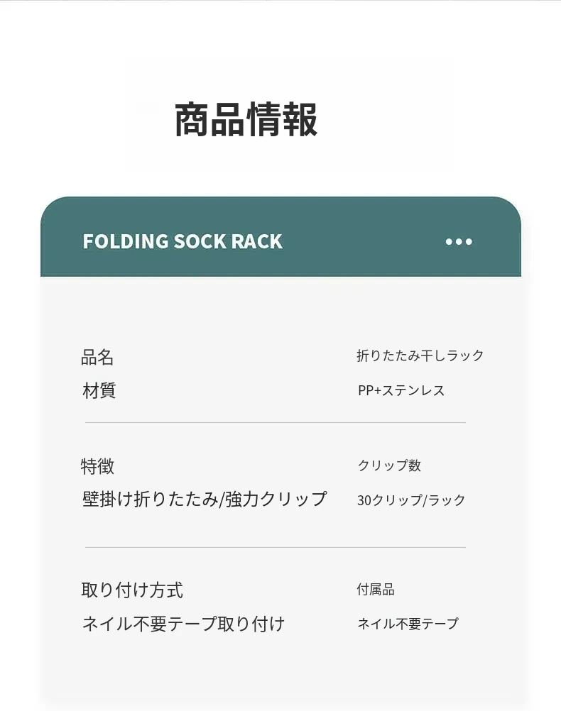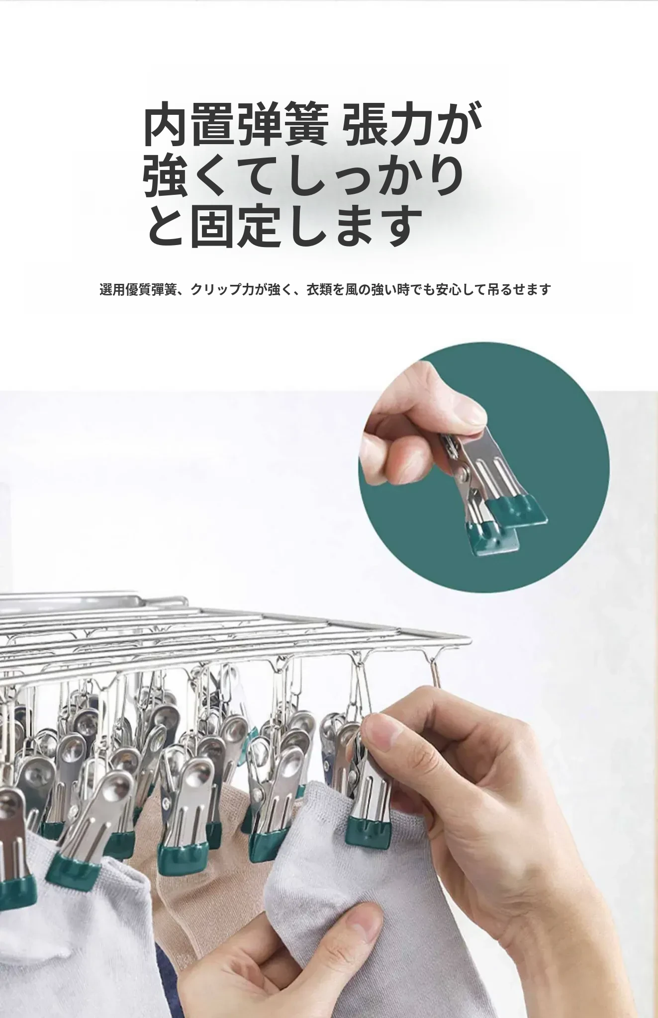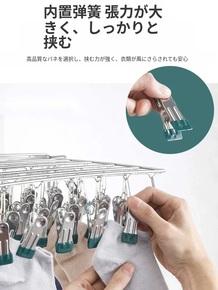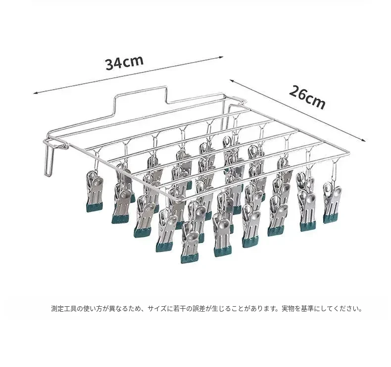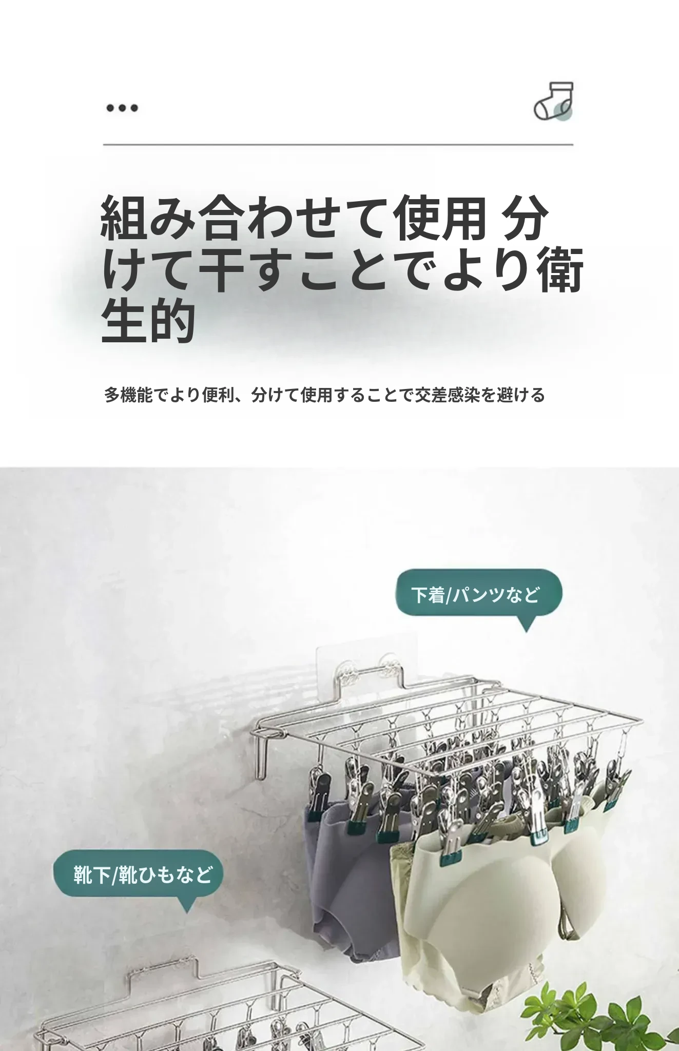 折りたたみ式衣類干しラック - 多機能クリップ付き!壁掛けで便利な靴下干しの必需品!家用バルコニーでの風対策もバッチリ。下着や赤ちゃんの靴下も安心して干せます!