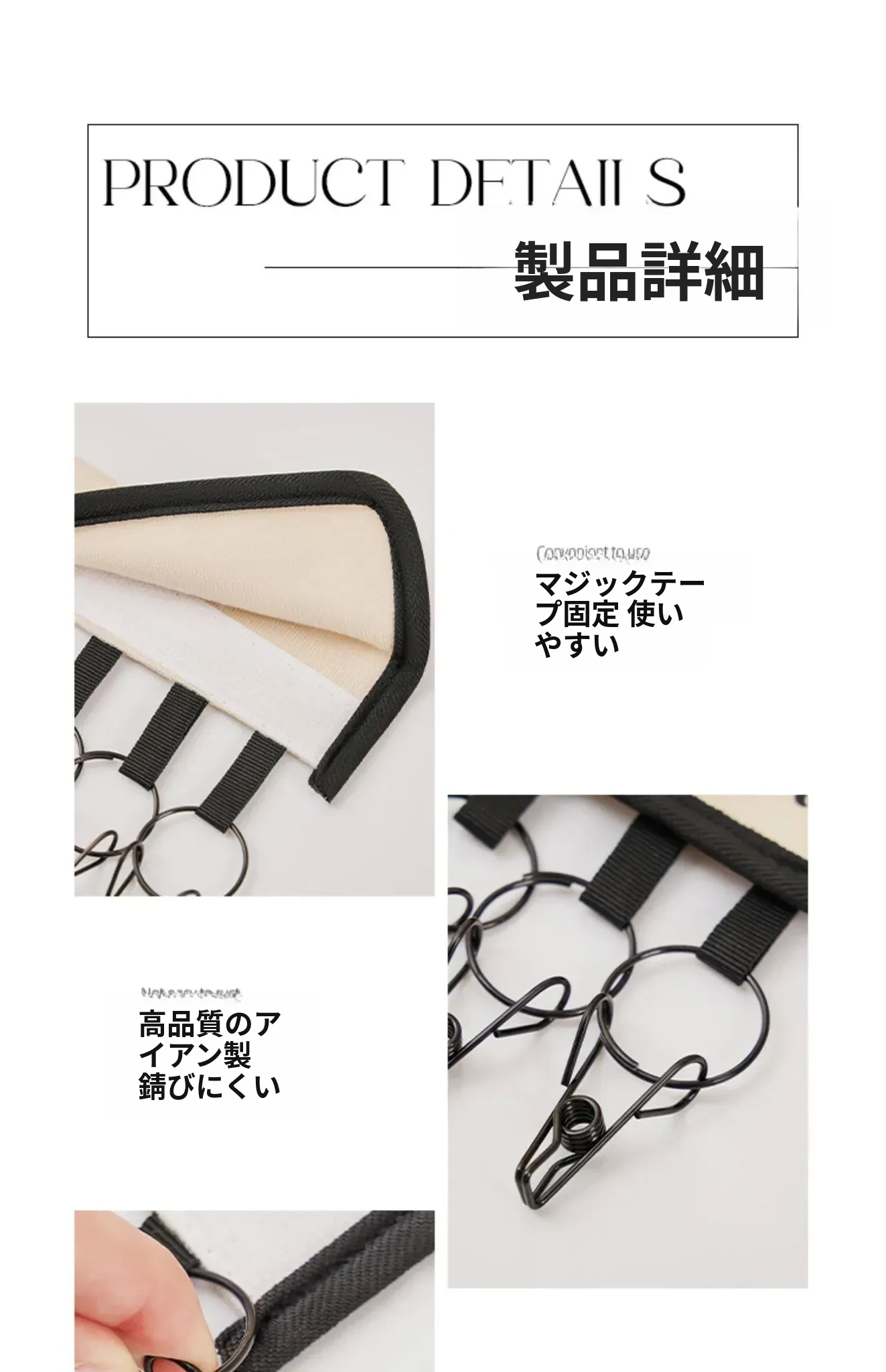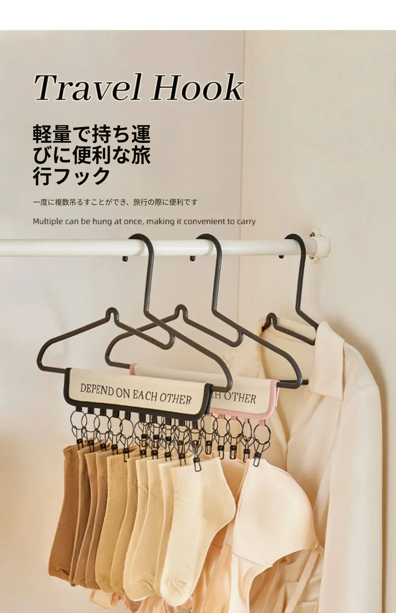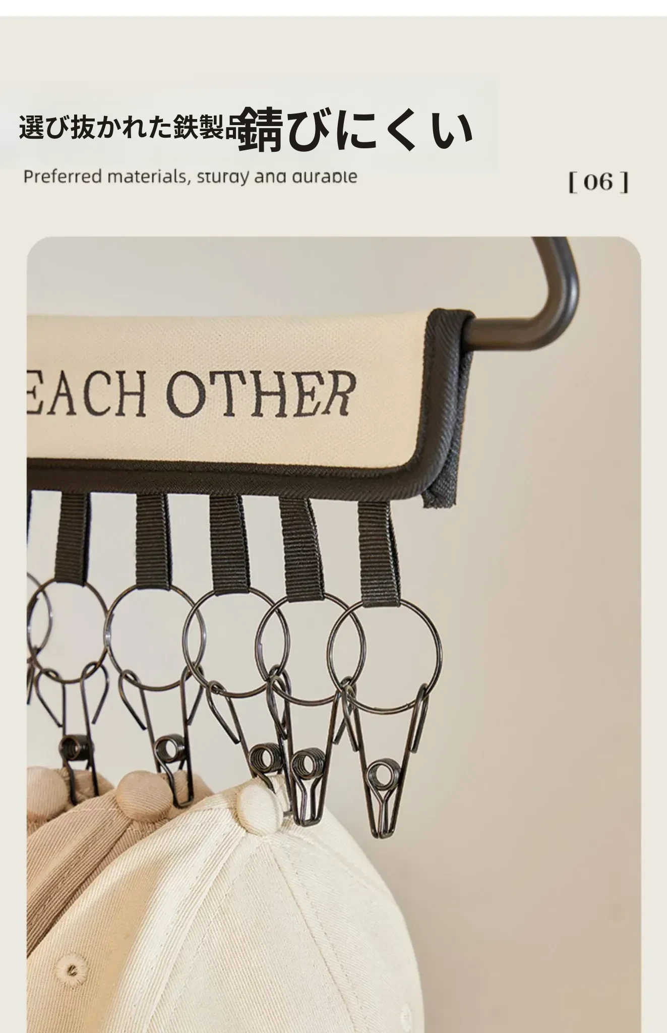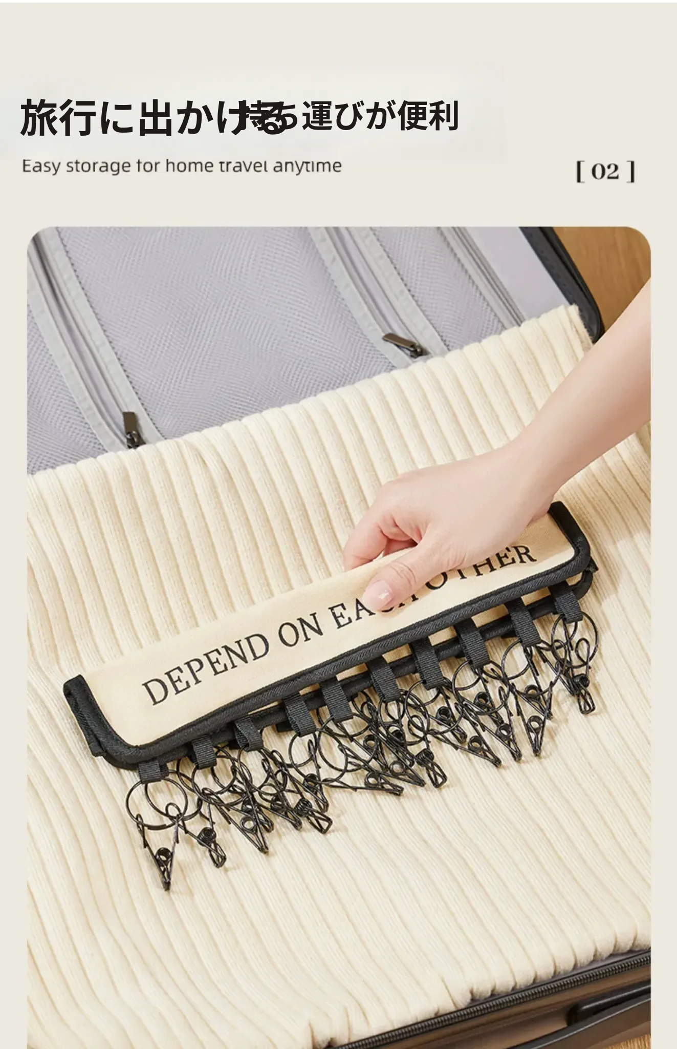 帽子収納に最適!一列式フックとマジックテープ付きの衣類収納フック。家庭用に便利で、多くのクリップを備えた旅行用布製ハンガー。折りたたみ可能で、スペースを節約!