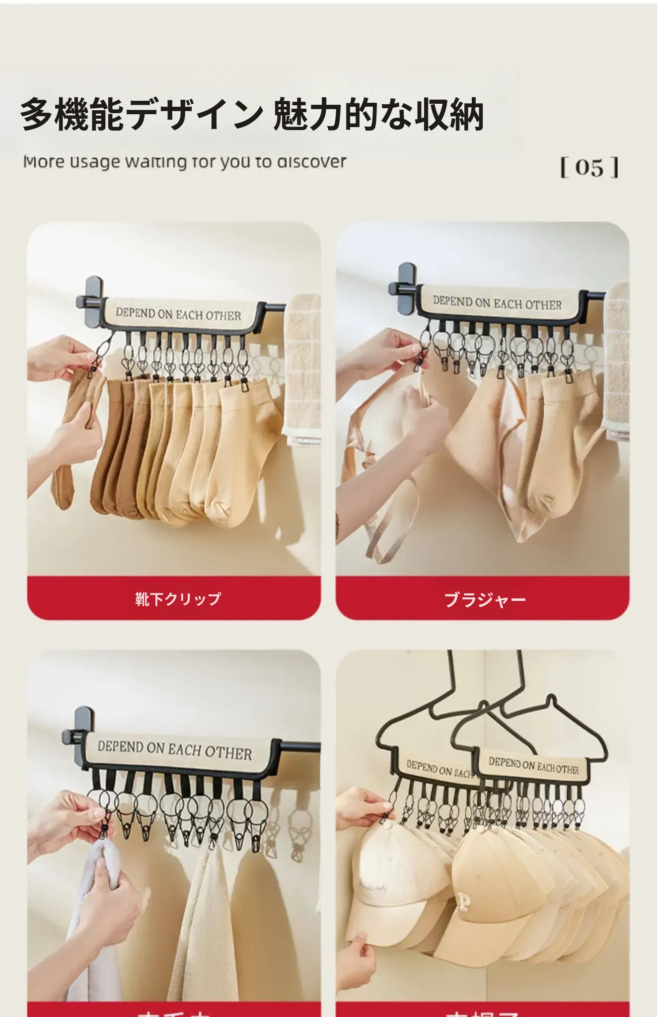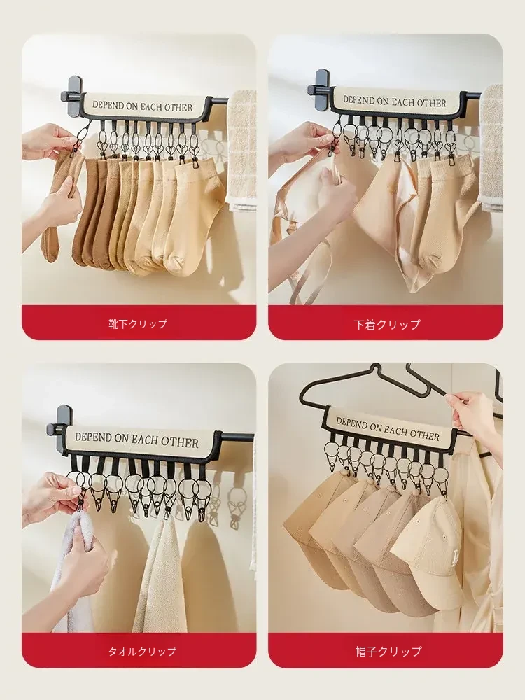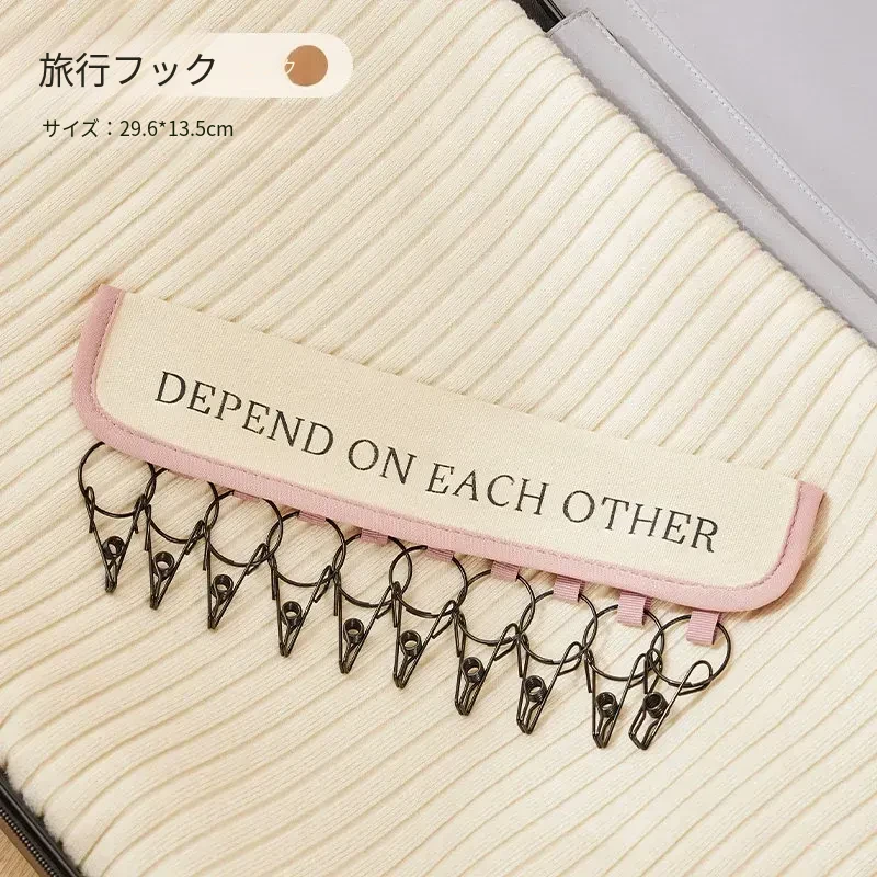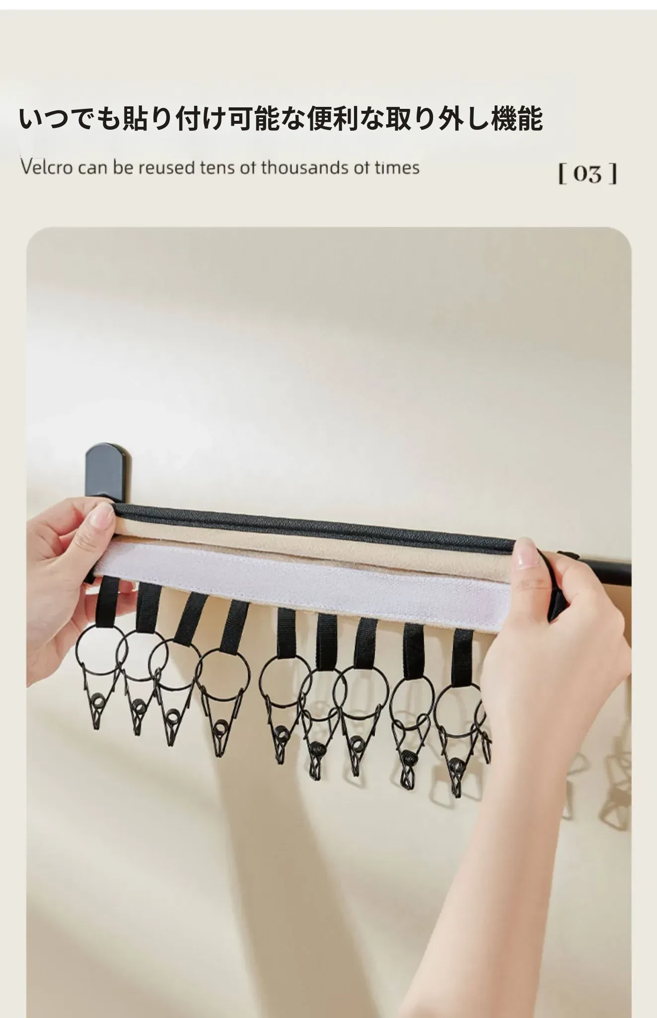 帽子収納に最適!一列式フックとマジックテープ付きの衣類収納フック。家庭用に便利で、多くのクリップを備えた旅行用布製ハンガー。折りたたみ可能で、スペースを節約!