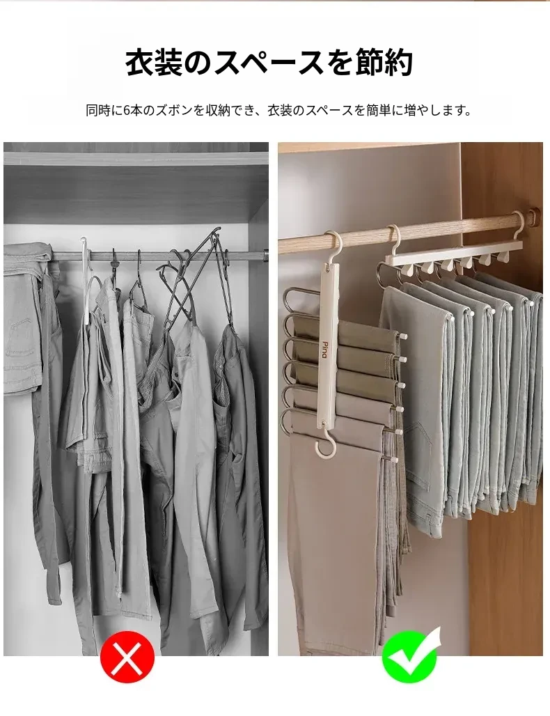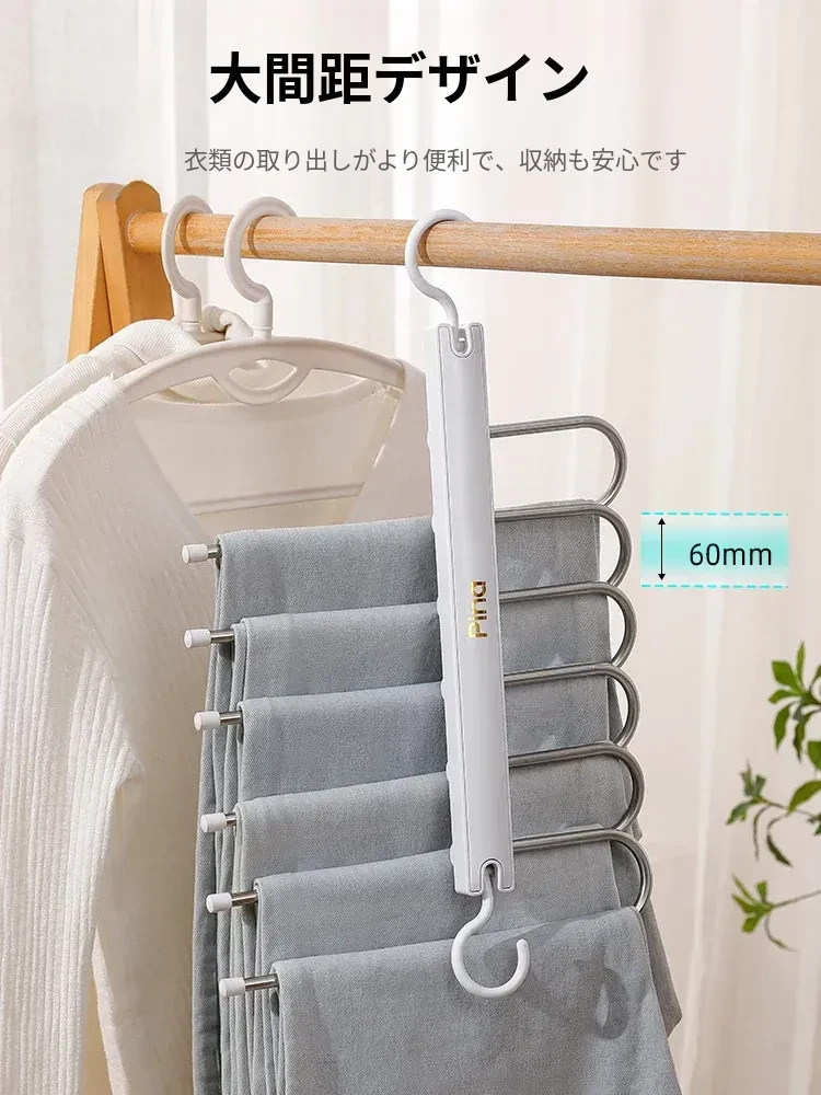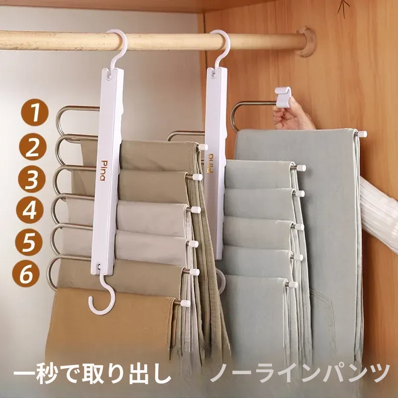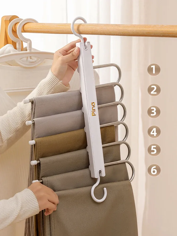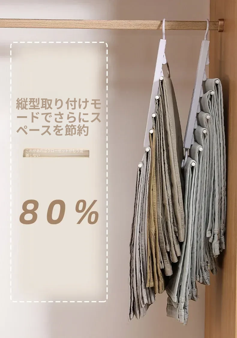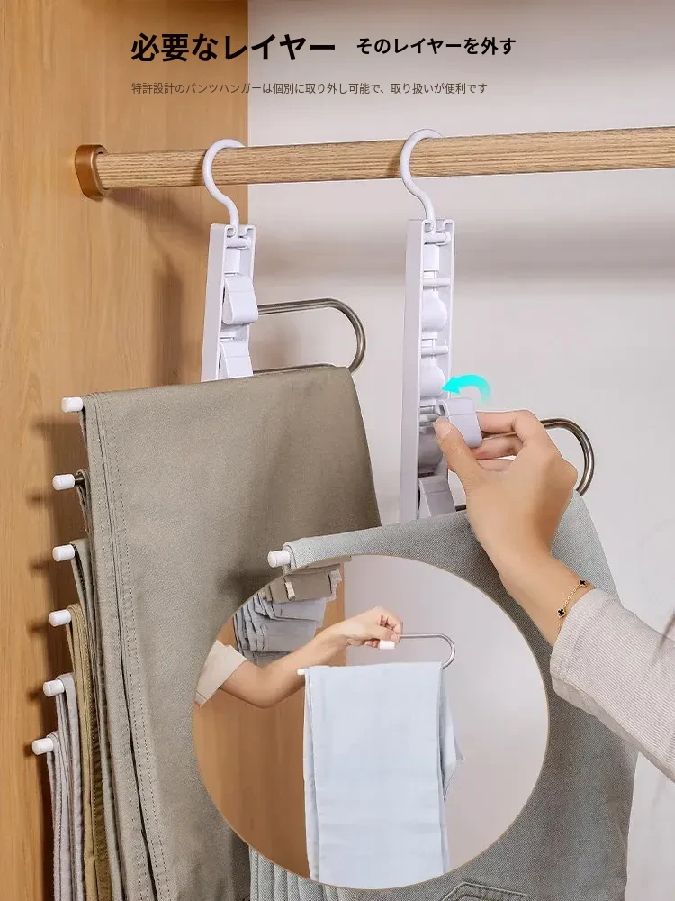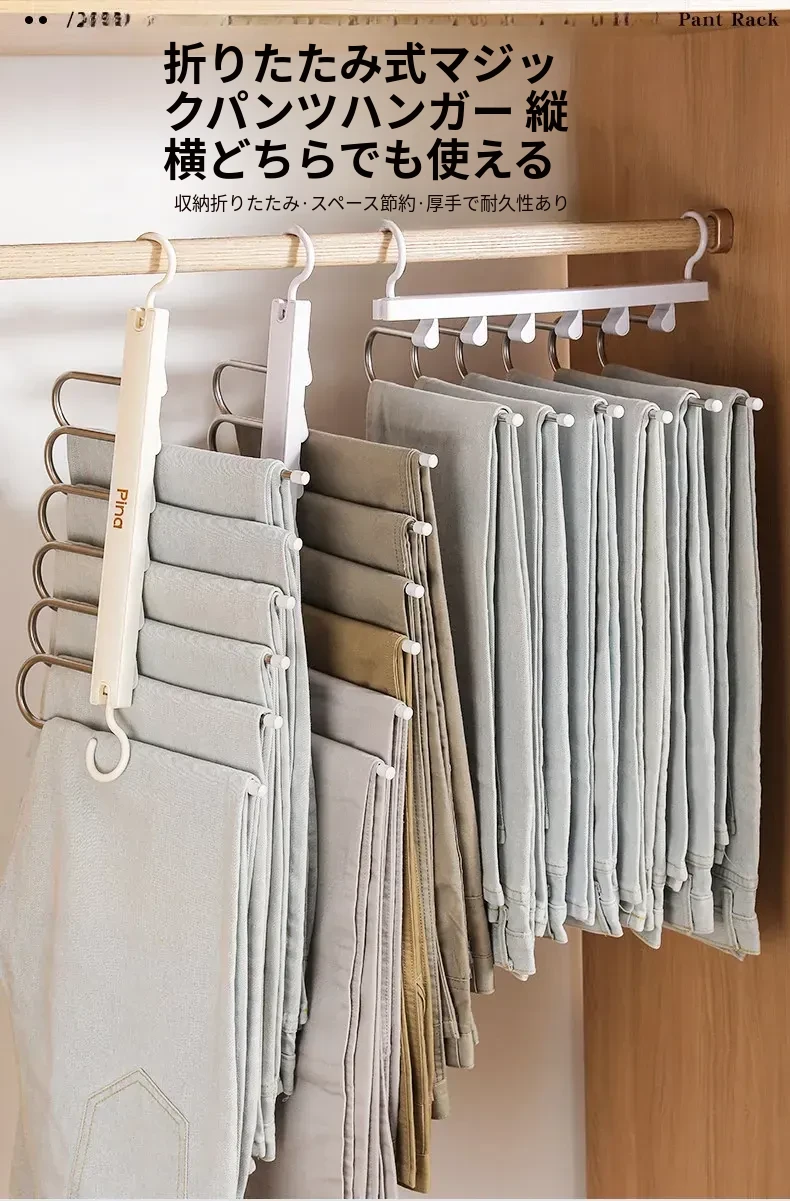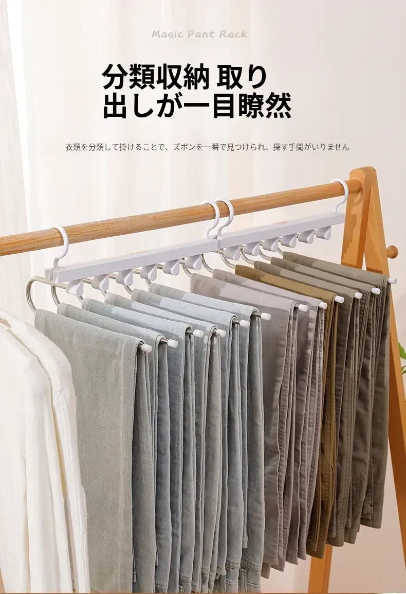 折りたたみ式多機能パンツハンガー - スペースを節約し、無痕で衣類を守る!家庭用の収納マジック、多層設計で整理整頓も簡単!パンツを美しく保つ理想のハンガーです。
