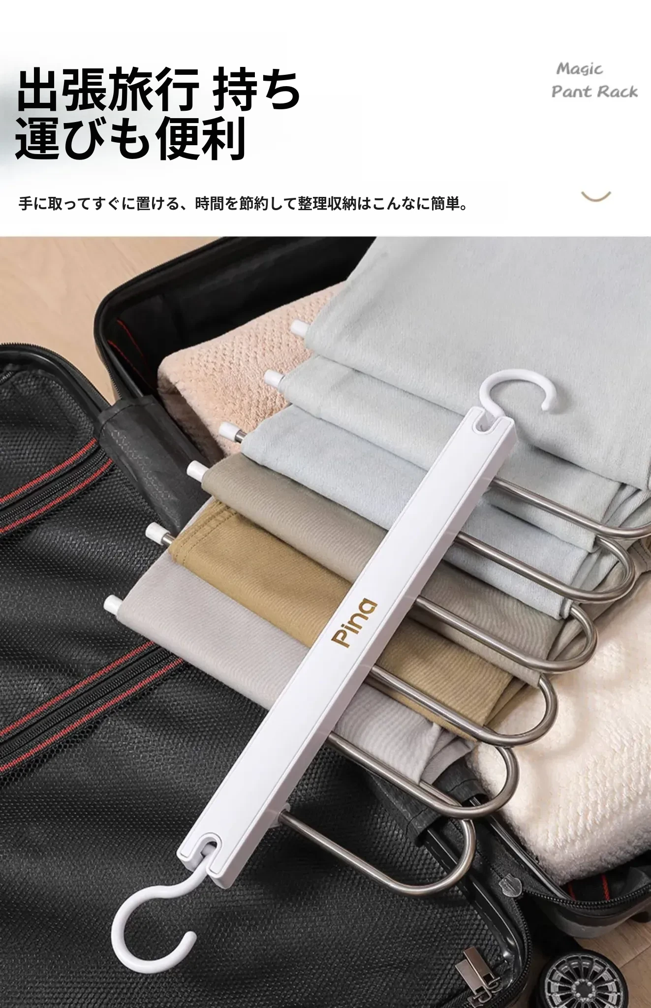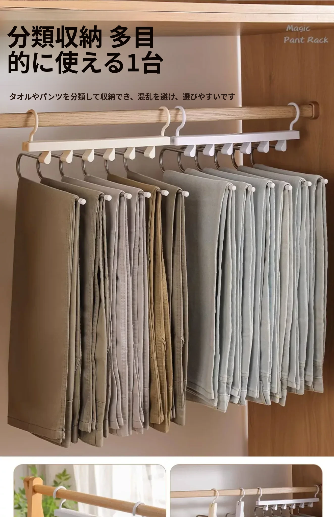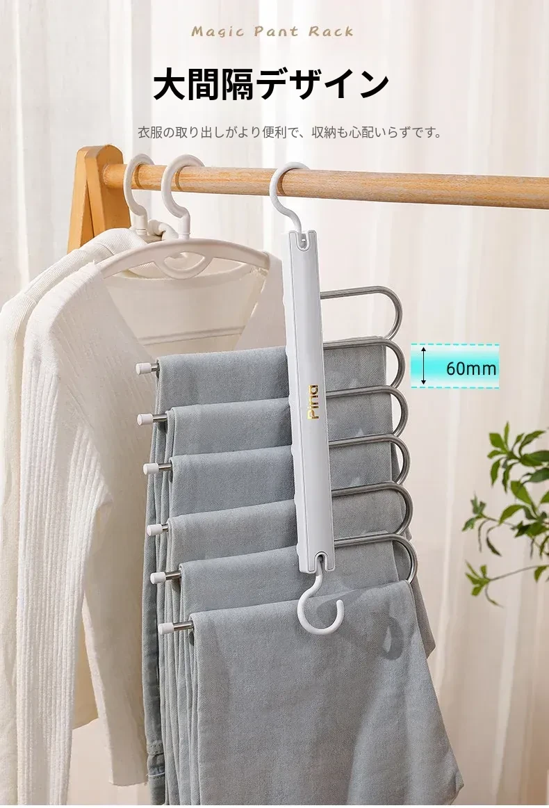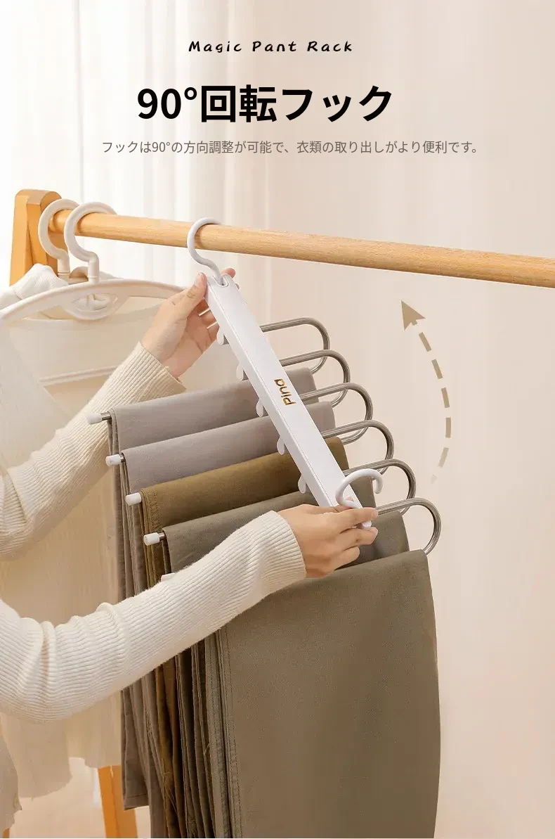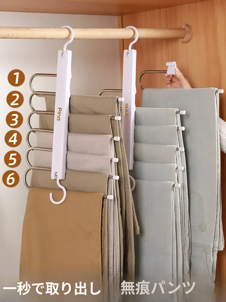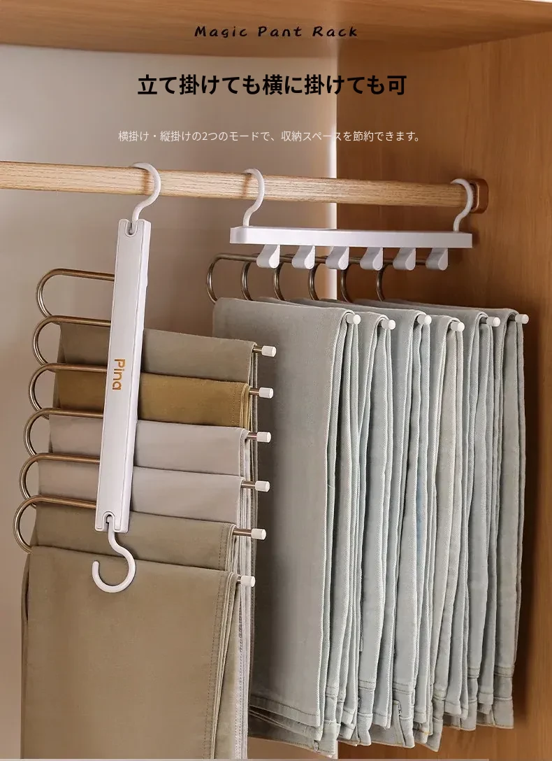 折りたたみ式多機能パンツハンガー - スペースを節約し、無痕で衣類を守る!家庭用の収納マジック、多層設計で整理整頓も簡単!パンツを美しく保つ理想のハンガーです。