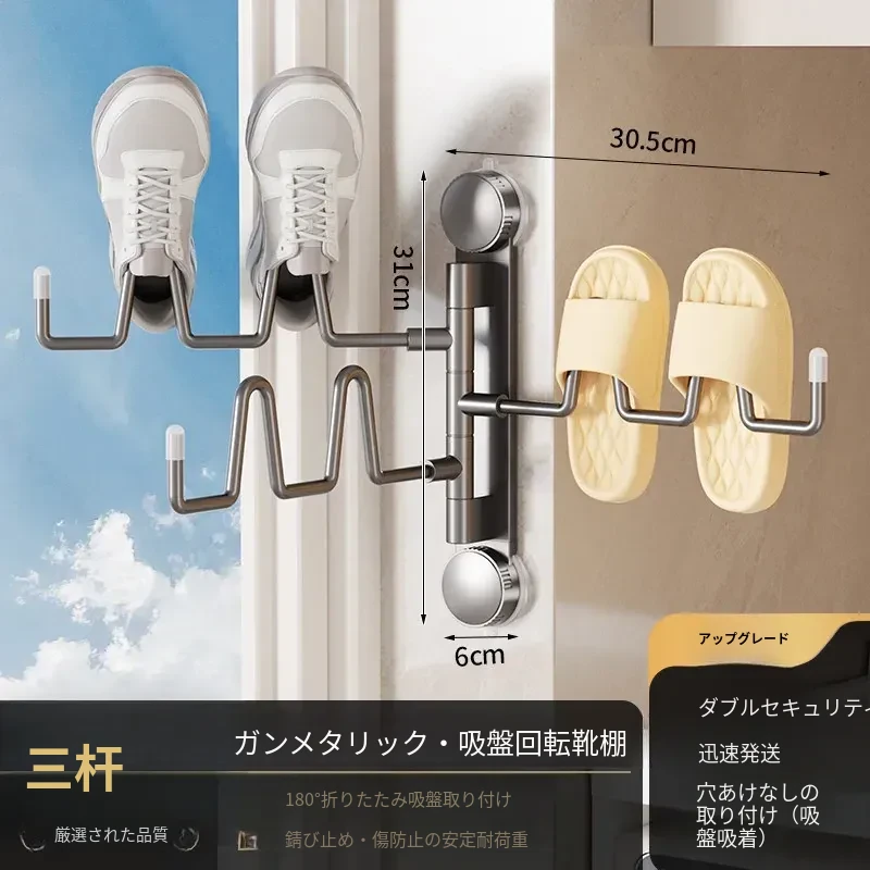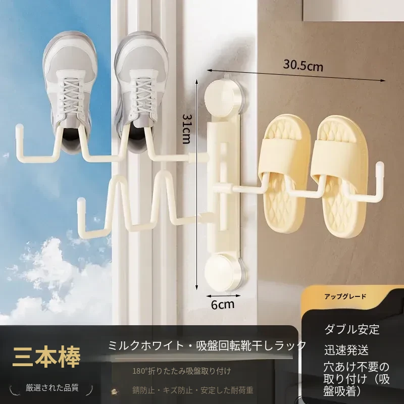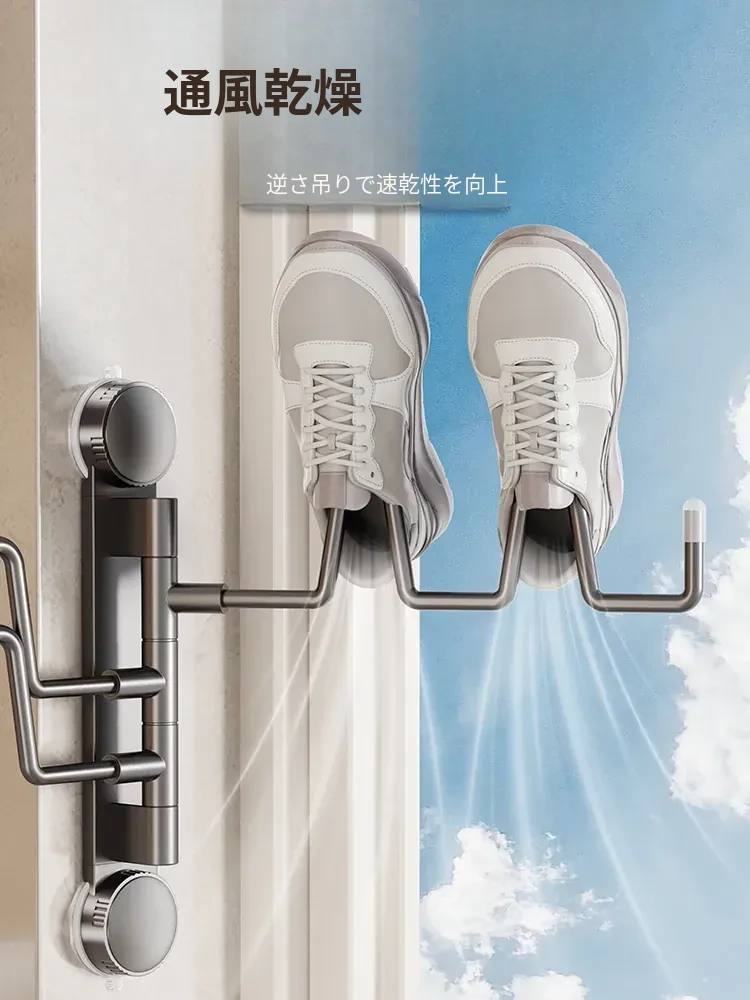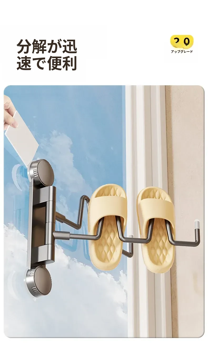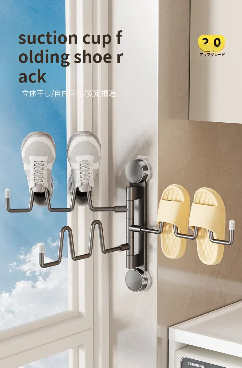 折りたたみ式吸盤付きシューラック - バルコニー専用のサンダル干しスタンド!靴をしっかり干せる壁掛けフック付きで、スペースを有効活用。靴を清潔に保つ必需品です!