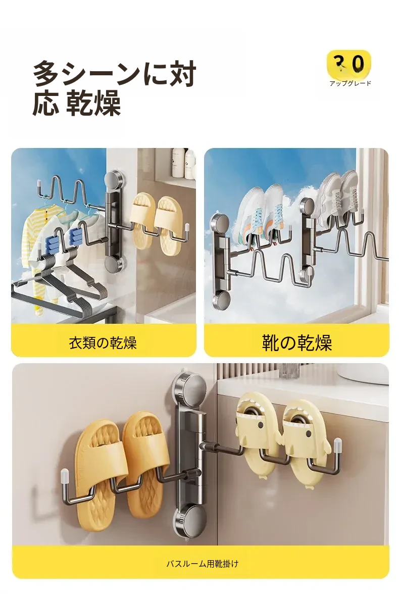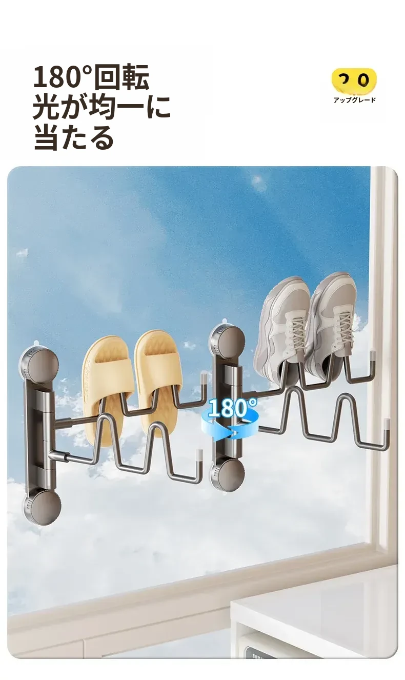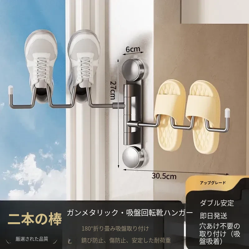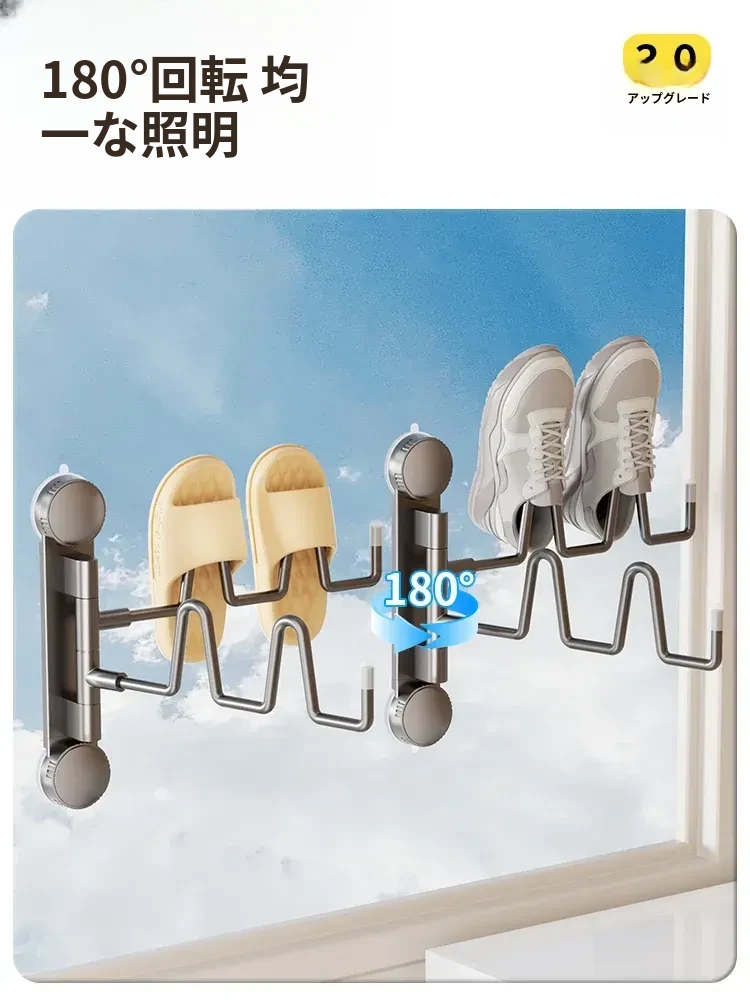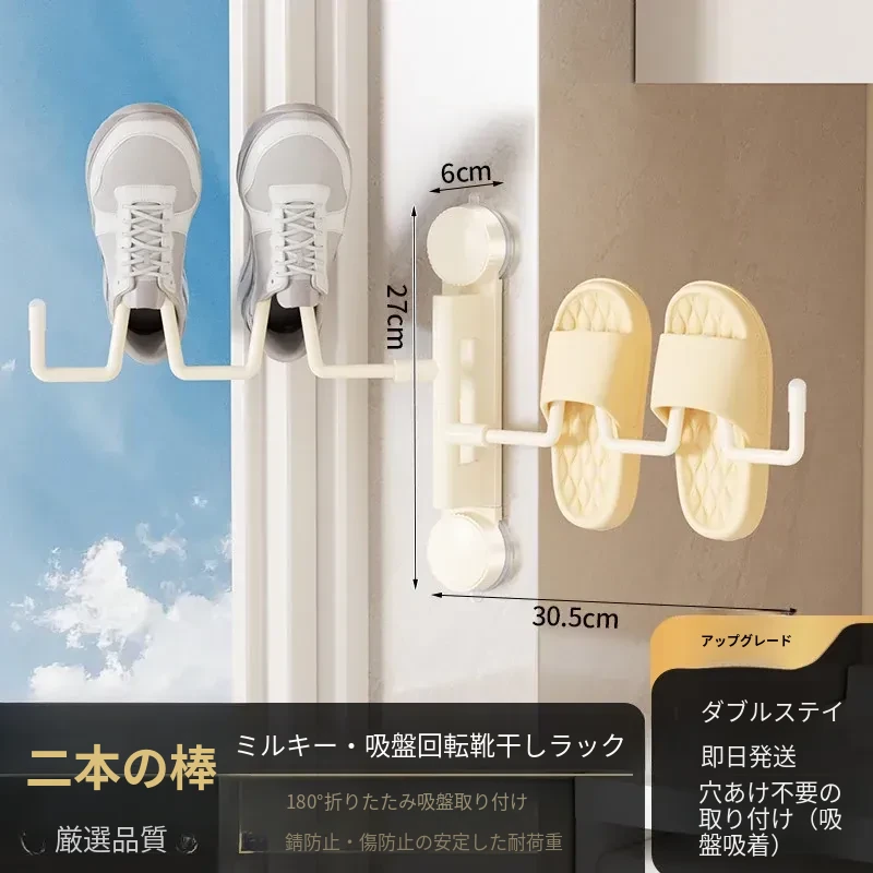 折りたたみ式吸盤付きシューラック - バルコニー専用のサンダル干しスタンド!靴をしっかり干せる壁掛けフック付きで、スペースを有効活用。靴を清潔に保つ必需品です!