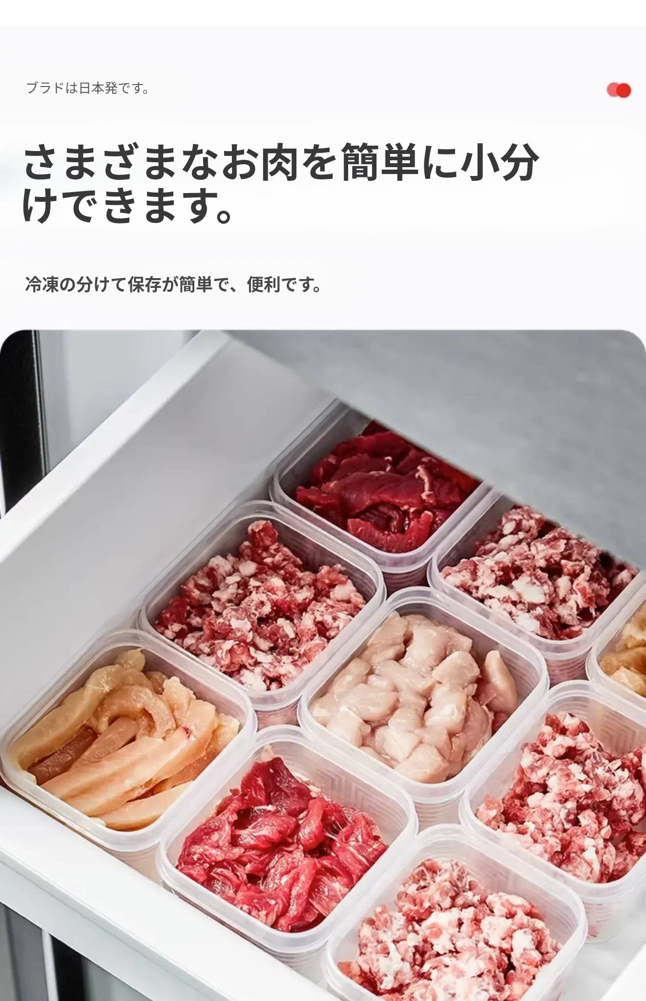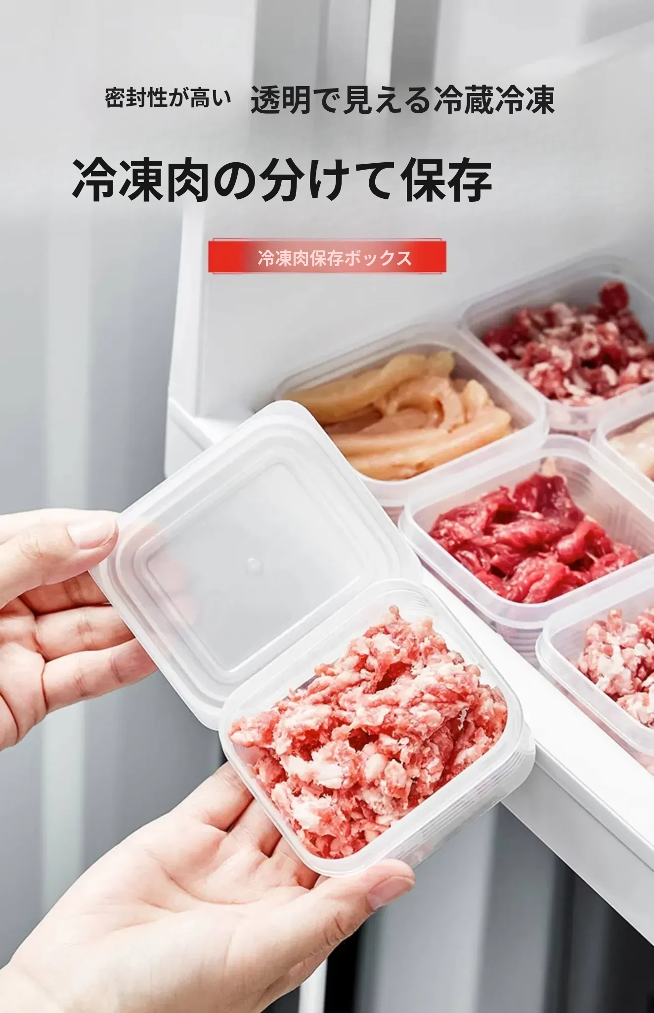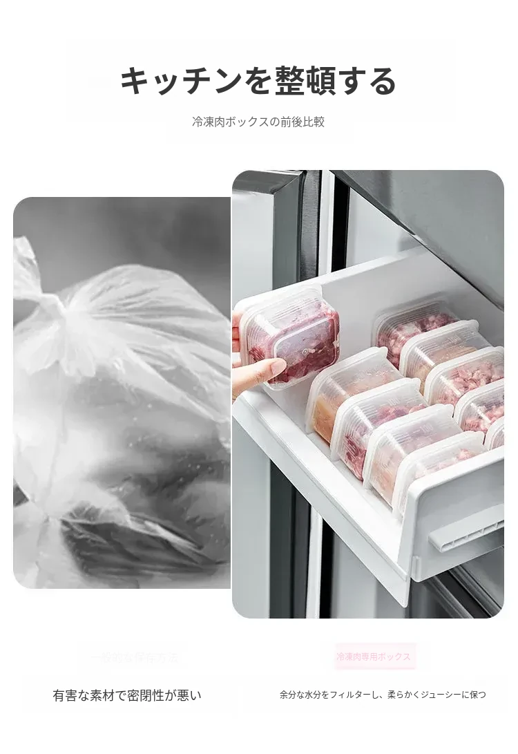 冷凍庫専用!食材整理ボックス - 冷凍肉用仕切り付き、鮮度保持のための食品分装ボックス。スッキリ収納で、冷凍庫もおしゃれに!