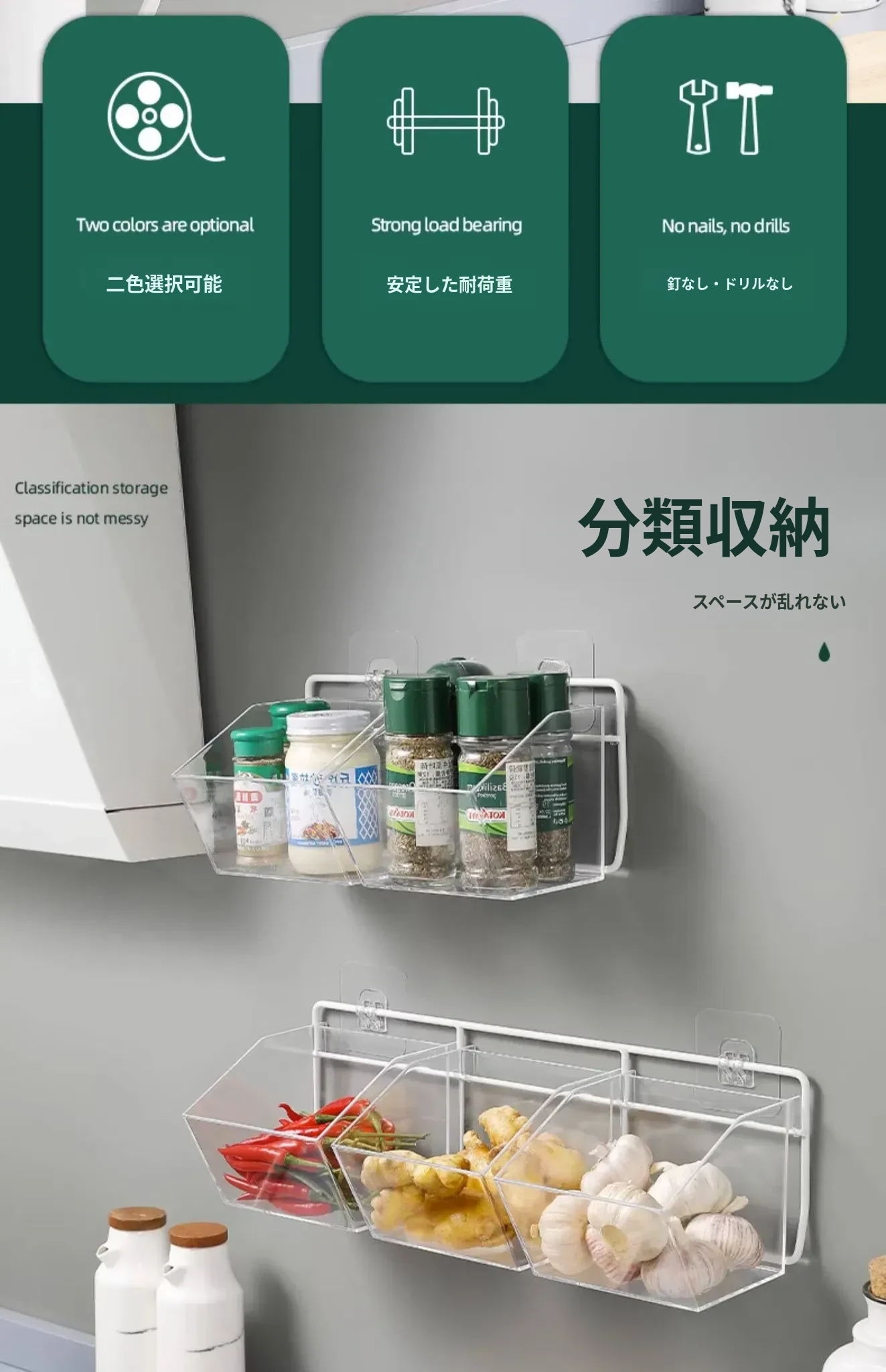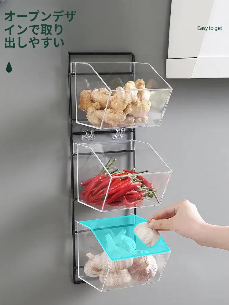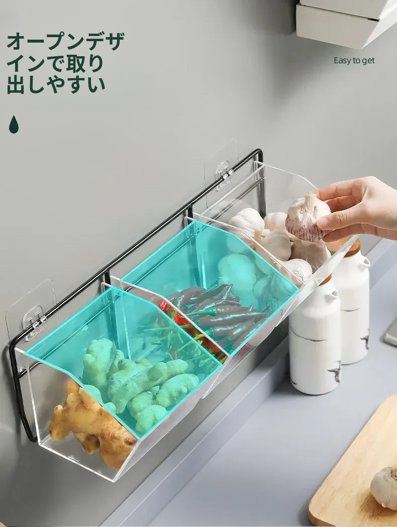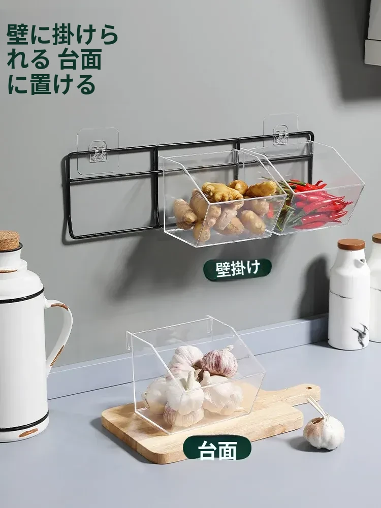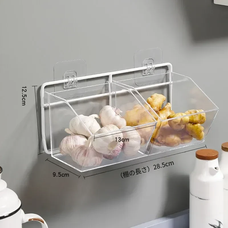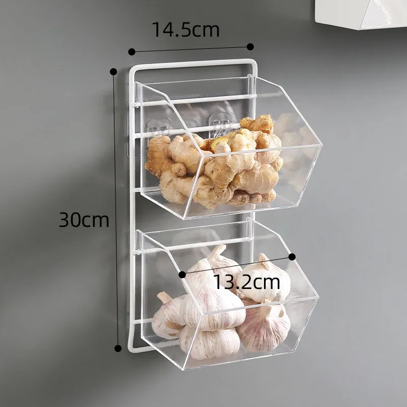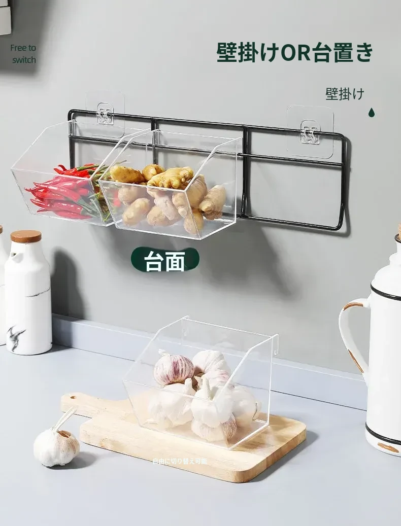 葱姜蒜収納バスケット - キッチンの壁に掛けられる便利な置物バスケットで、ニンニクや生姜をスッキリ整理!調理の必需品をおしゃれに収納し、スペースを有効活用!