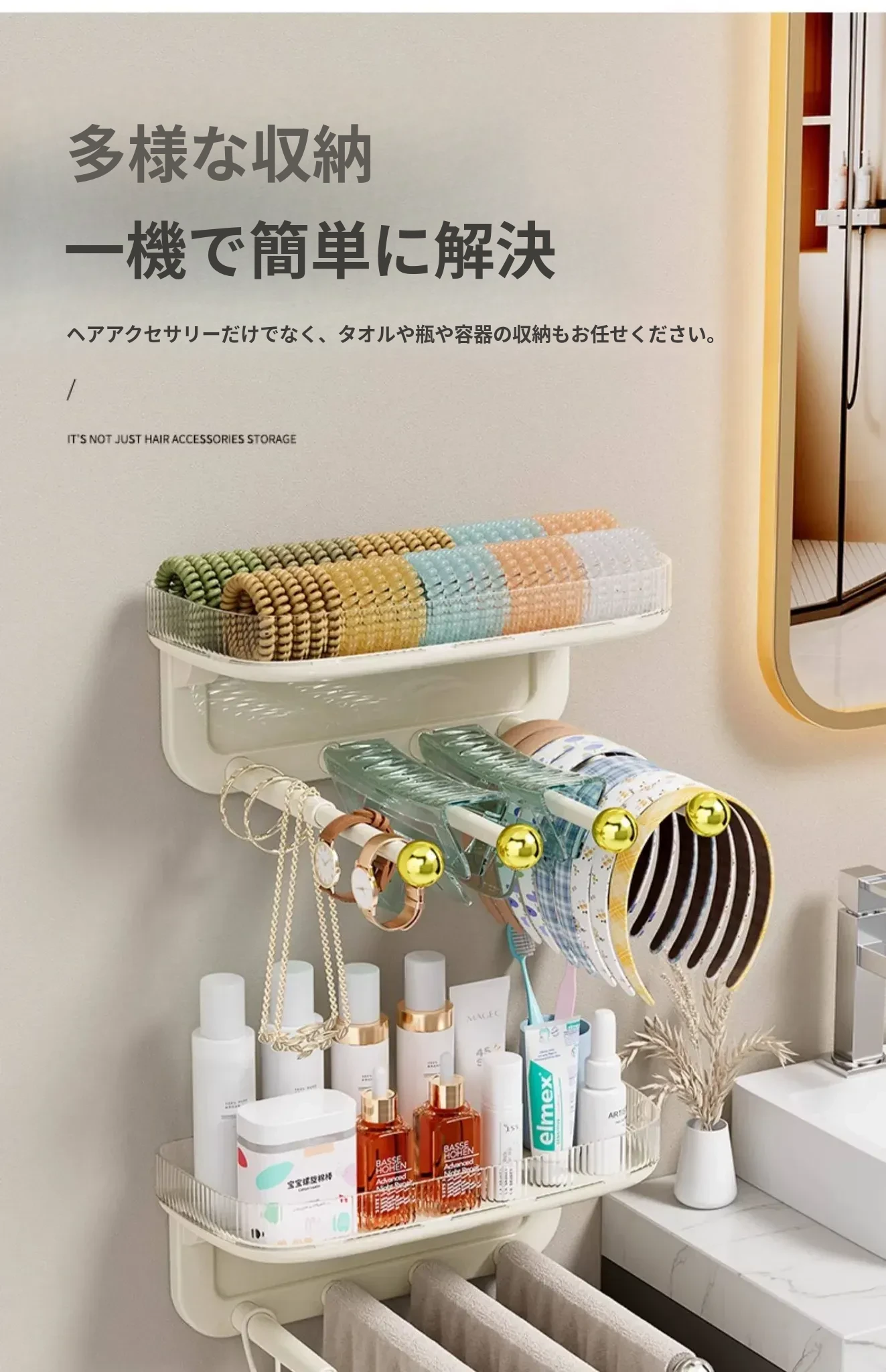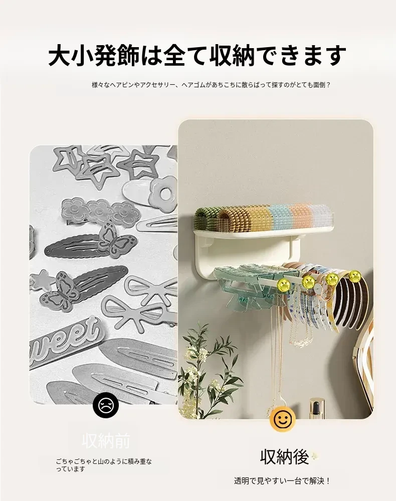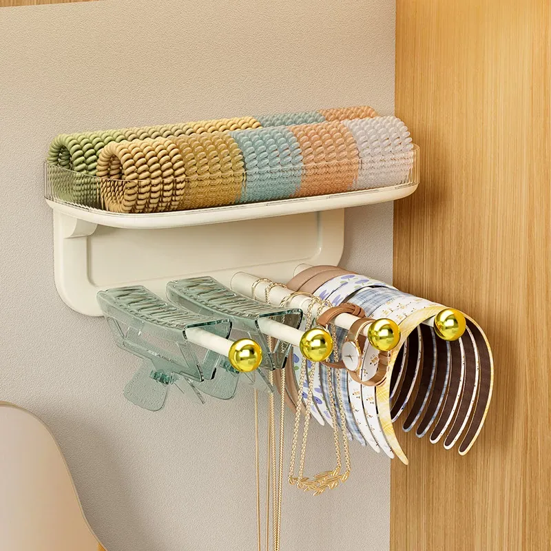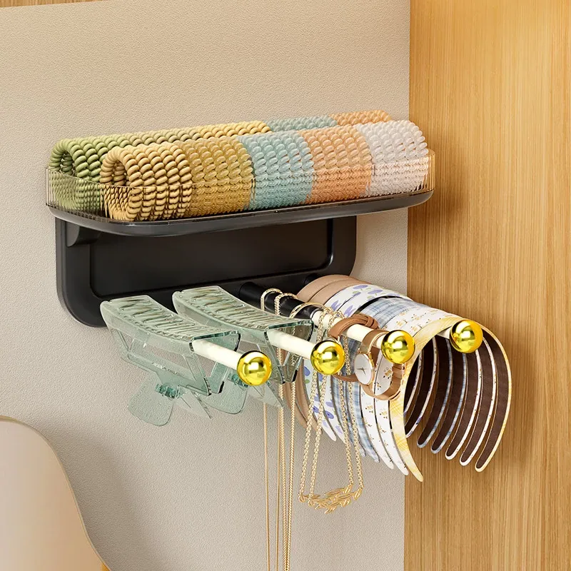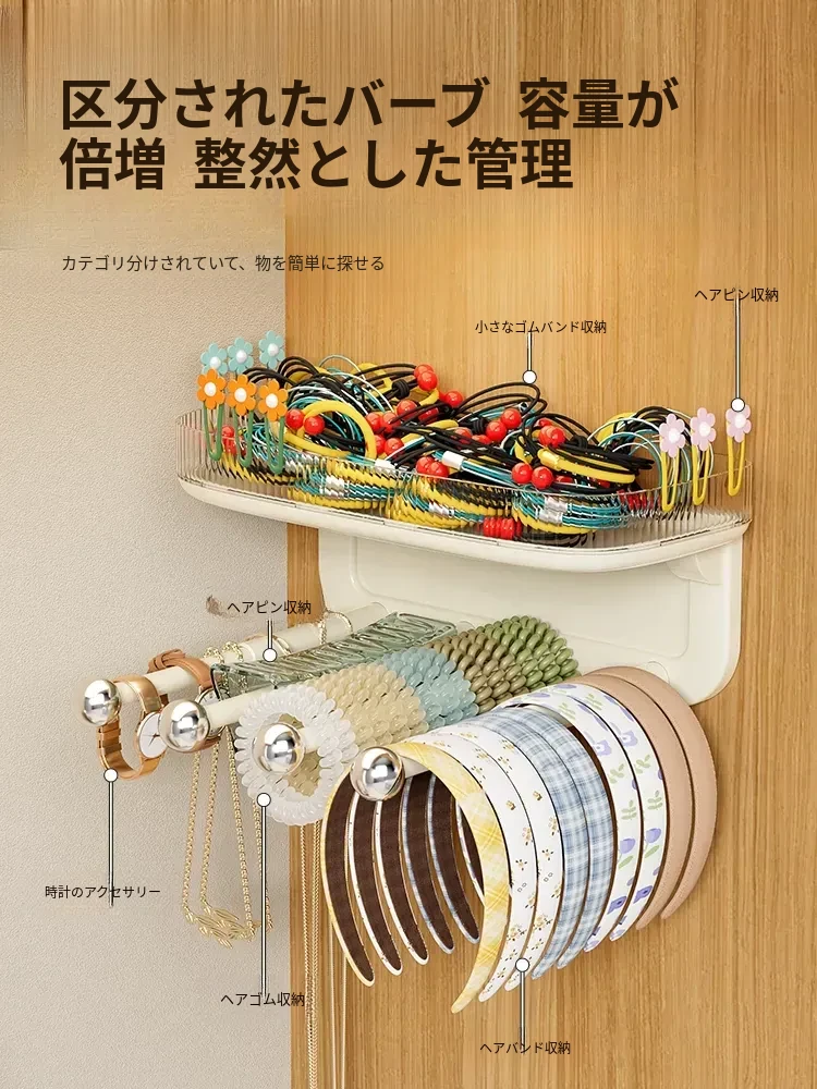 髪飾り収納の必需品!ヘアバンド、クリップ、ゴム、フックを整理整頓できる便利な壁掛けラック。バスルームやおしゃれな空間にぴったりのアクセサリー収納アイテム!